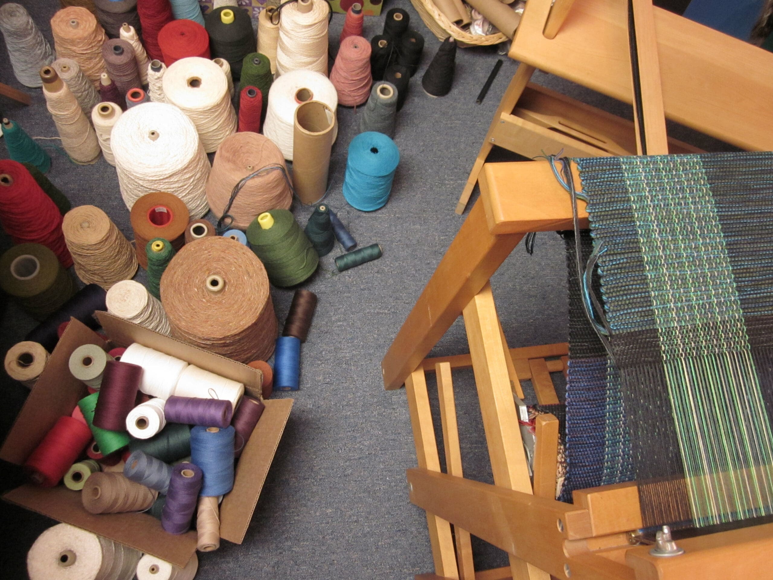 (Speaking of chaos – I’m including a bird’s eye view of the space around my loom mid-project! Just so you can appreciate the “artistic process”!)