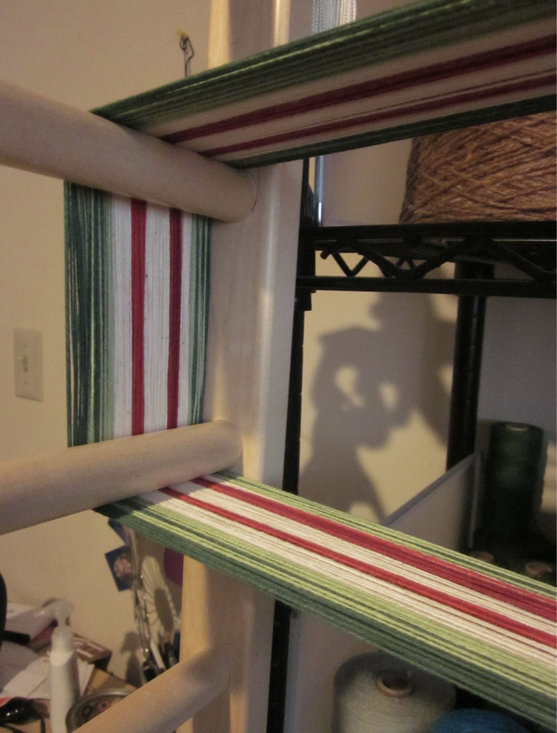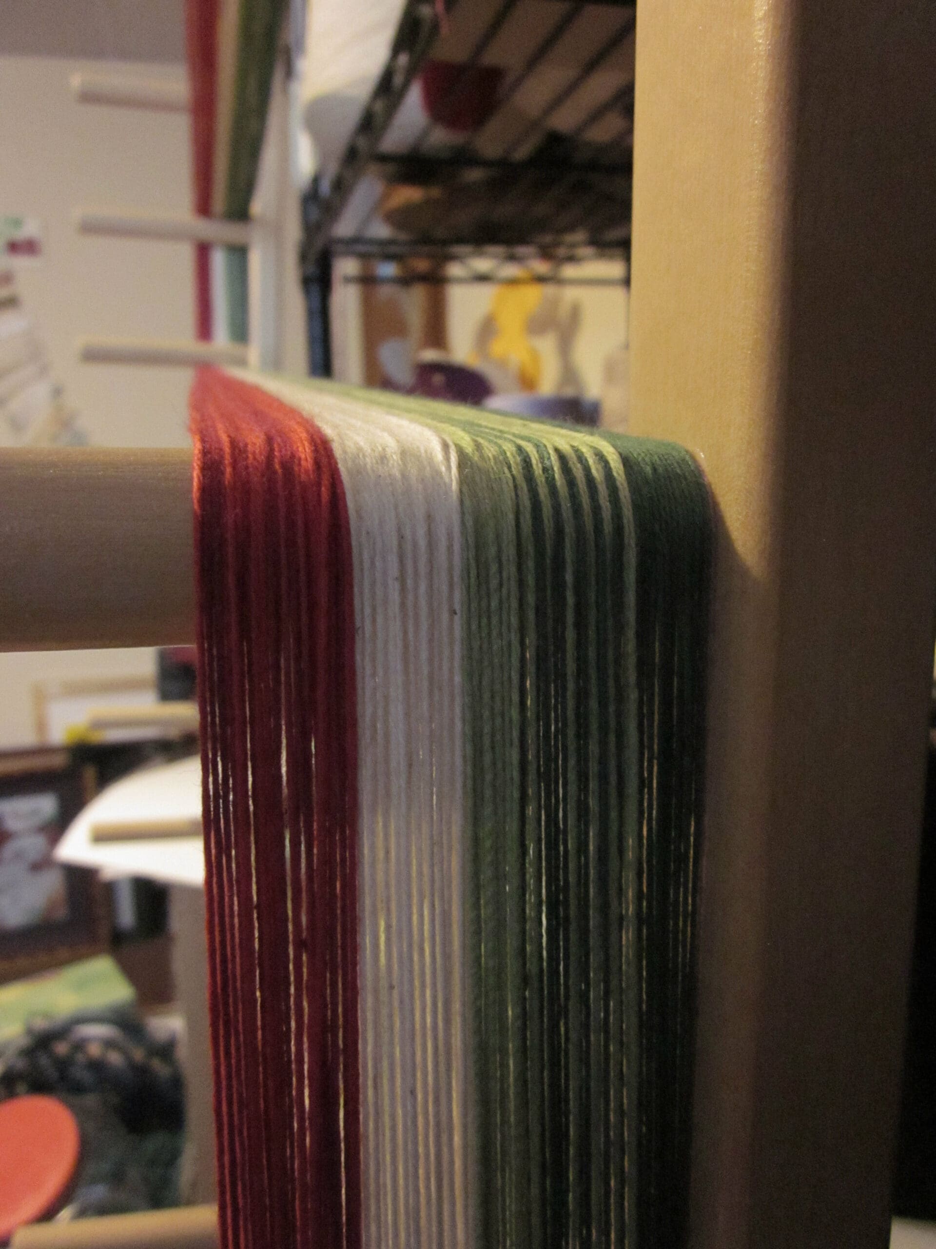 It’s time for something new – yay! Because weaving is a lengthy process, there is always a party at the beginning of a new project. While I haven’t been in the weaving business very long, I am blessed with some very loyal customers. One in particular has recently asked me to create a Christmas table runner for her. She and I worked together previously on an everyday runner for her dining room that was a great project for me! A lot of twill, twisted fringe, a pale green mixed in with other pastels – gorgeous!