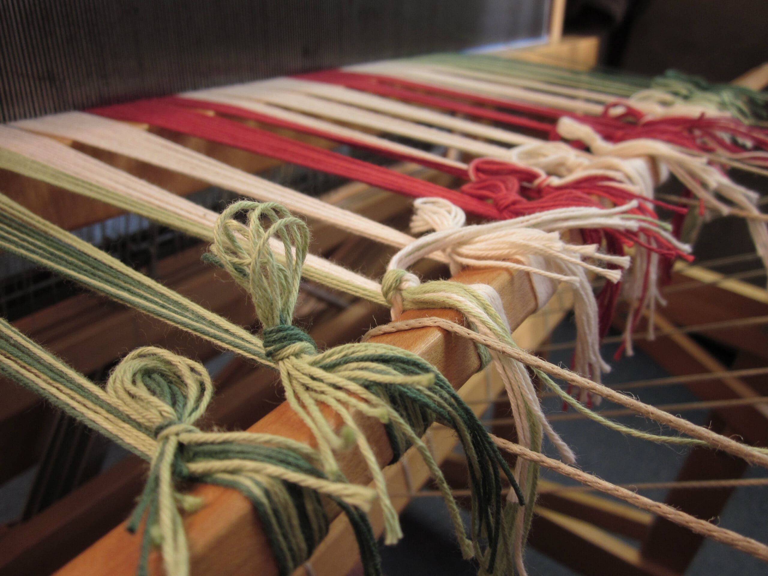 So, there’s a little dance that goes on – tug the yarn at the front, then shift to the side to contort your body such that the brake is released and the back beam moves a turn. And what I learned early on, is that when you tug on the yarn, you want to protect your hands! If you don’t, blisters settle in fast!