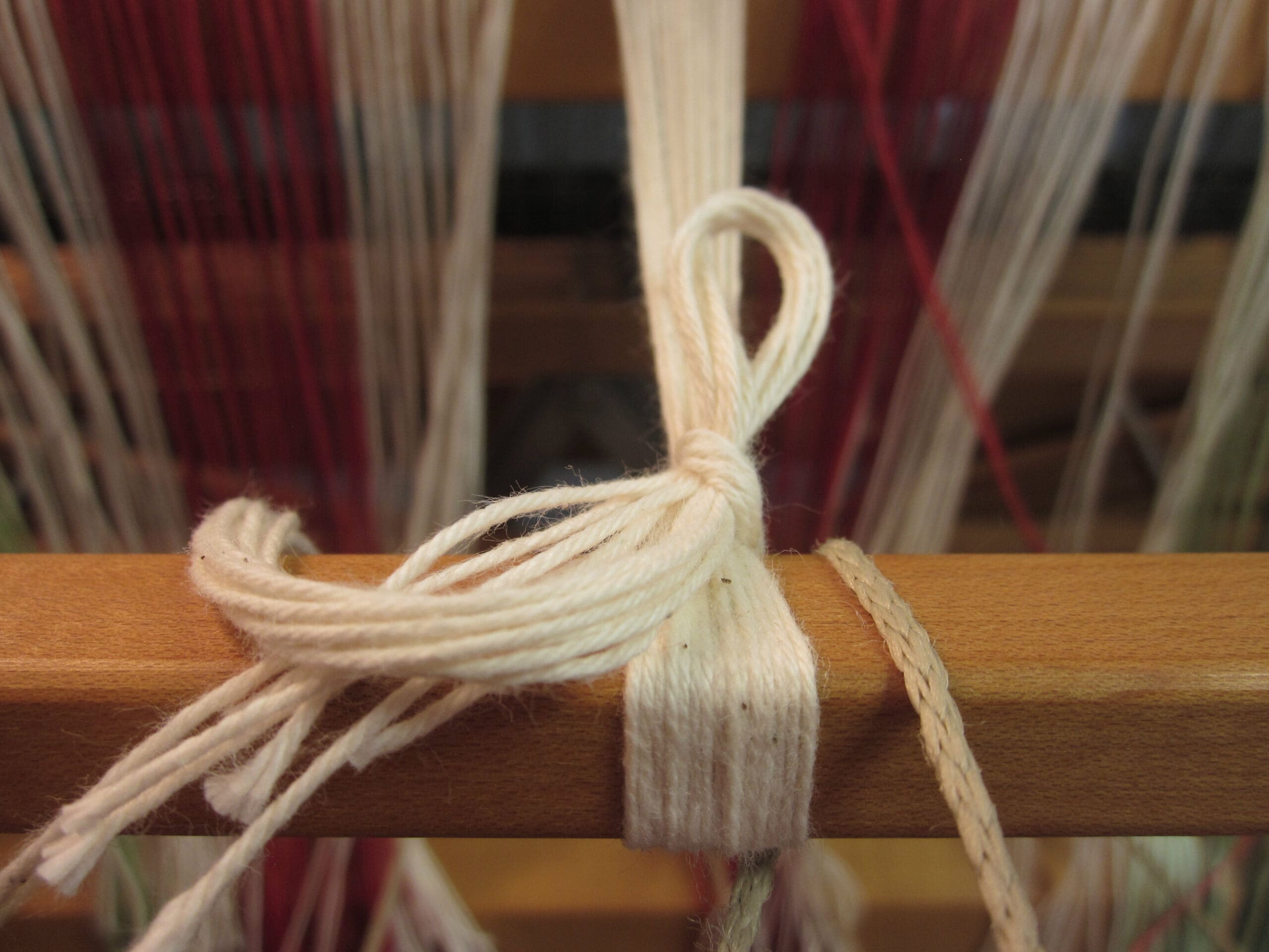 The knots are next! When I learned to weave, I was taught a fancy knot for this step that I use most of the time, provided I leave myself enough yarn!