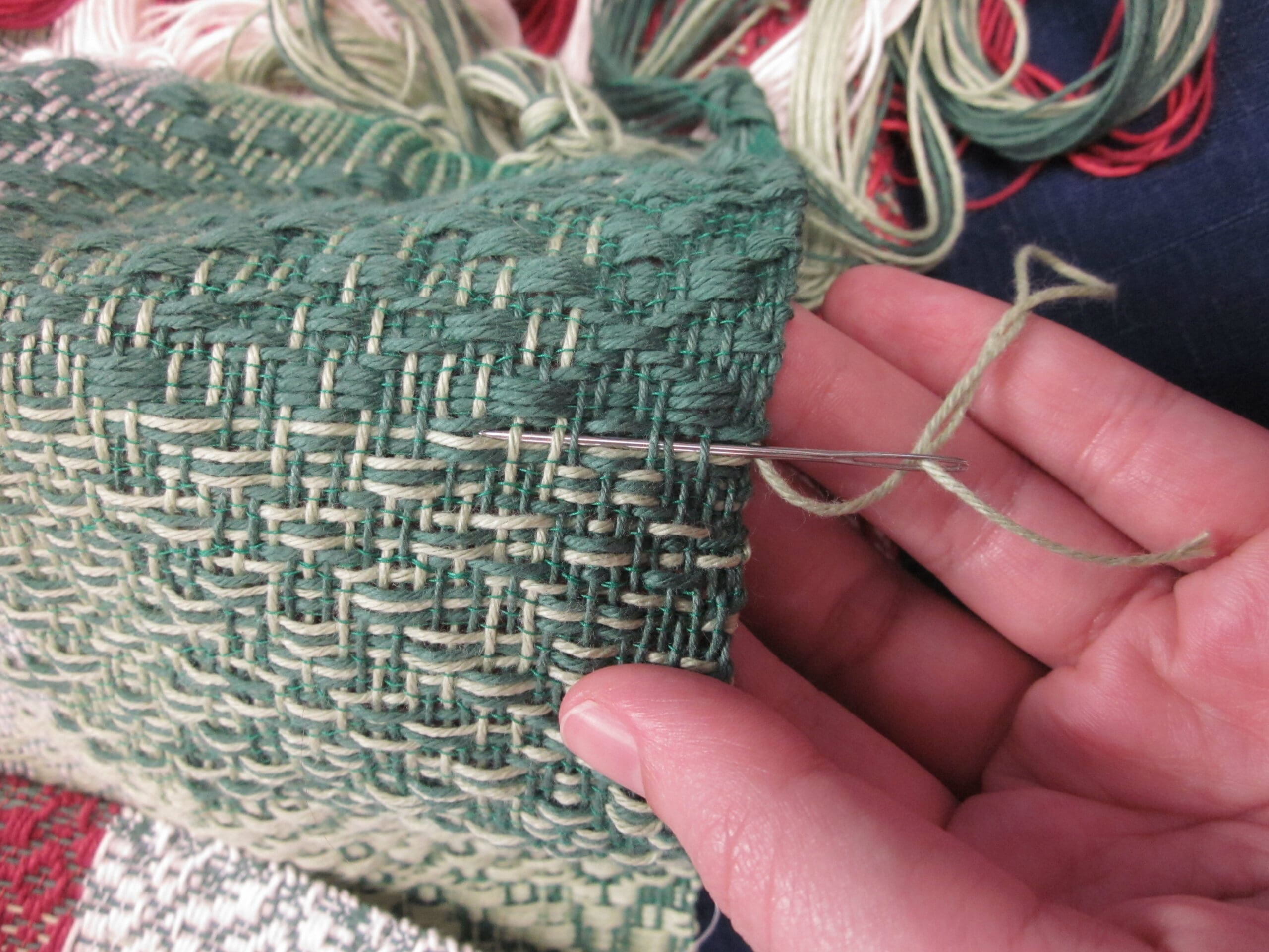 Before it can be washed I have to do something with all the ends of the yarn – on the sides of the project and at the front and back. Every place I changed colors, I then need to hand weave back into the project.