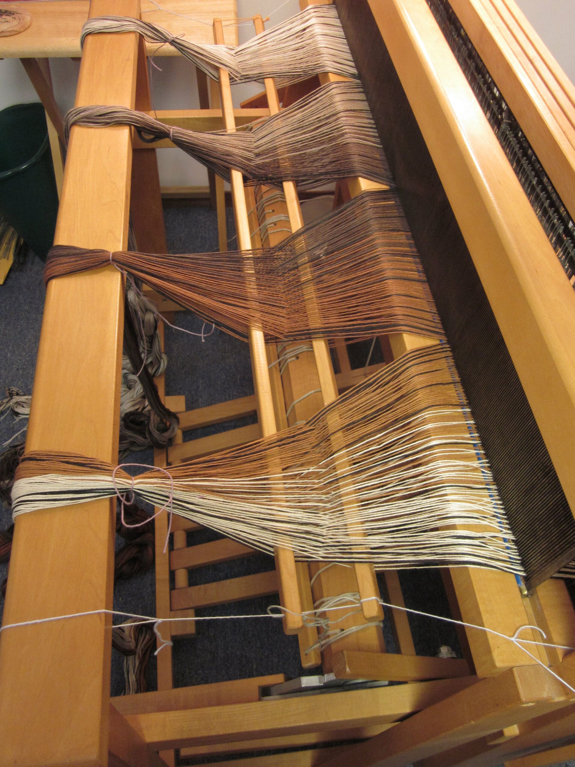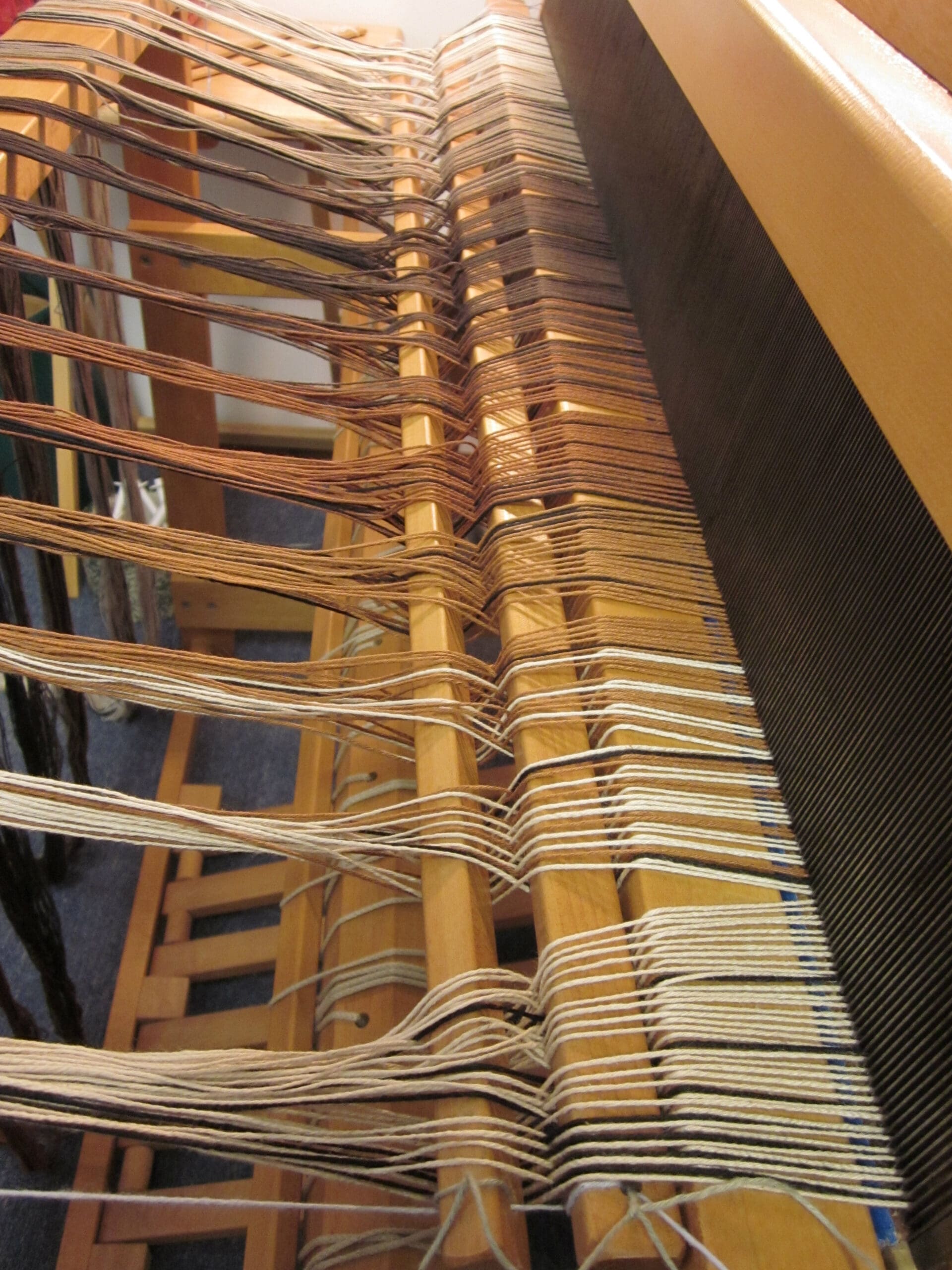 I don’t know if you remember way back when I was sleying the reed, but it was there that I started bunching the yarns into groups of 12. (Each inch is made up of 12 yarns, so the math is lovely!) I typically group the yarns the same throughout the entire process. It tends to keep me honest and prevents me from making crap up! And when you are setting up a loom (or dressing, as it’s called), it’s smart to pay attention as much as you can!
