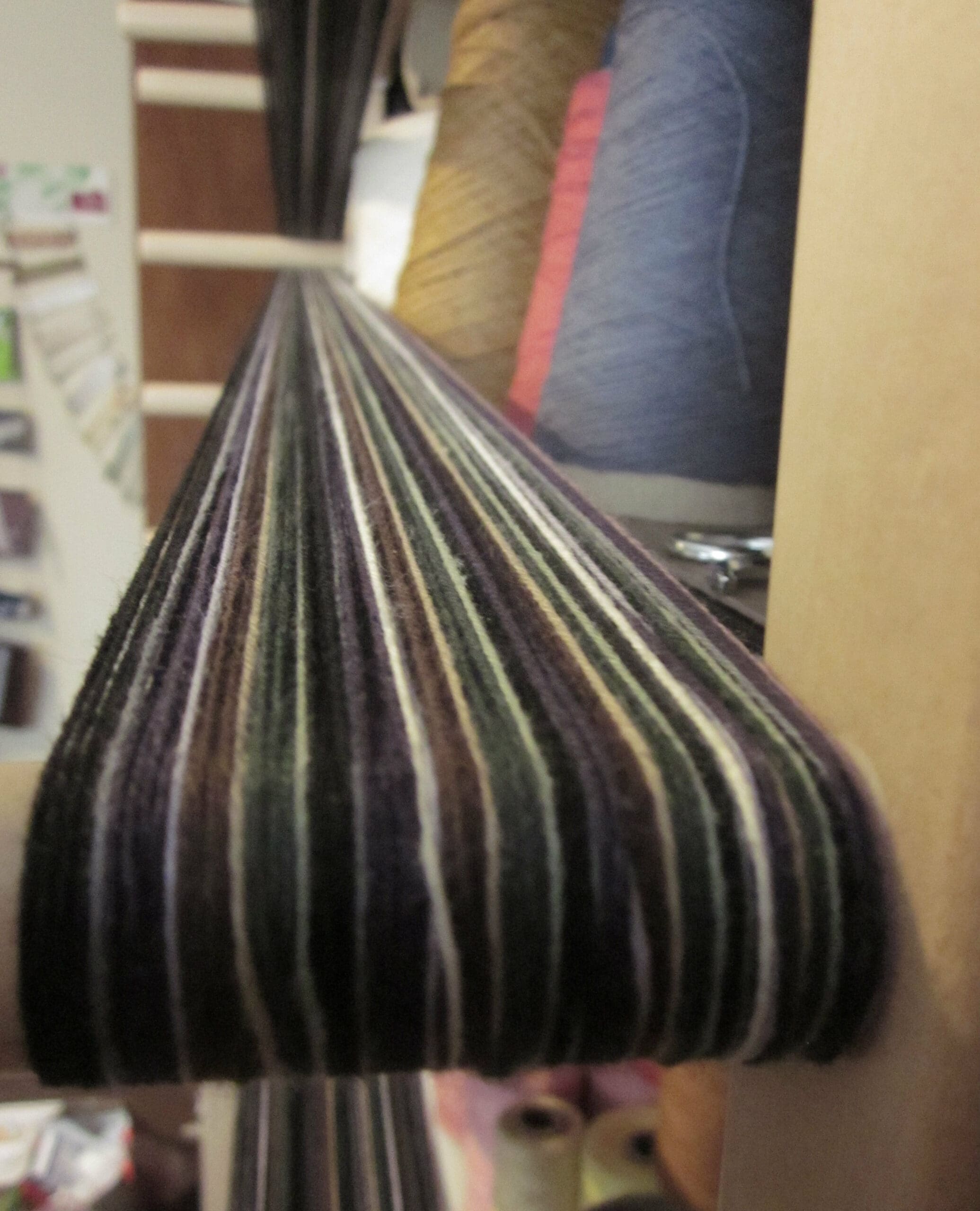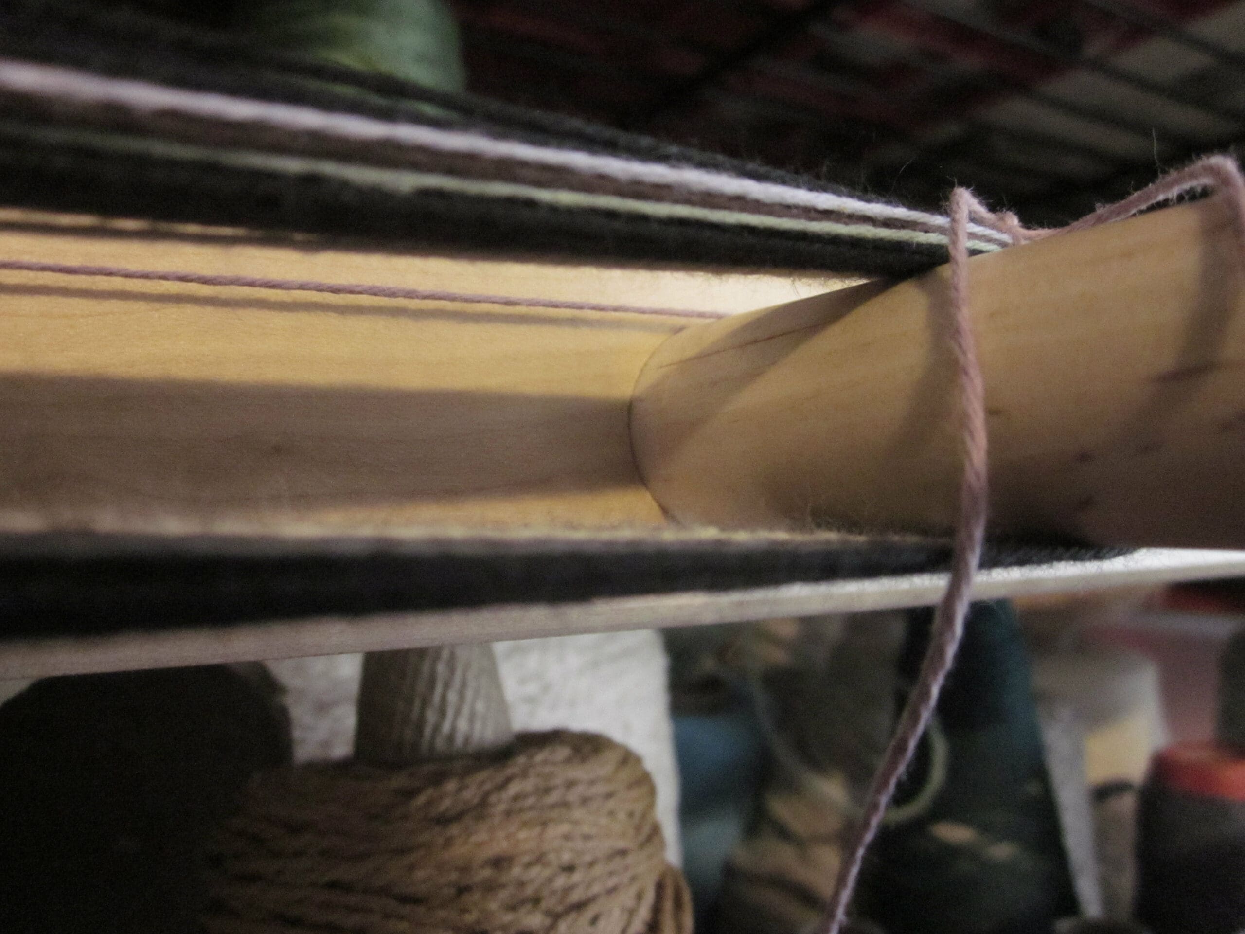 The yarn goes on the warping board in the order it will go into the loom. So, once you get everything wound on correctly here, you simply need to keep it in order from here on out!