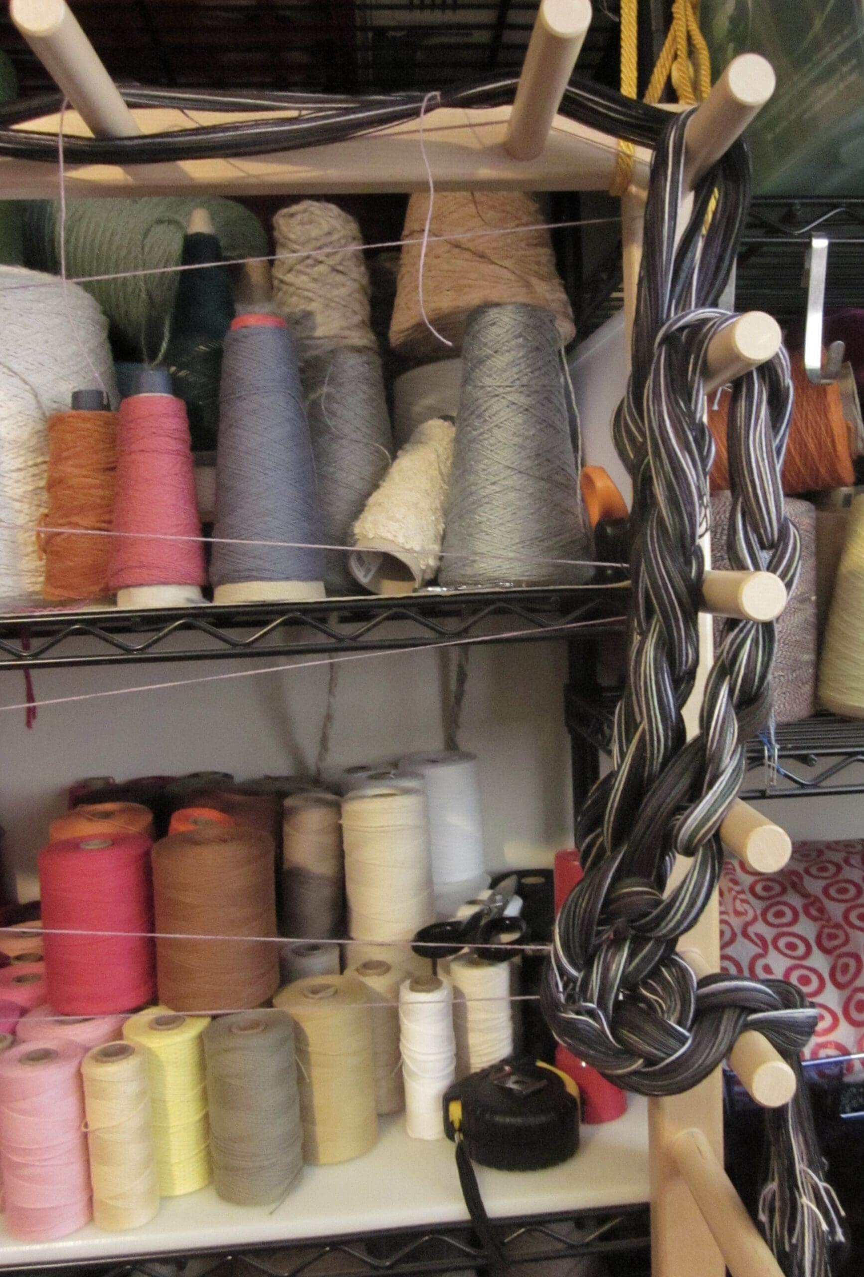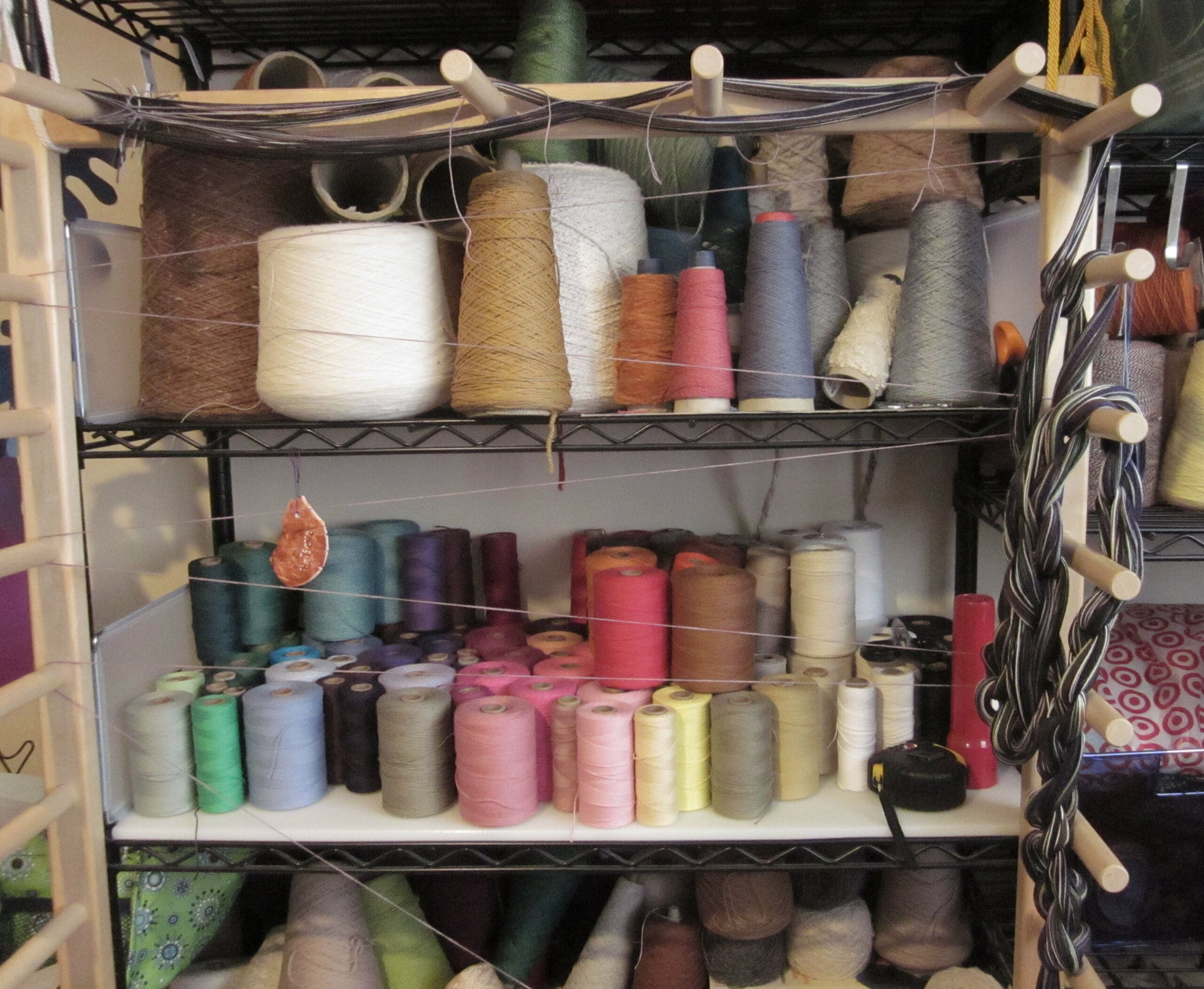 All the yarn will meet up at the table where the lease sticks will go in and the sleying will begin! Stay tuned for more fiber fun…