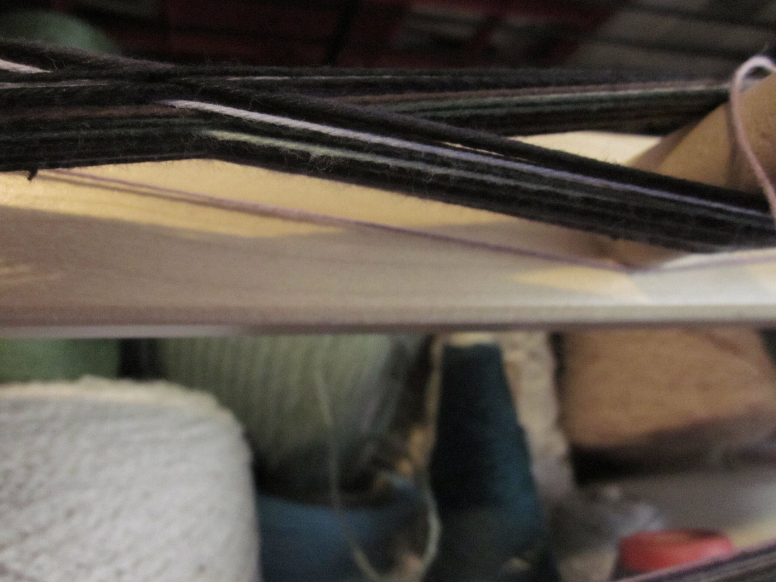 The lavender yarn you see in the photo above is called the guide string (you can see it best right against the wood). The guide string tells you which pegs to go around on the warping board to be sure you end up with the right length! Very important! I have messed up more than one project by not accurately measuring the guide string!