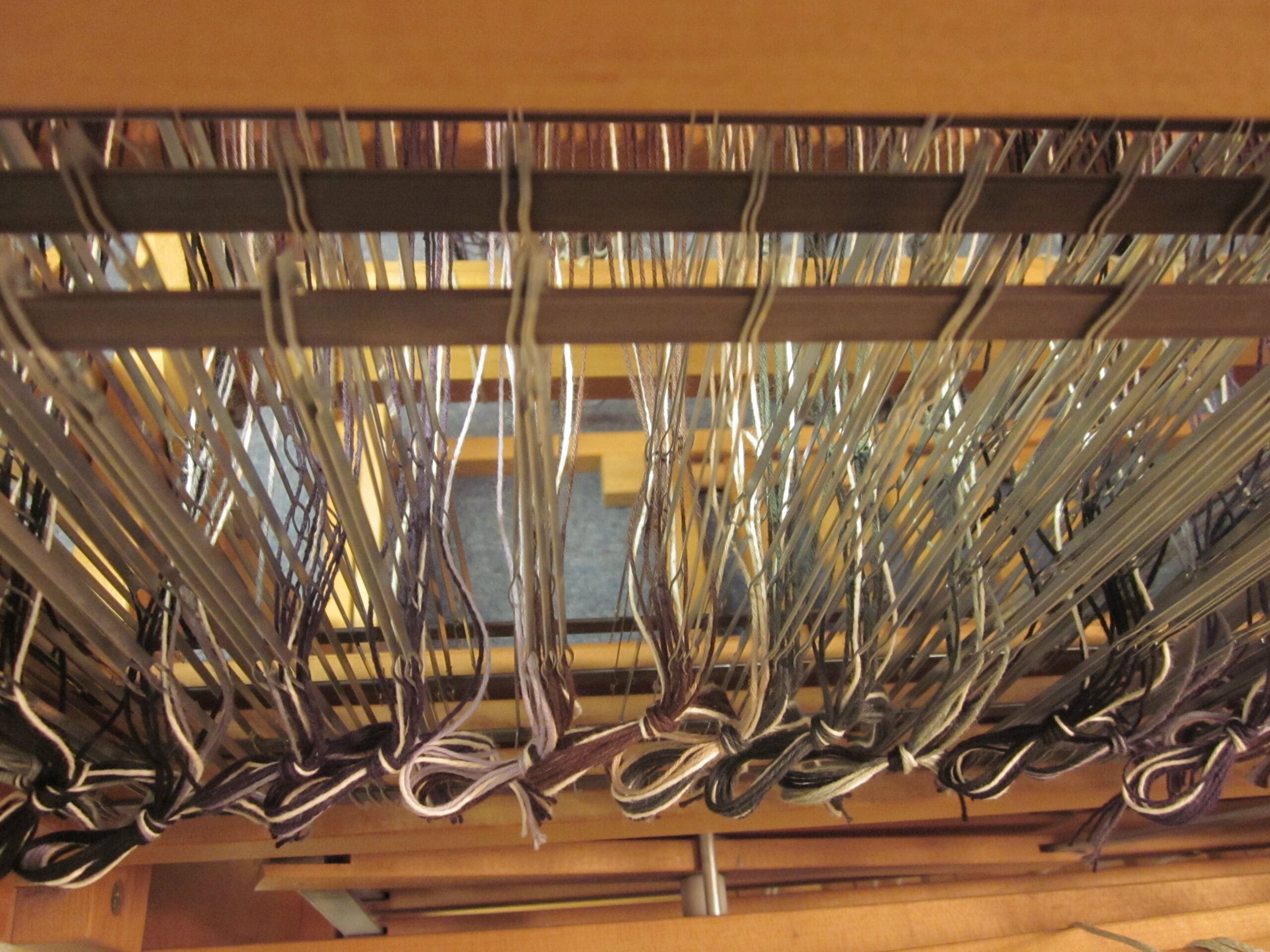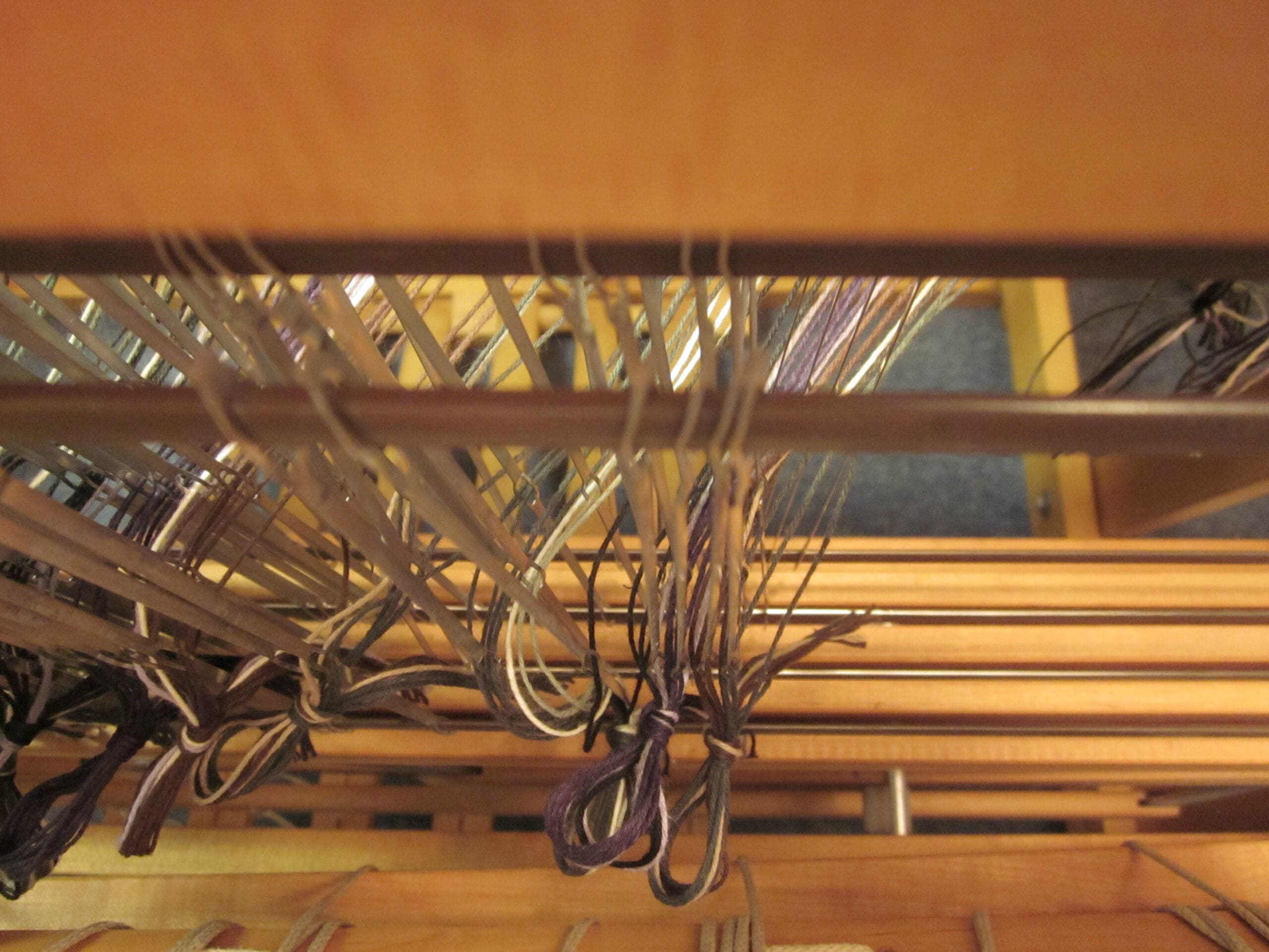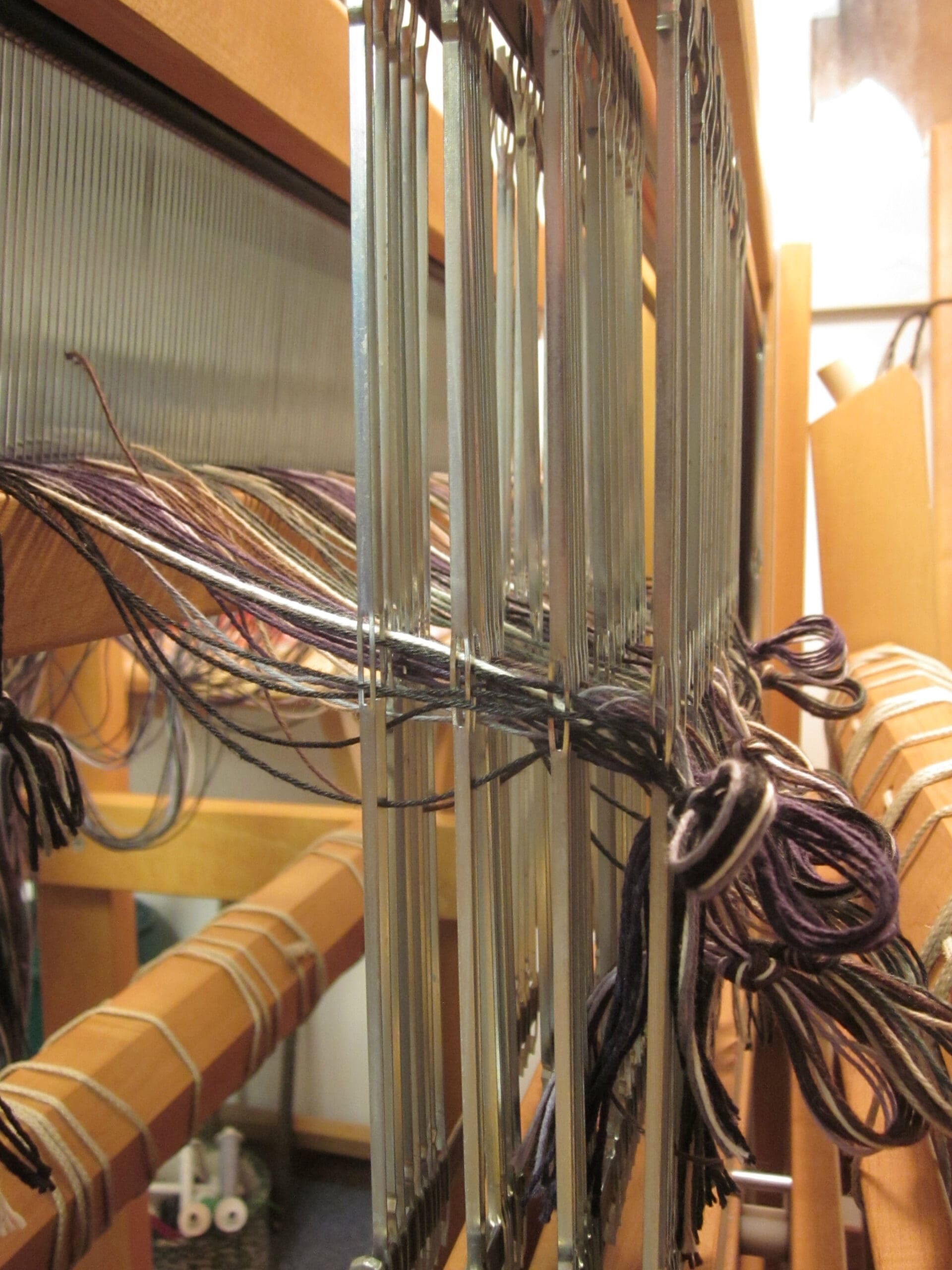 In the photo above, you can see the 4 rows of heddles – each row is connected to one of the shafts!