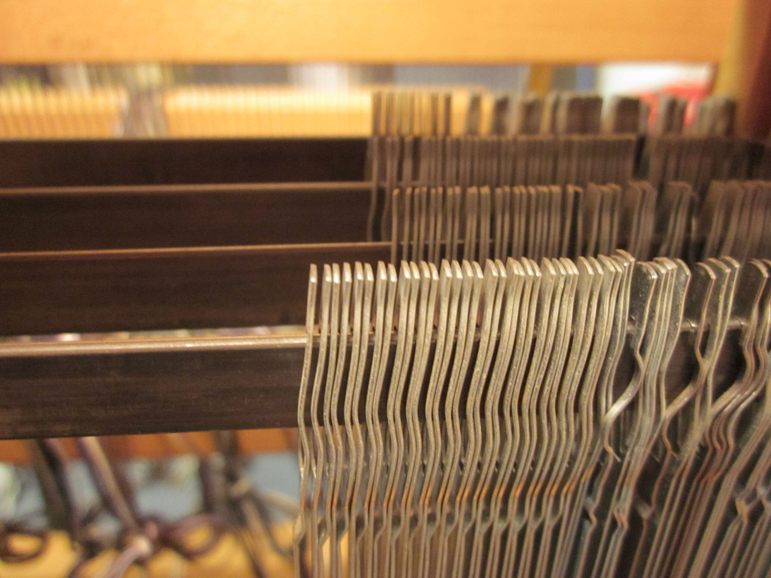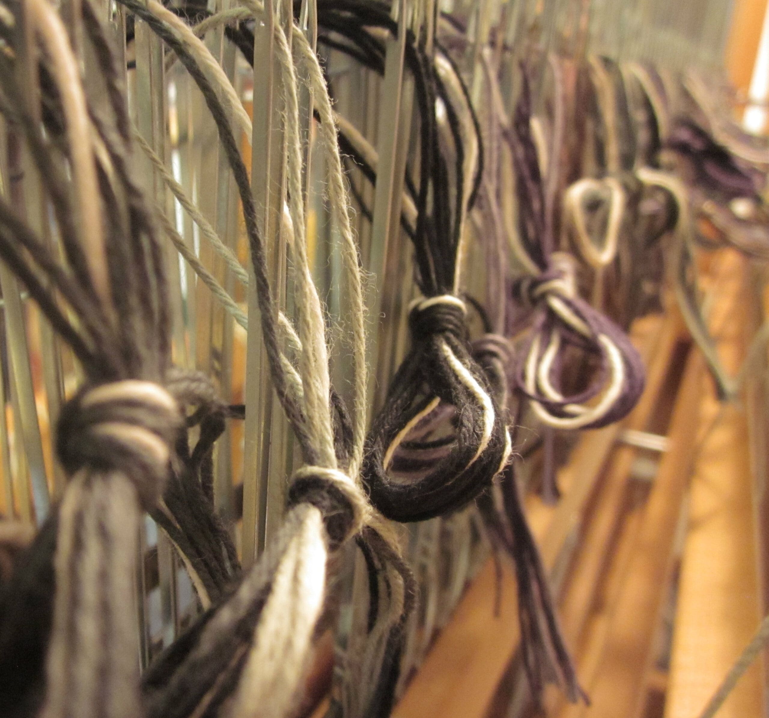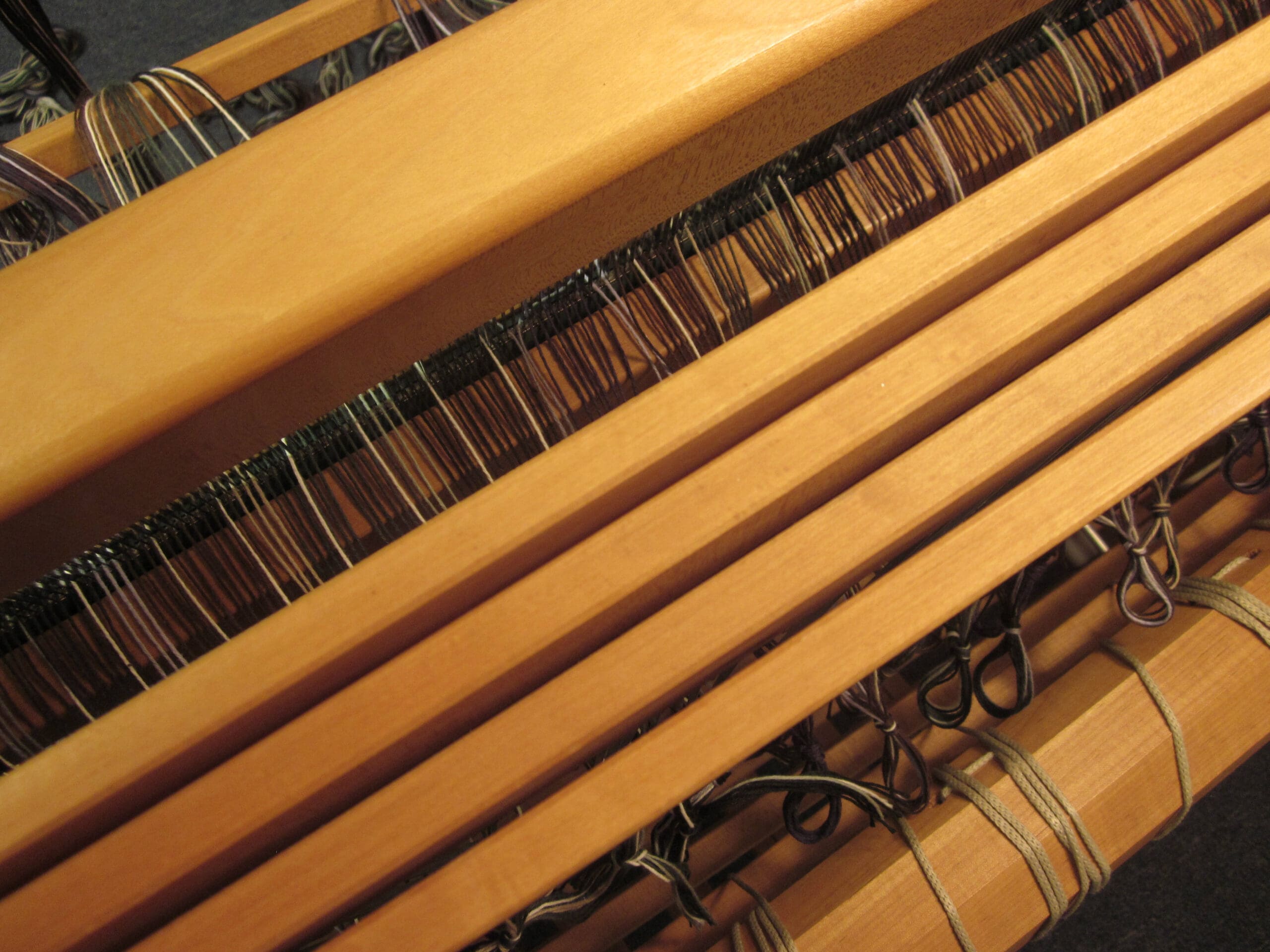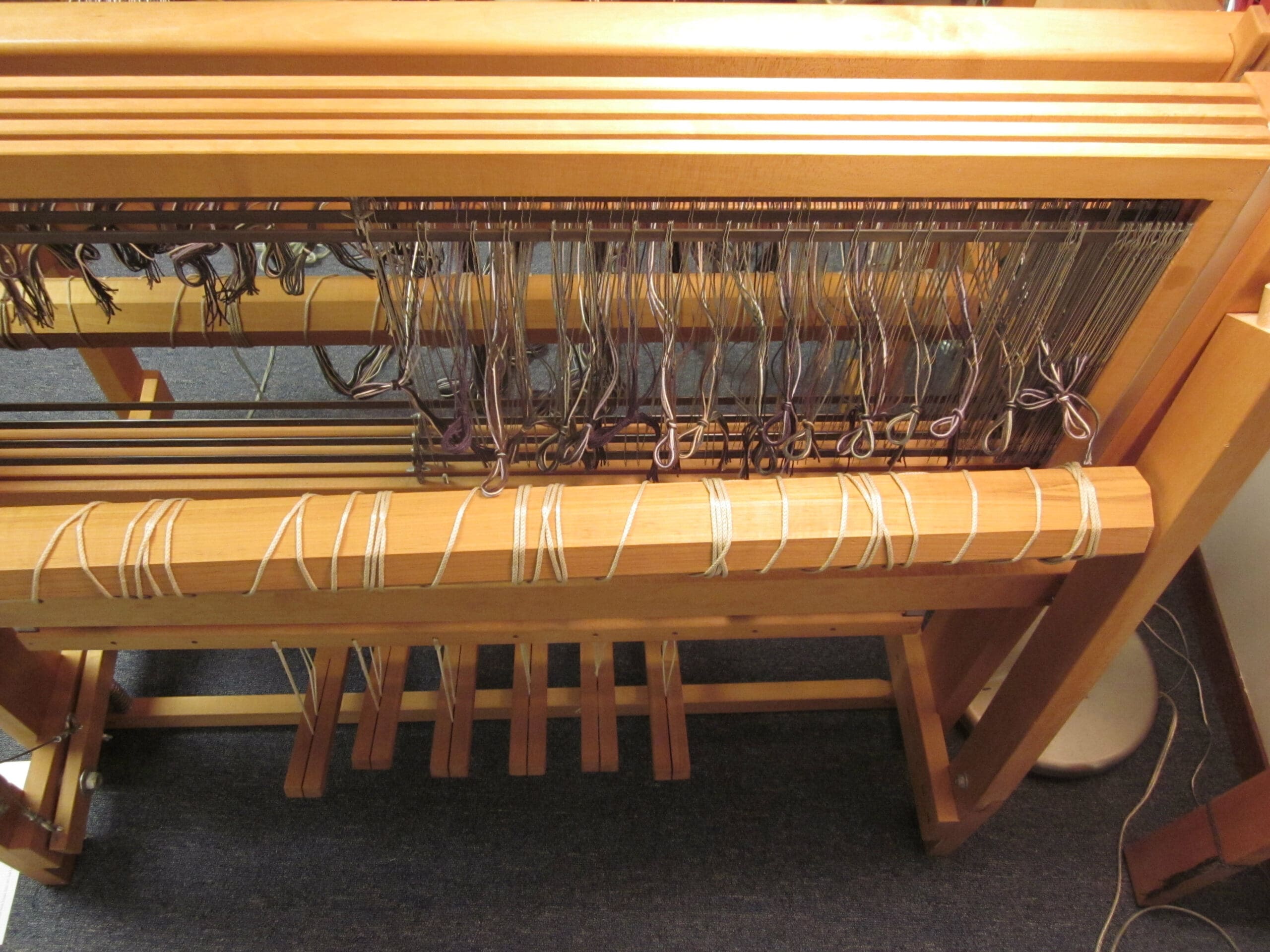 In the photo above, you can see the 4 rows of heddles – each row is connected to one of the shafts!
