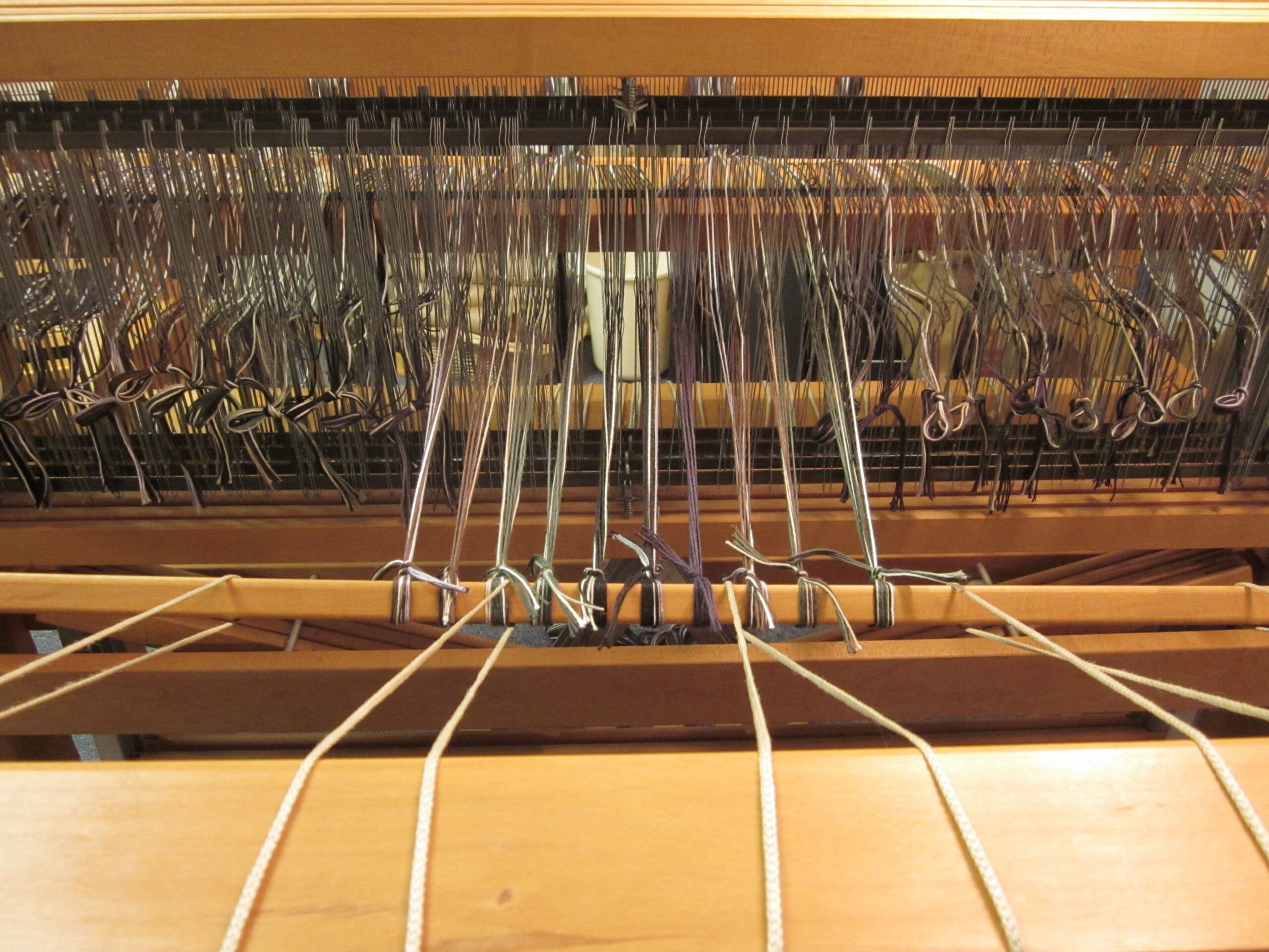 Part of my goal when dressing the loom is to situate the yarns so that they have the clearest, straightest path possible from front to back!