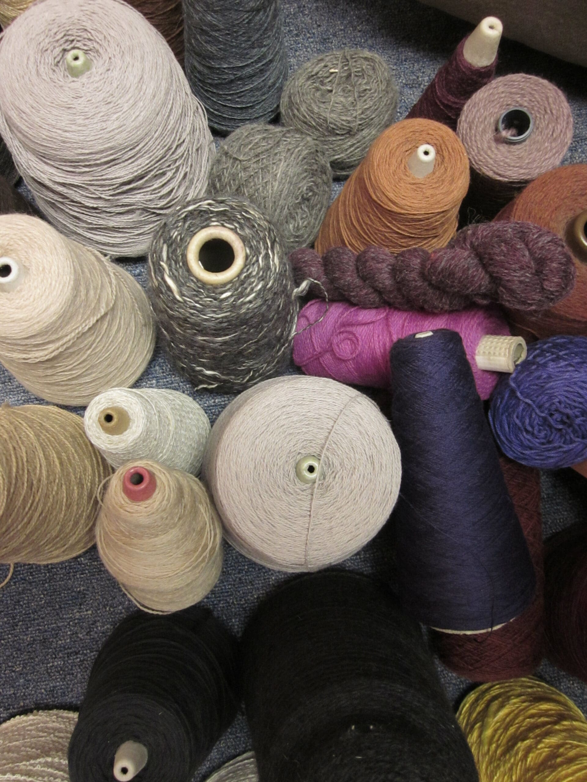 So, generally the weaving process begins with me clearing out my shelves! I pull out all the yarn that I might possibly be inspired by, and create a little yarn camp right next to the loom. For this project, I’ll be loosely using the colors in the warp (the yarns already threaded through the loom).