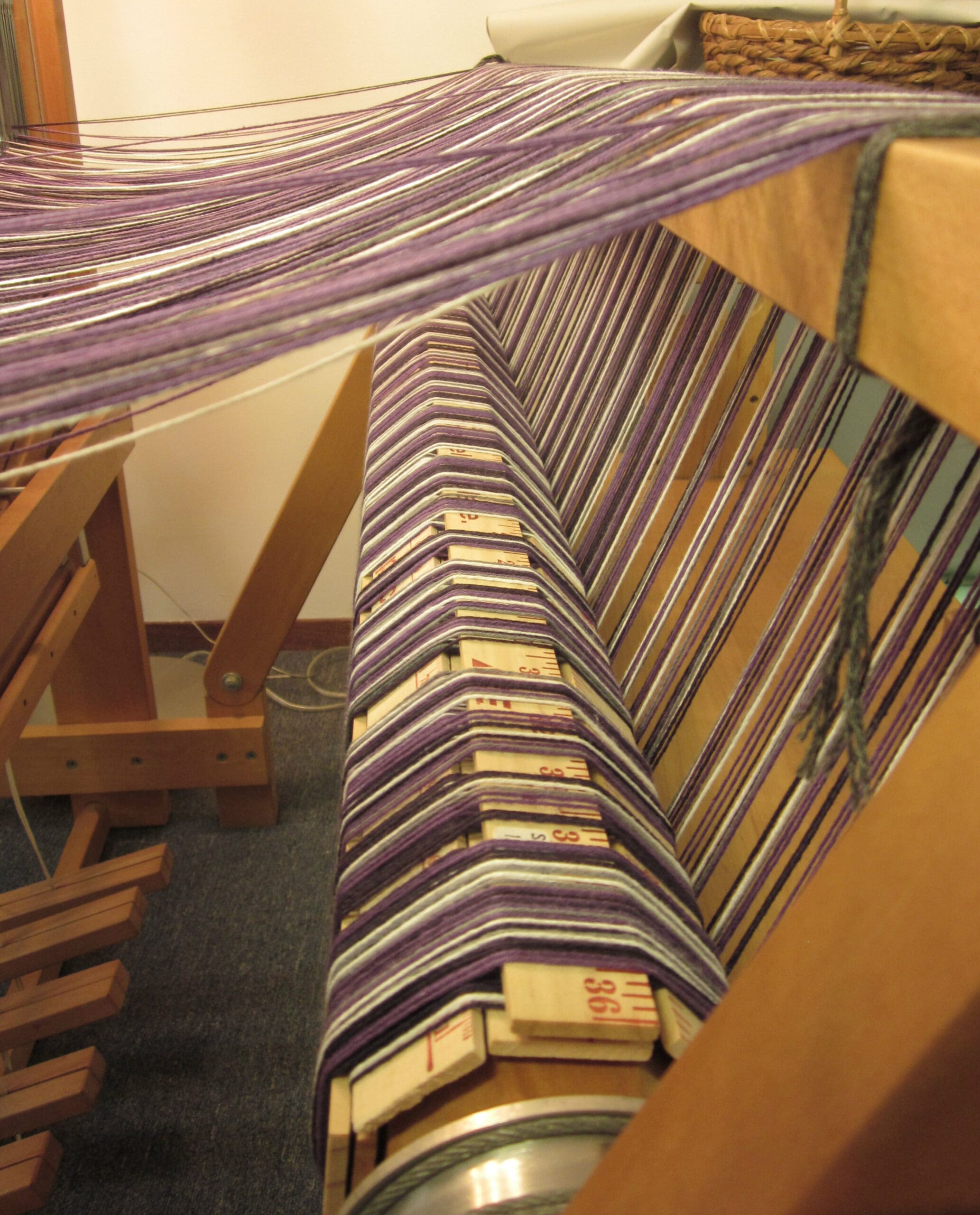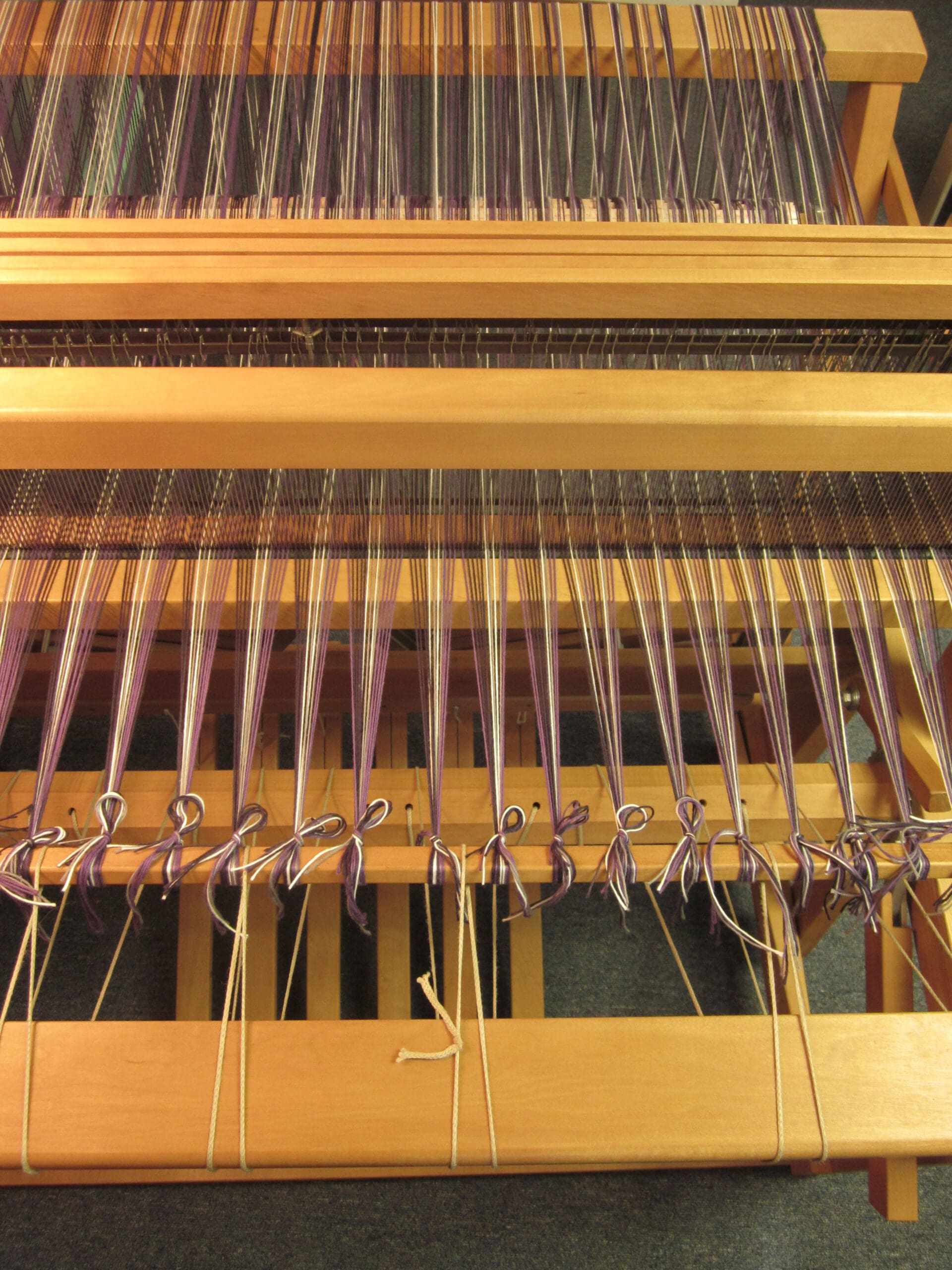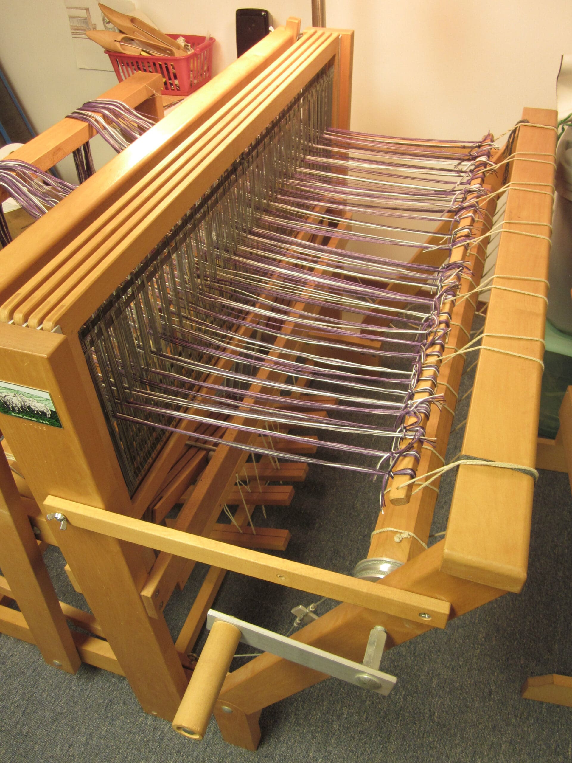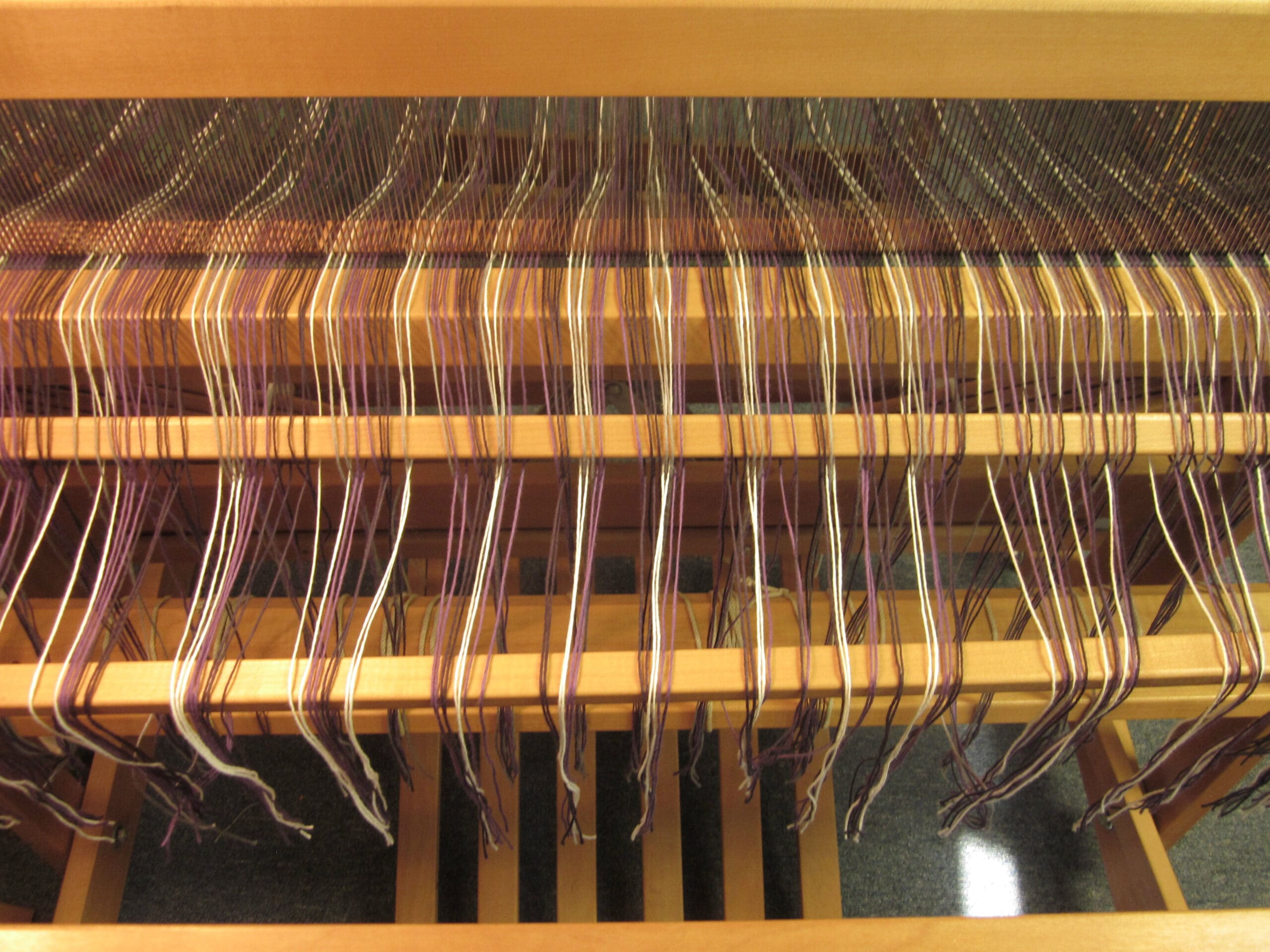 The yarn has been measured, threaded through the reed, sent through the heddles and is ready to be wound on!
