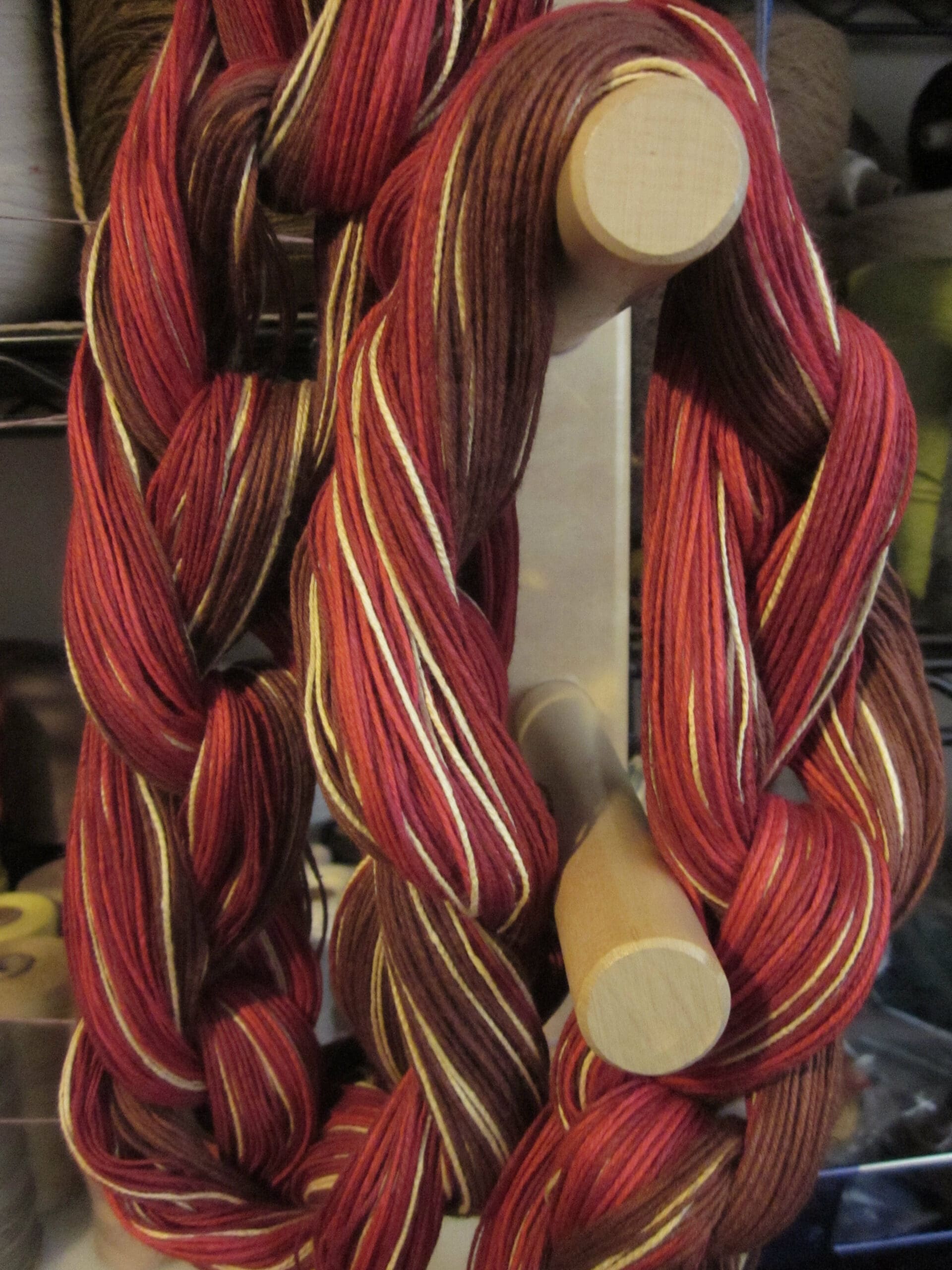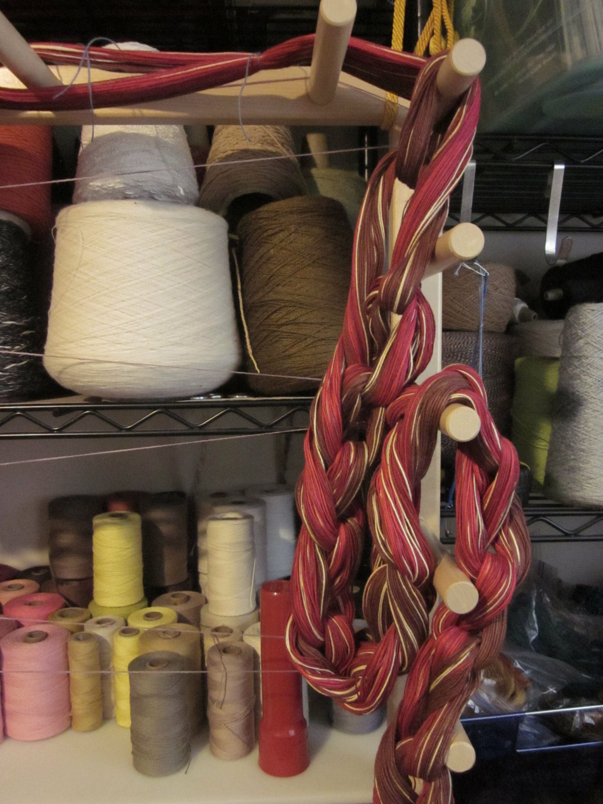 One day, I’ll make a little video so you can see the process of twisting the yarns off the board. It only takes a minute to start at the bottom and develop our pseudo-braid all the way to the top. But, nearly impossible for me to catch a photo mid-stream. My hands are full! So, another time. For now, we’ll enjoy the red/brown section of the project knowing there will be some gorgeous oranges and yellows to come! Talk to you soon…