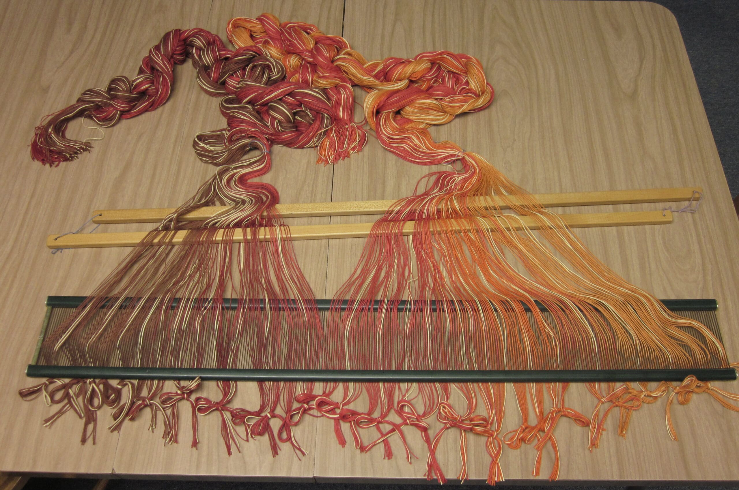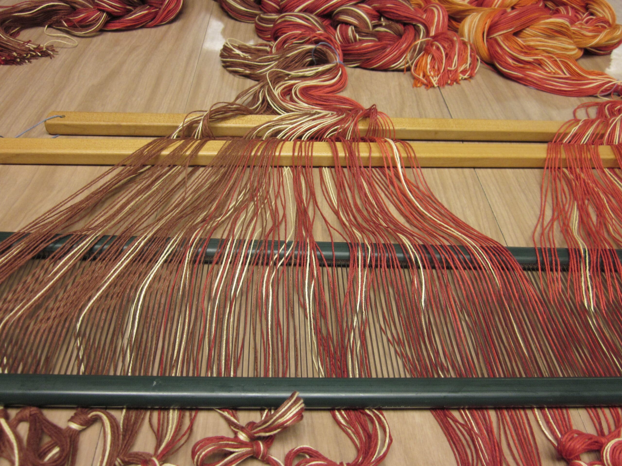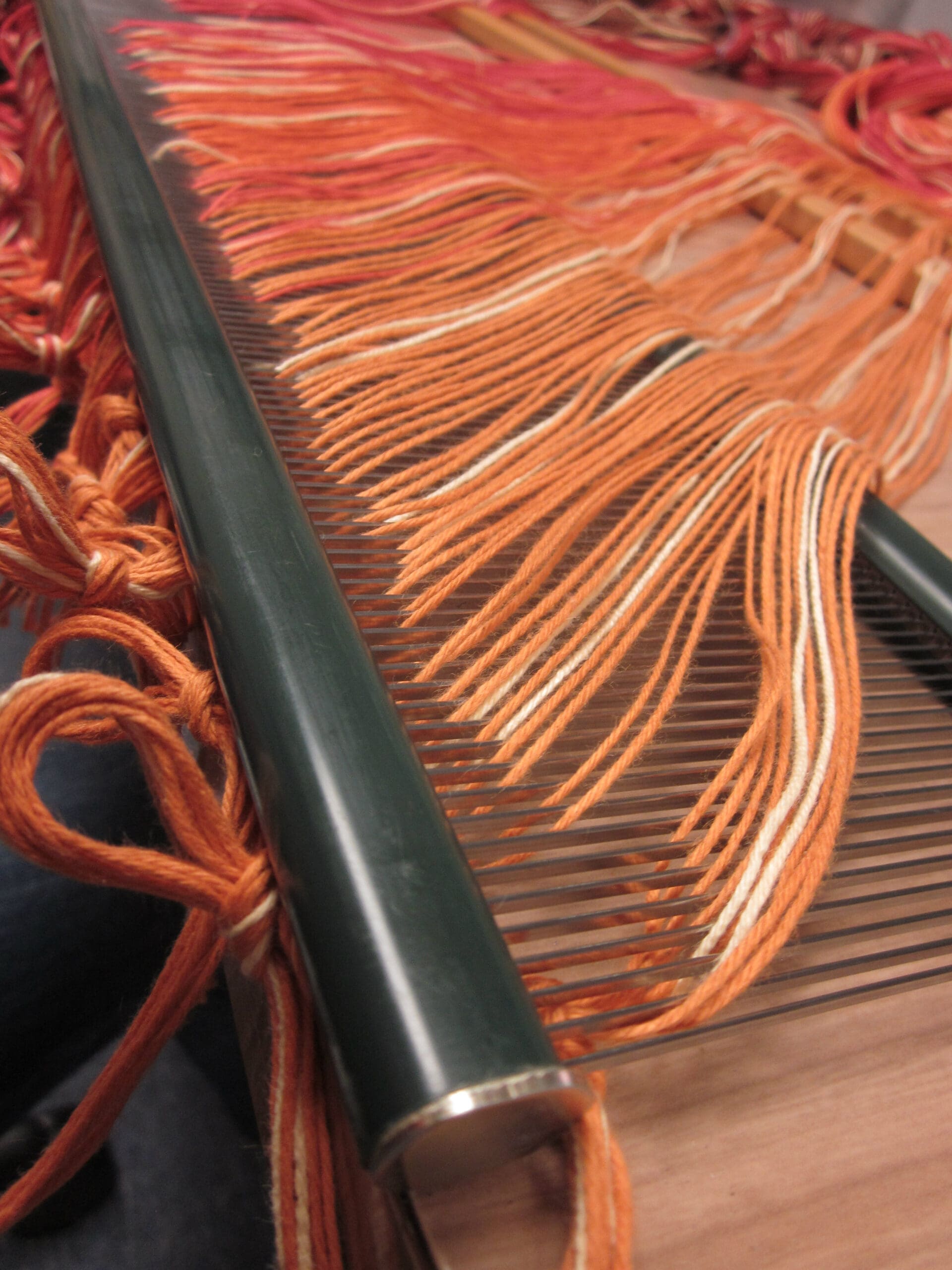 When last we spoke, I had a beautiful pile of yarn that had just come off the warping board and is now ready to go into the reed! So, let’s hop to!