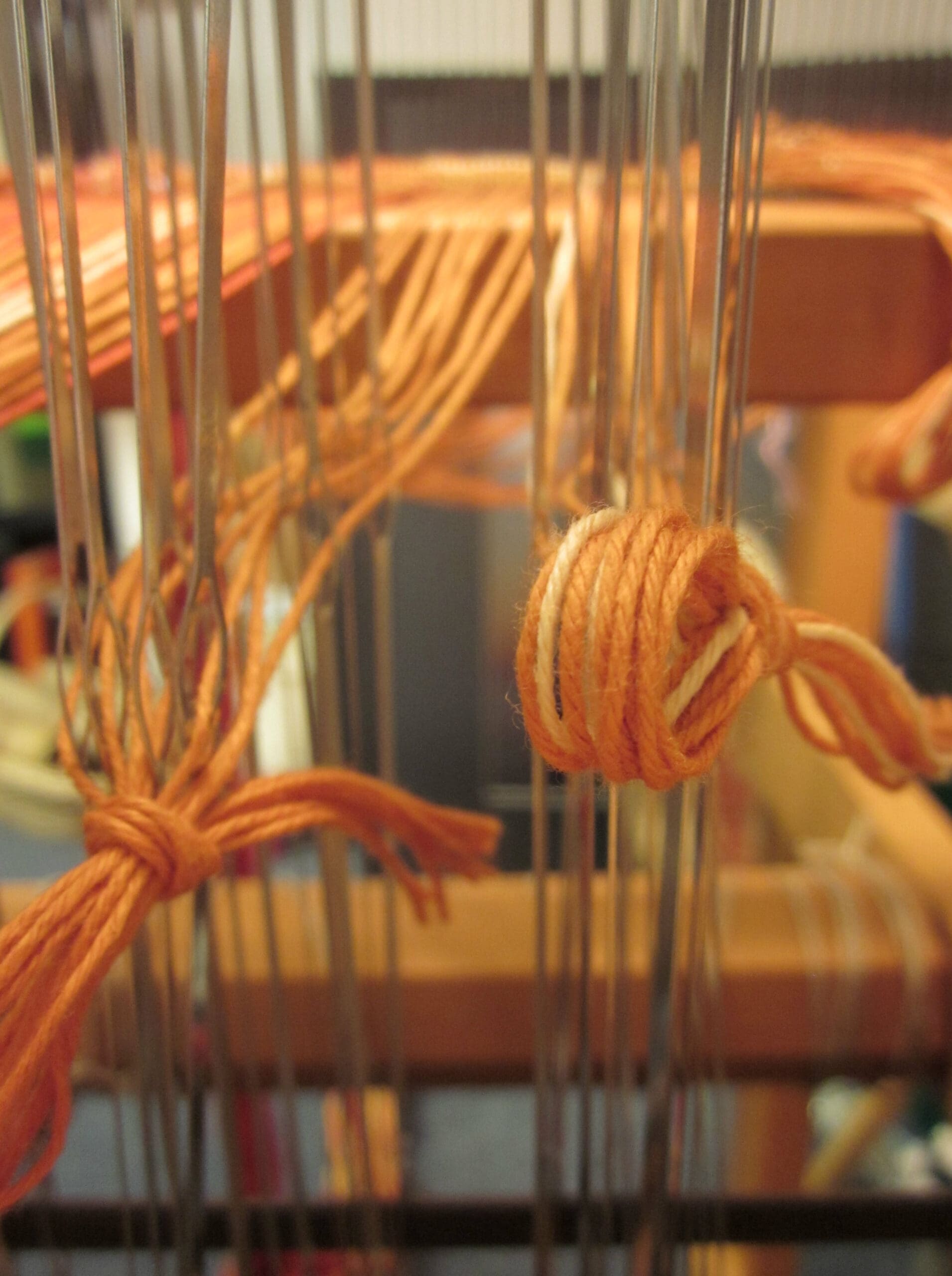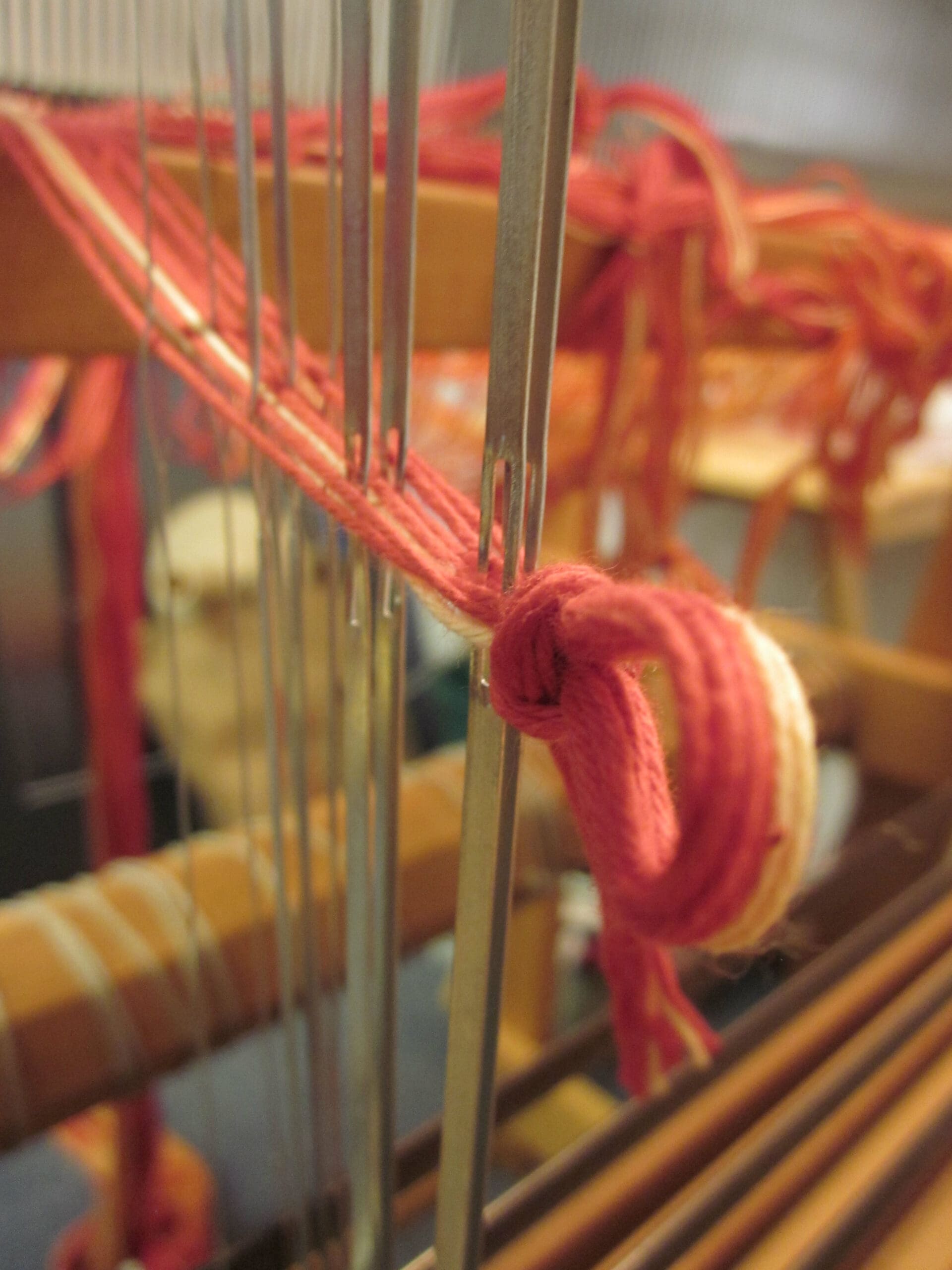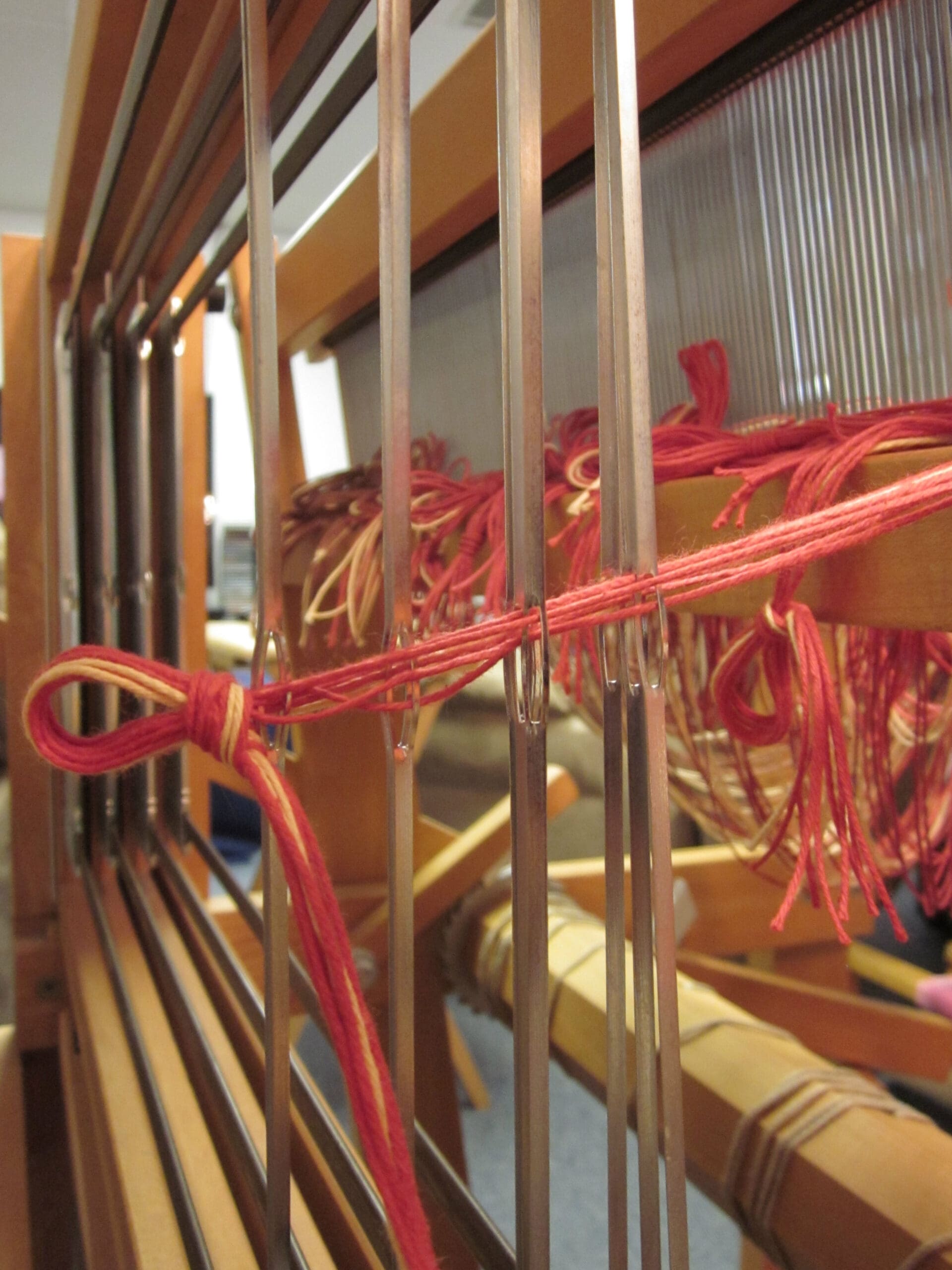 I like to tie the lease sticks such that they don’t go flapping all over during the “threading the heddle” process. Otherwise, it leads to unnecessary frustration and who needs that?