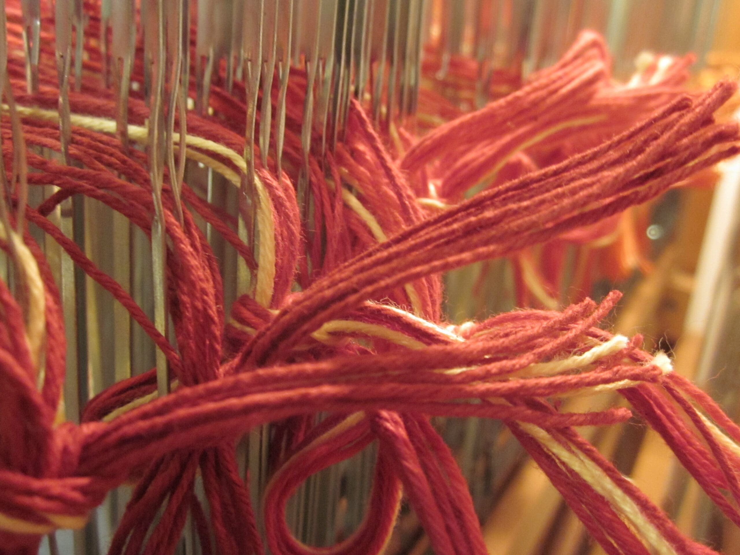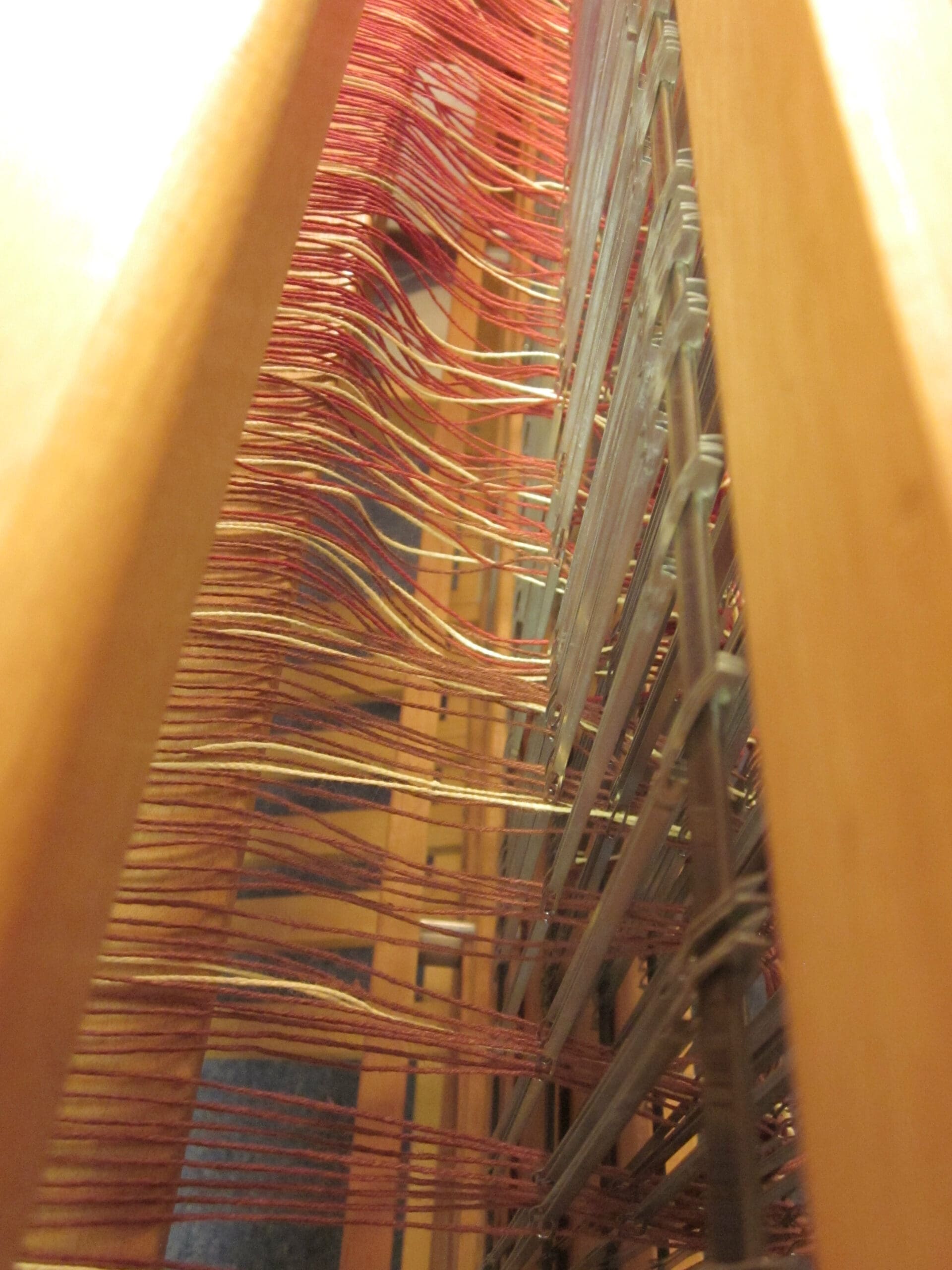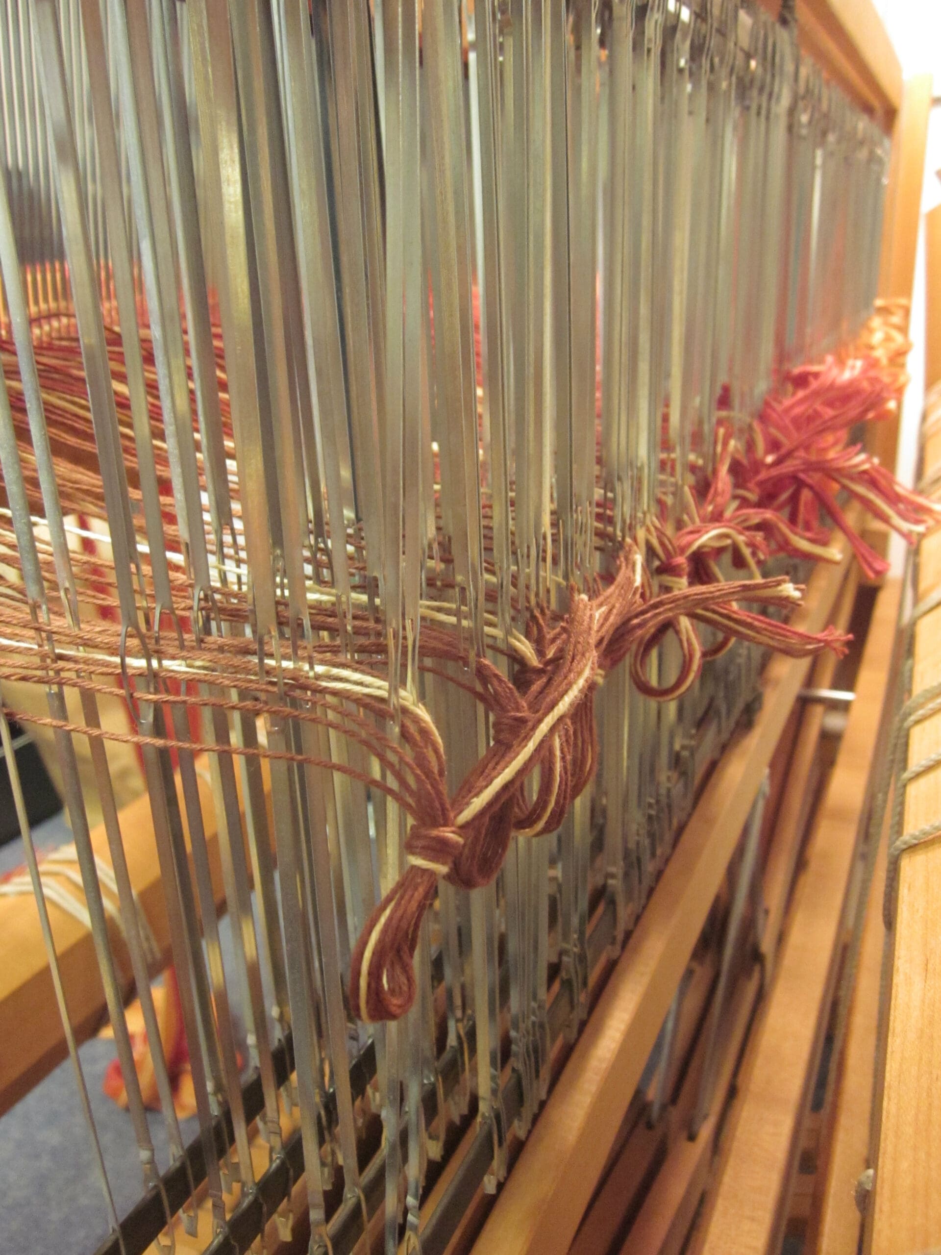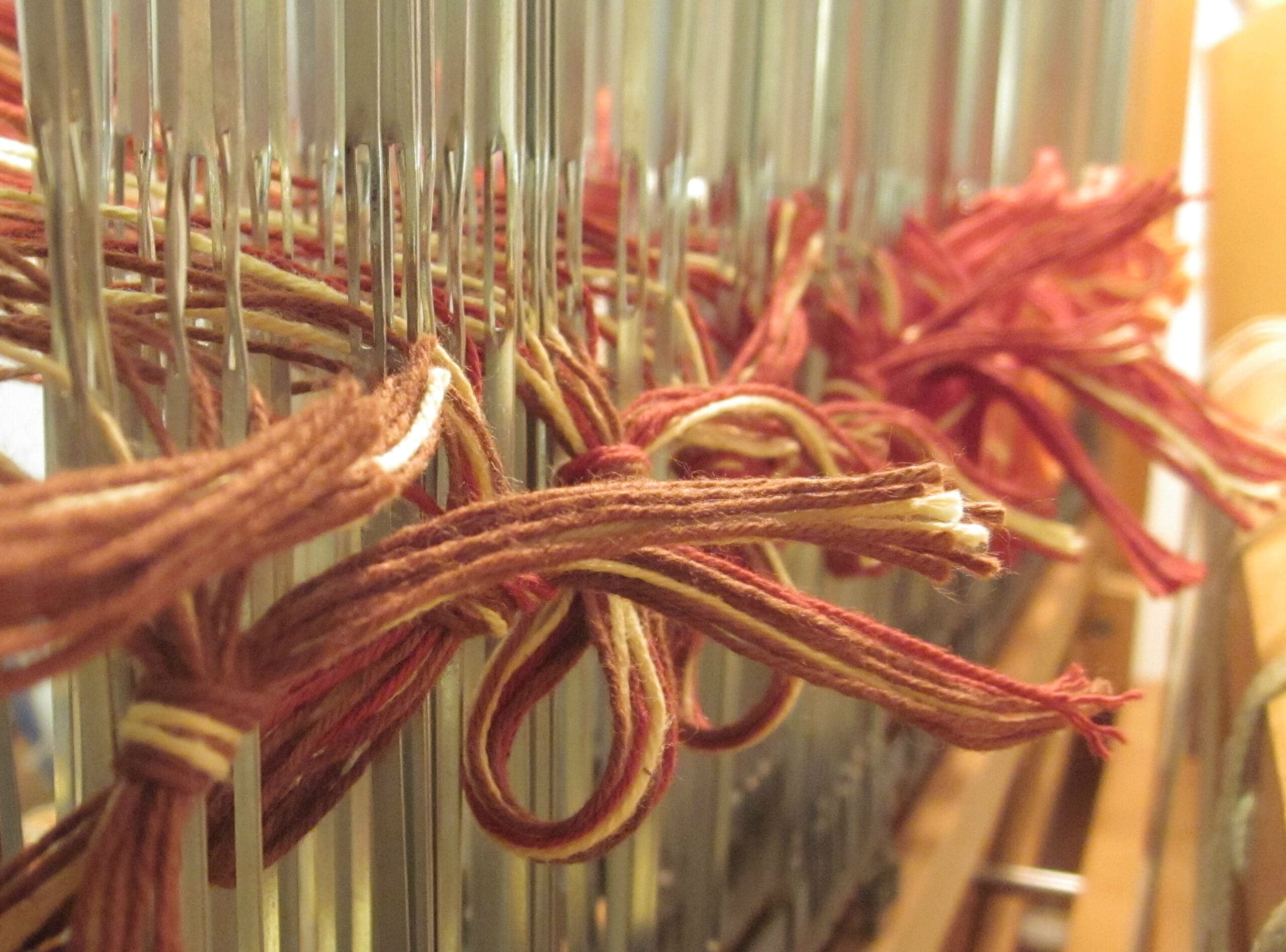 Watching the brown yarn go through the reed & the heddles!