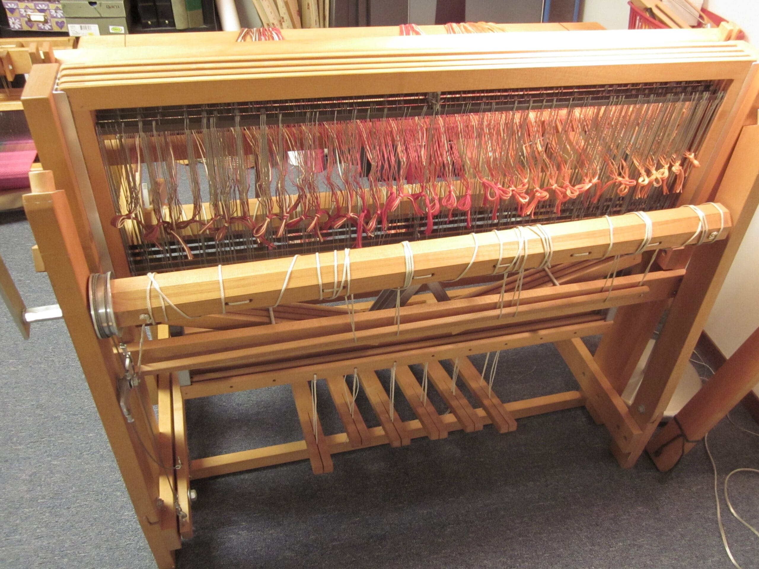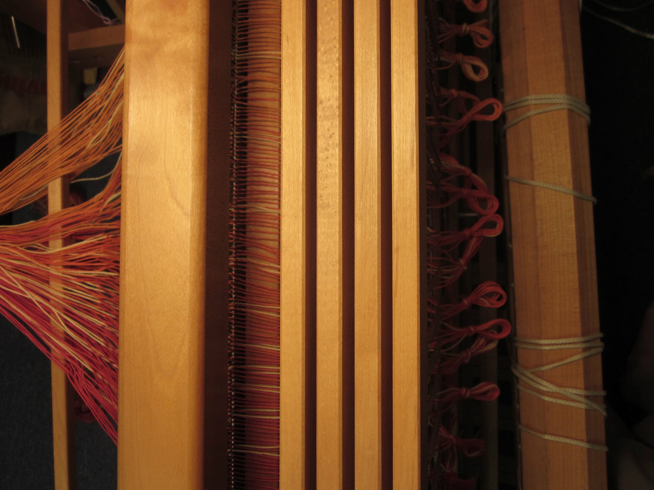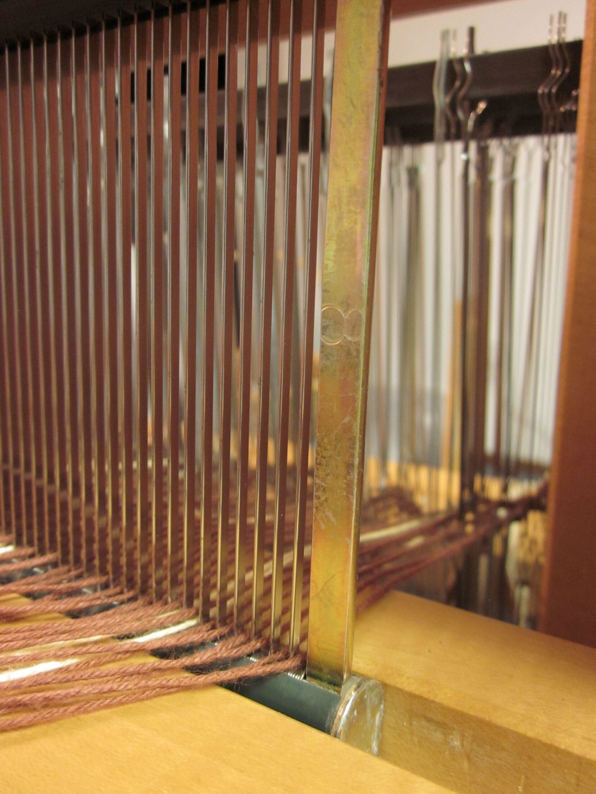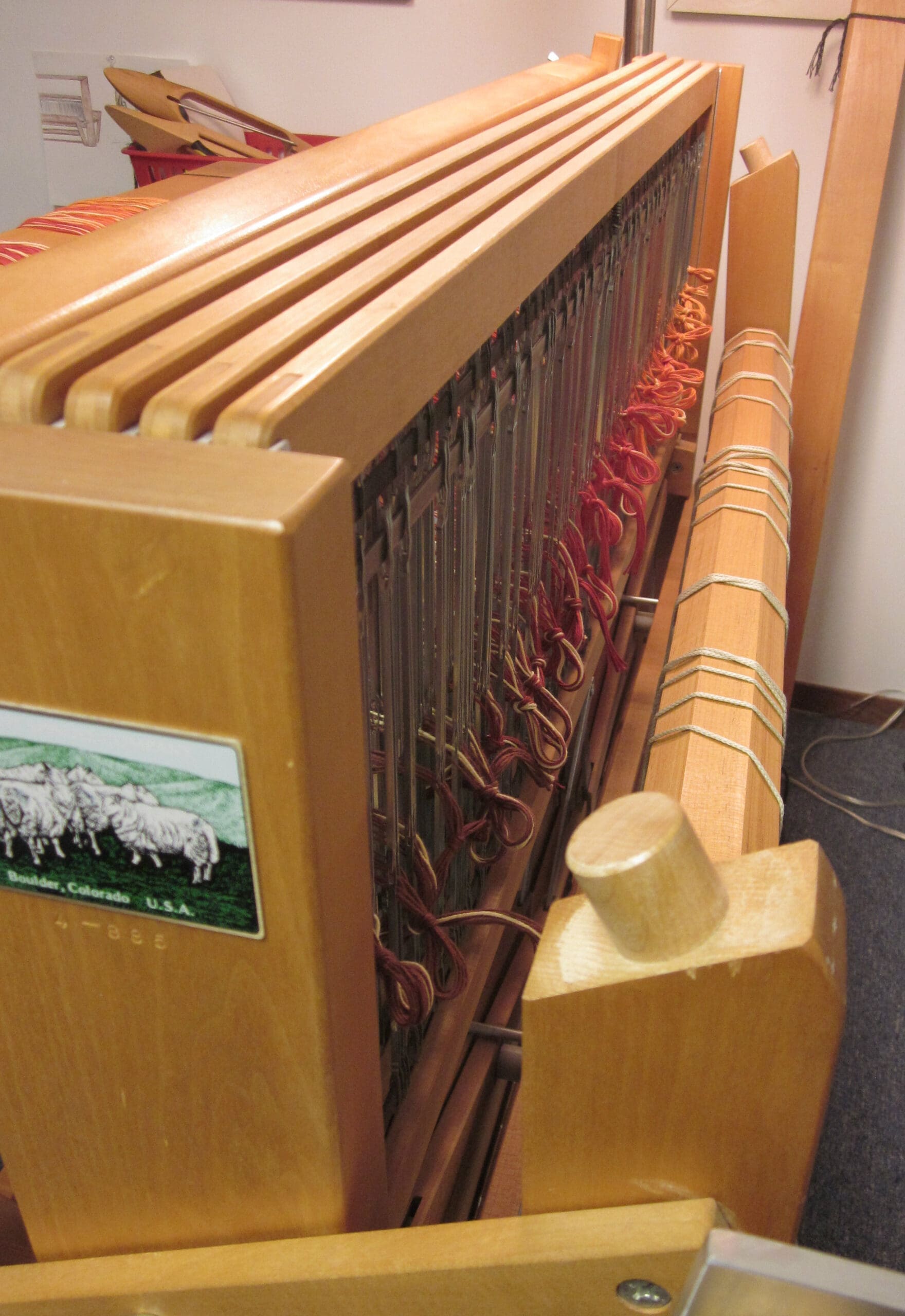 Watching the brown yarn go through the reed & the heddles!