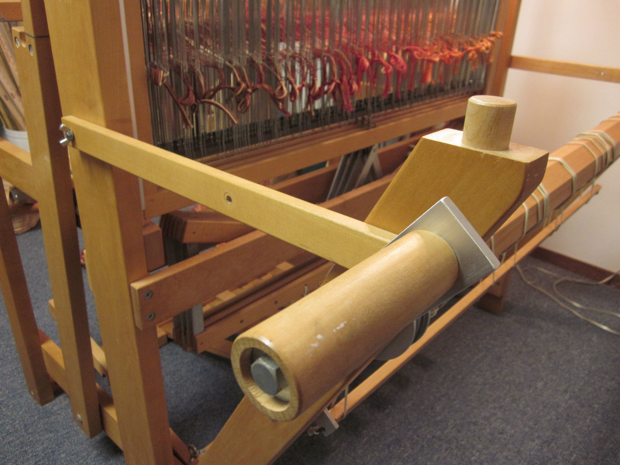 I have a removable crank for my loom, which is a great thing until you misplace it. So most days, I leave it on. Truly, the crank is one of the most important pieces to the plan! Without the crank, there will be no winding, forwarding or making progress. So, all hail the mighty crank!