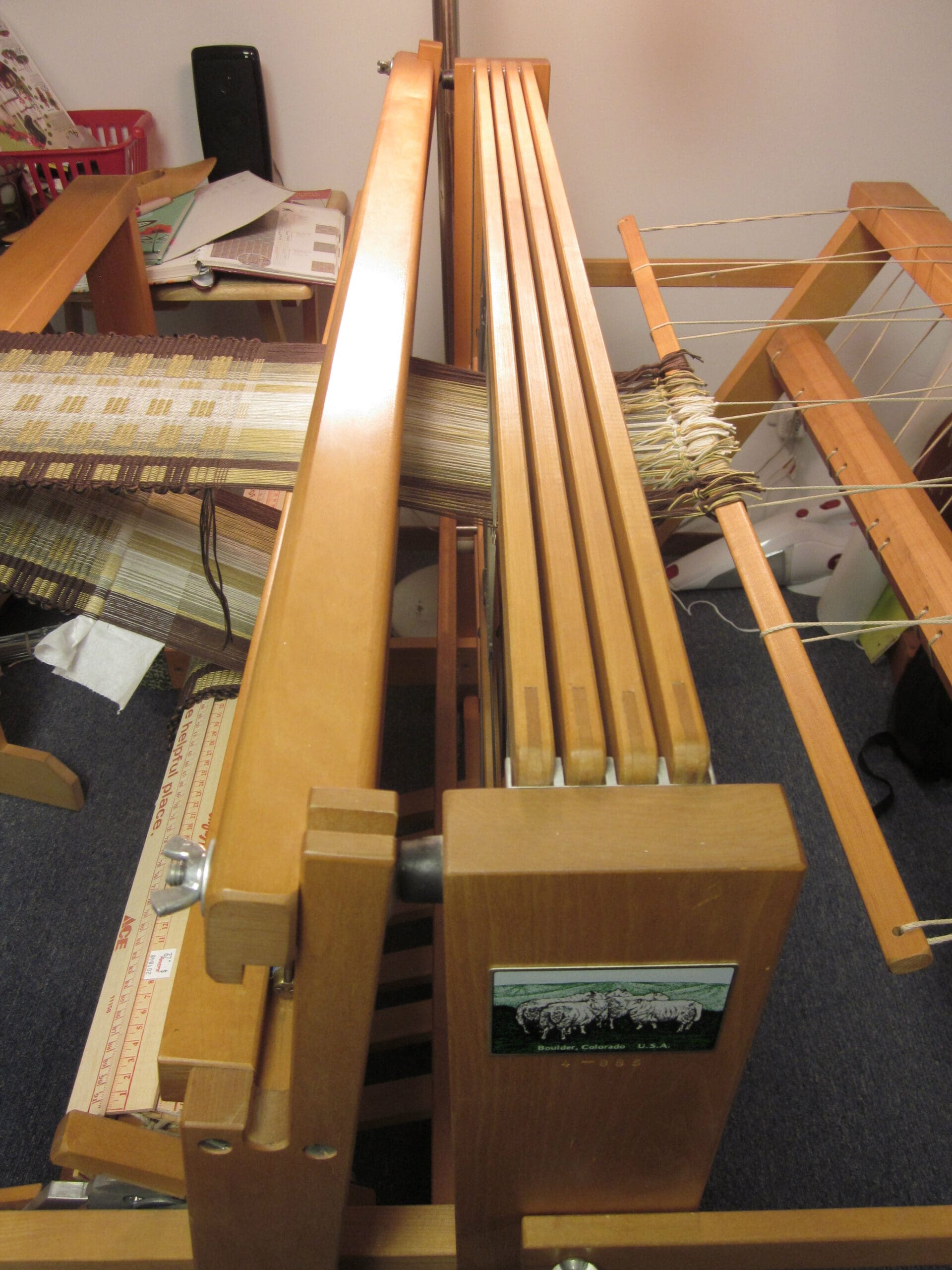 Usually, when I’m weaving fabric for handbags, I don’t have to worry about the beginning and the end of the project. But, for this table runner, I have plans to twist the yarn into fringe at each end. So, I have planned extra inches of yarn for that very thing!
