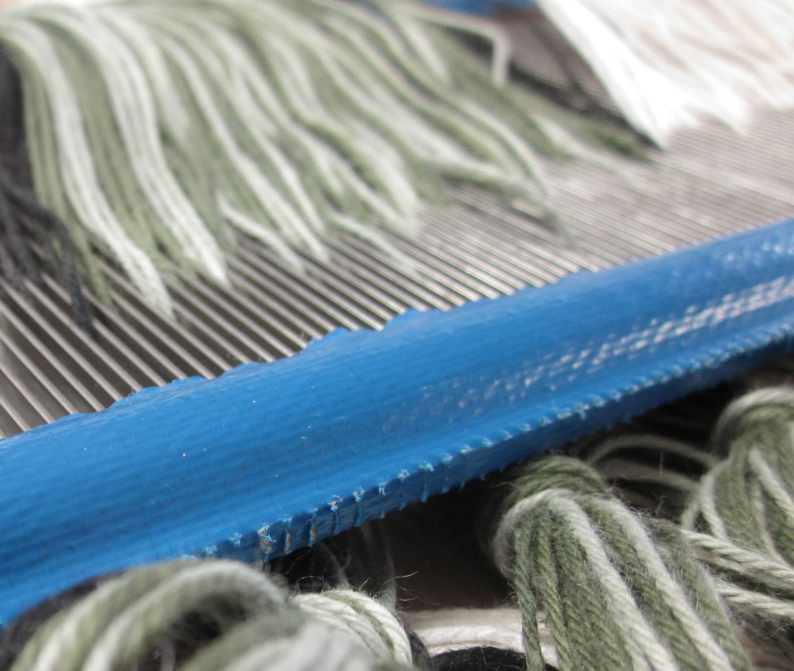 There are a variety of other little items I’d recommend when sleying the reed – pair of scissors, sley hook (helps with moving the yarn through the slots), measuring tape, tv remote and cup of hot tea. That’s usually my line-up! Although, you could exchange the remote for a stereo and the tea for coffee. But, to each his own!