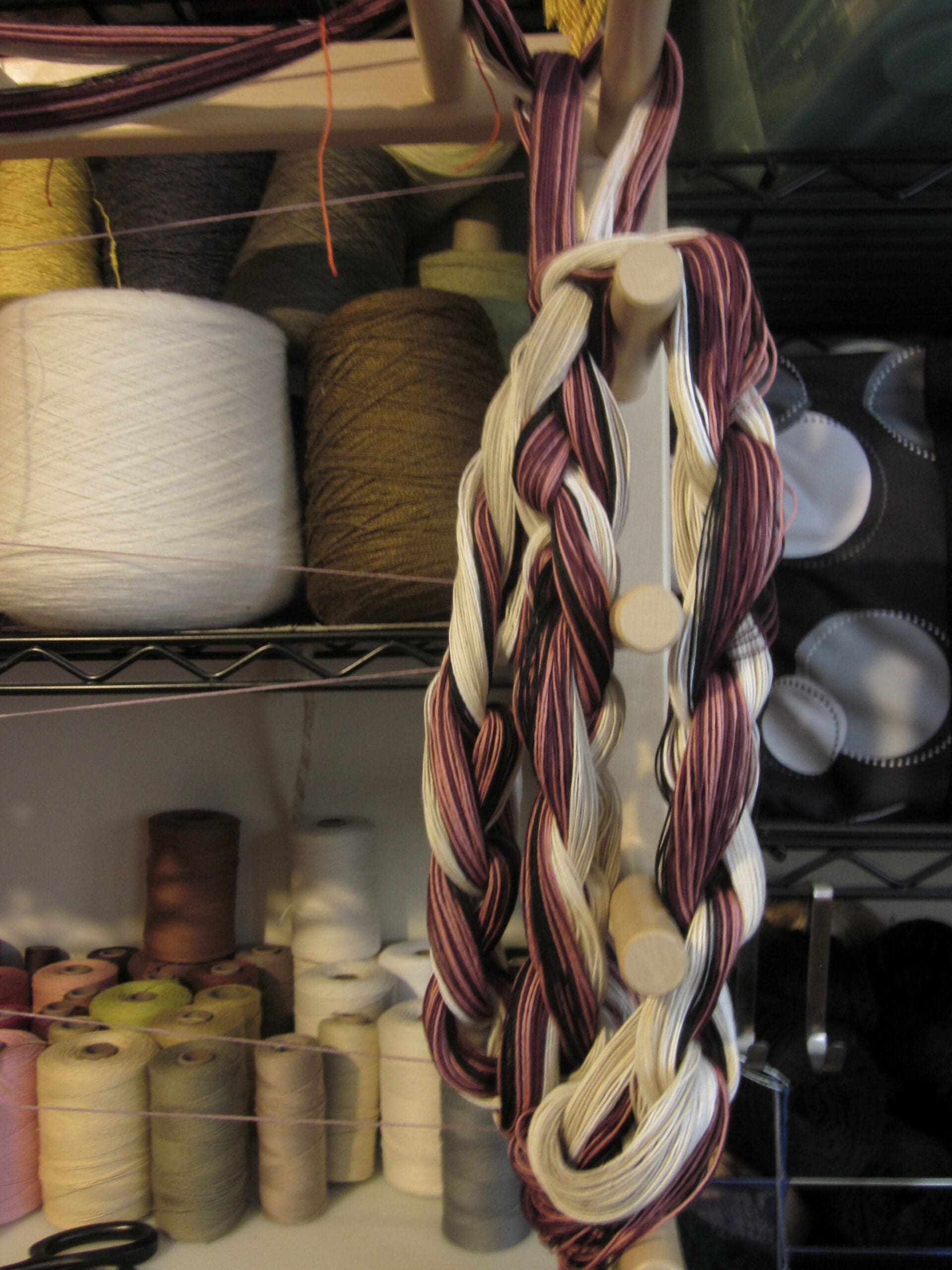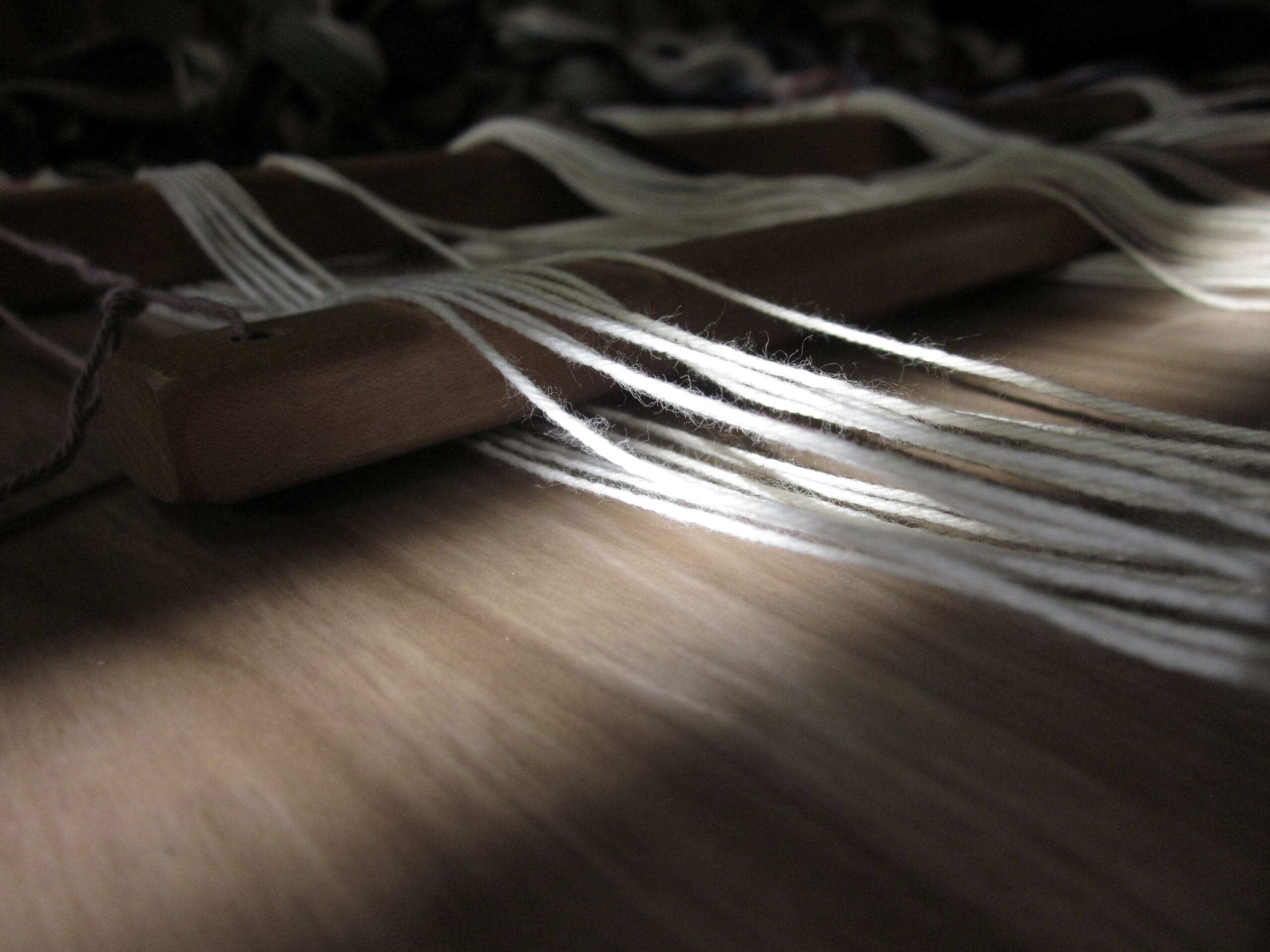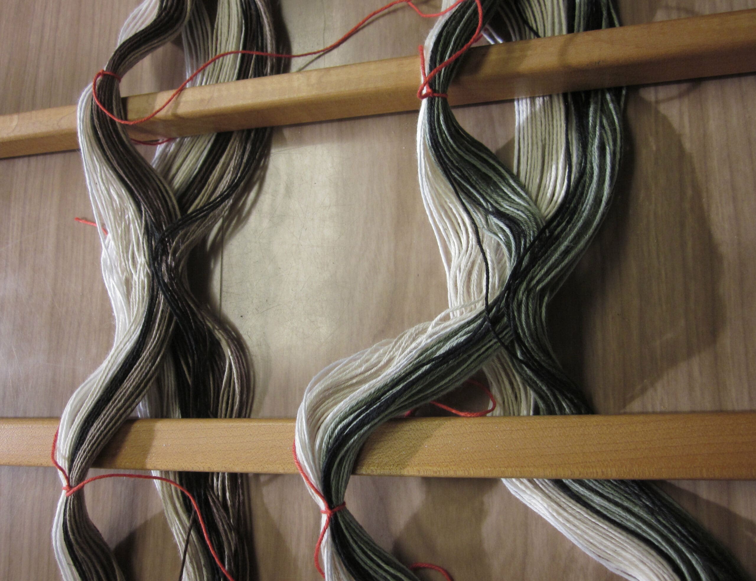I’m in the process of finishing up at the warping board – measuring all the yarns out for the project. In this case, I’m trying something a little different. So, it’s taking longer than my usual. Hopefully, the end result will be worth it!