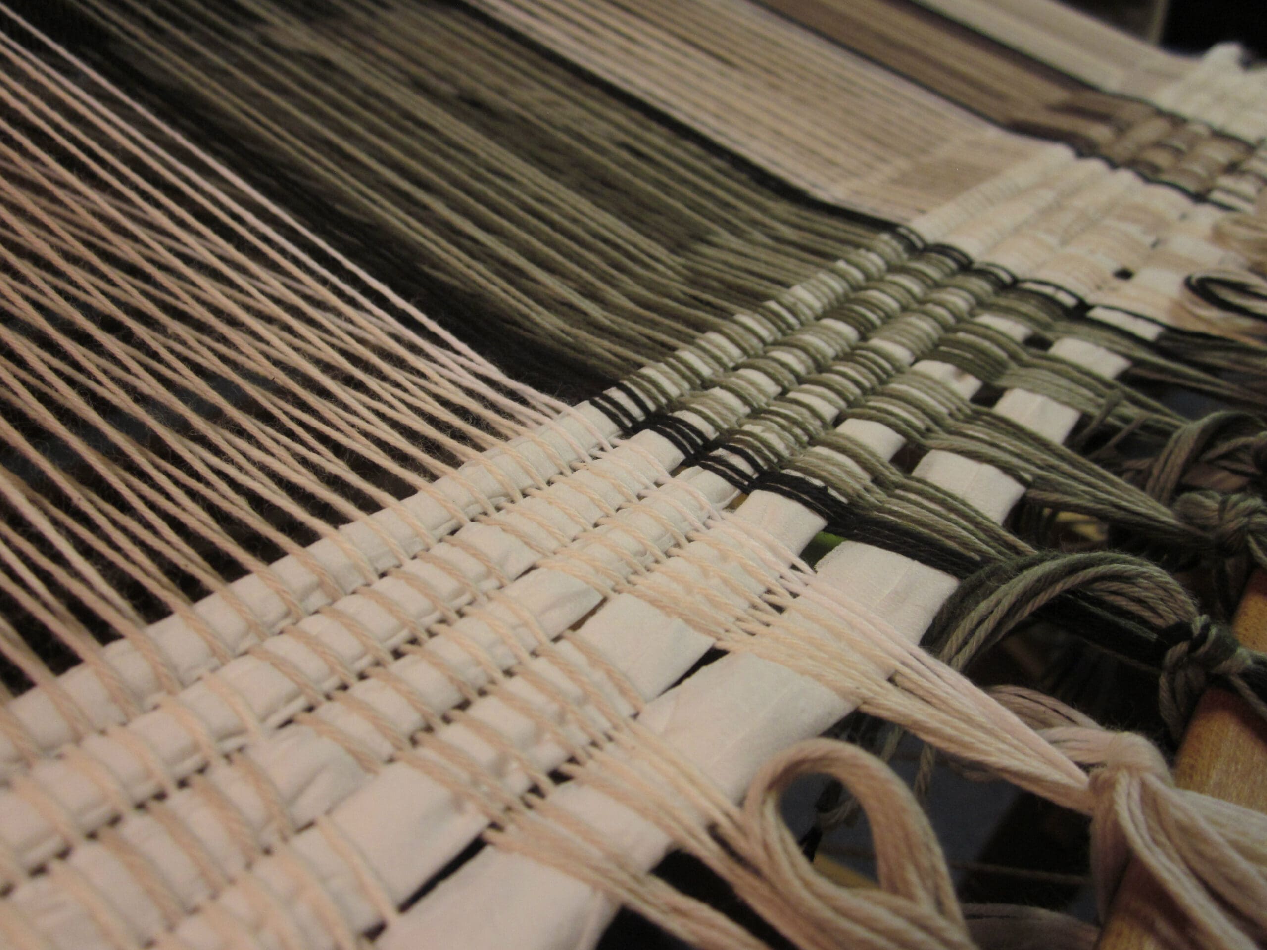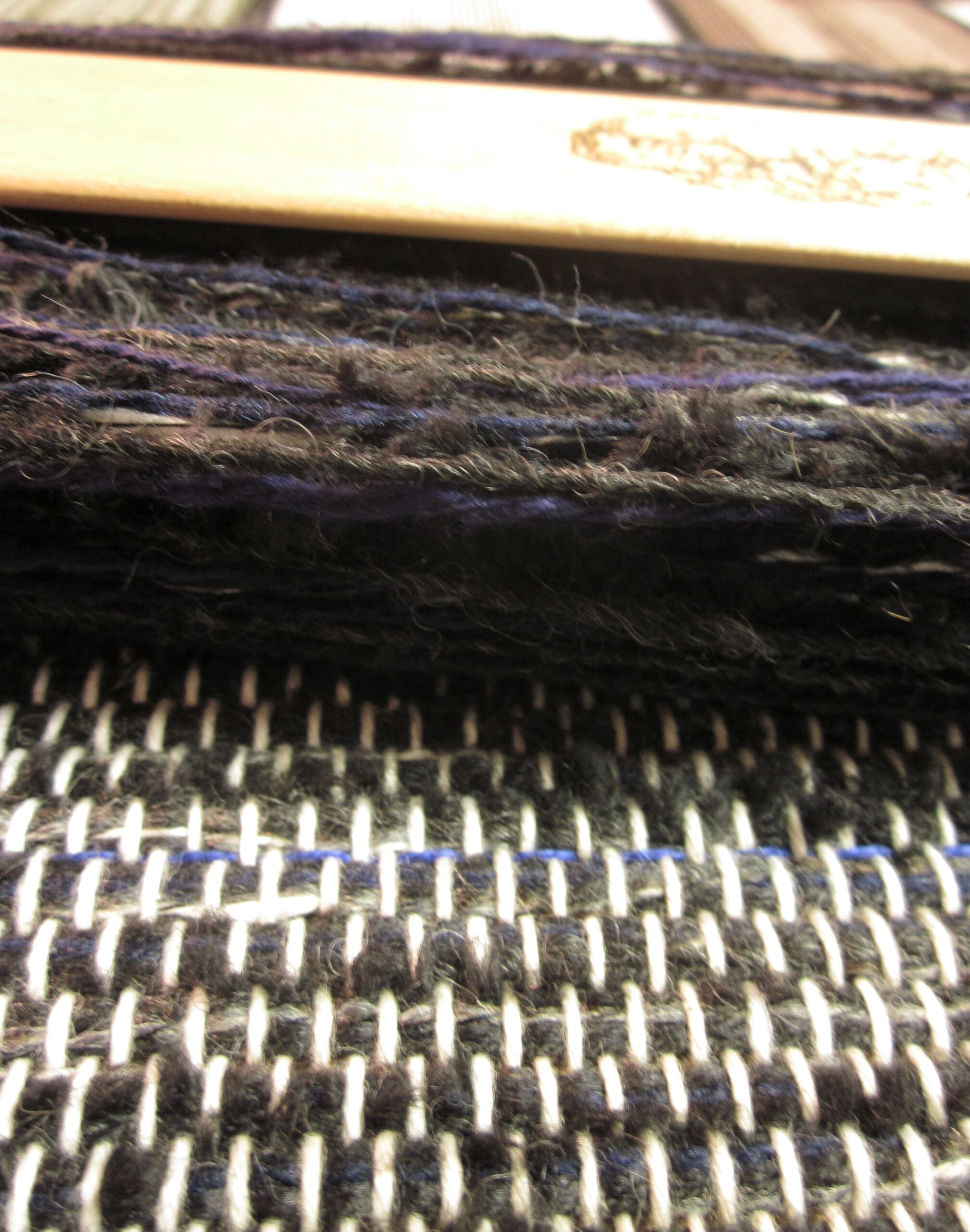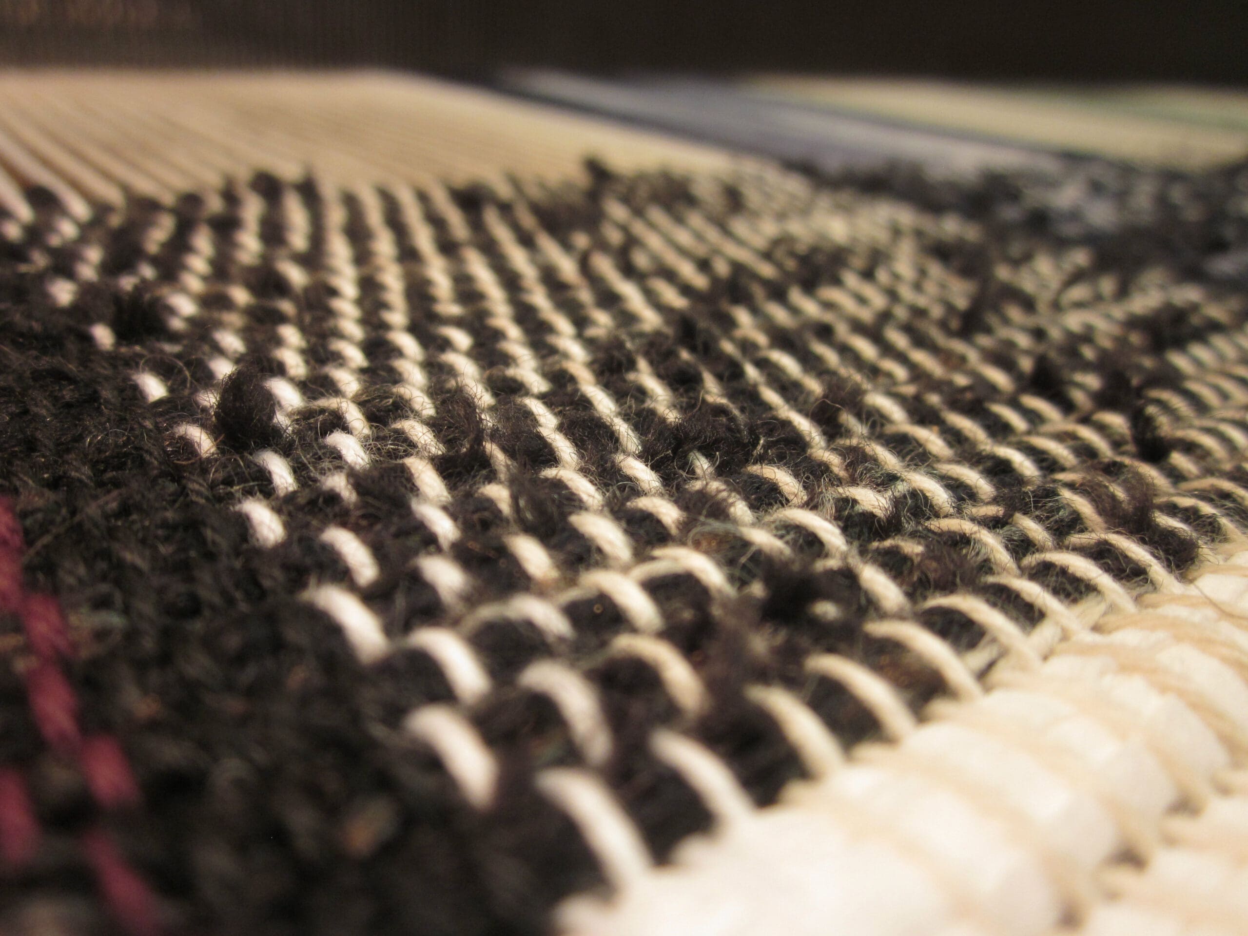 It’s pretty rare for me to use all the same colored yarns together in the shuttle. Say I’m working with black –  I’ll throw in a bit of navy, maybe a dark plum, definitely a charcoal (love some charcoal!) and even a really thin white yarn to mix it up! It’s amazing how your eye will automatically read it as black! I like to compare it to pointillism – a painting with only 8 colors of paint will read as an entire spectrum of colors! It’s like magic!