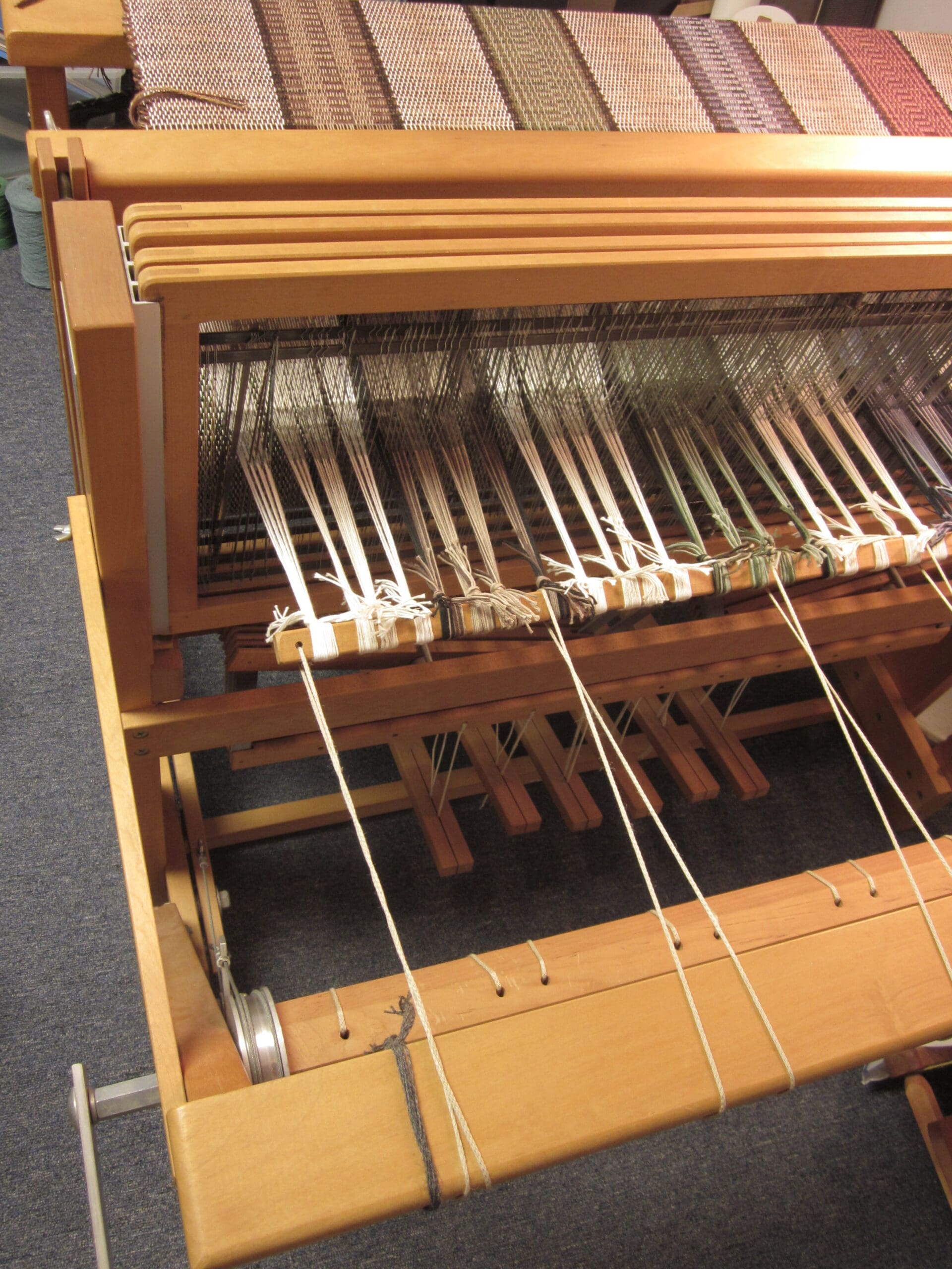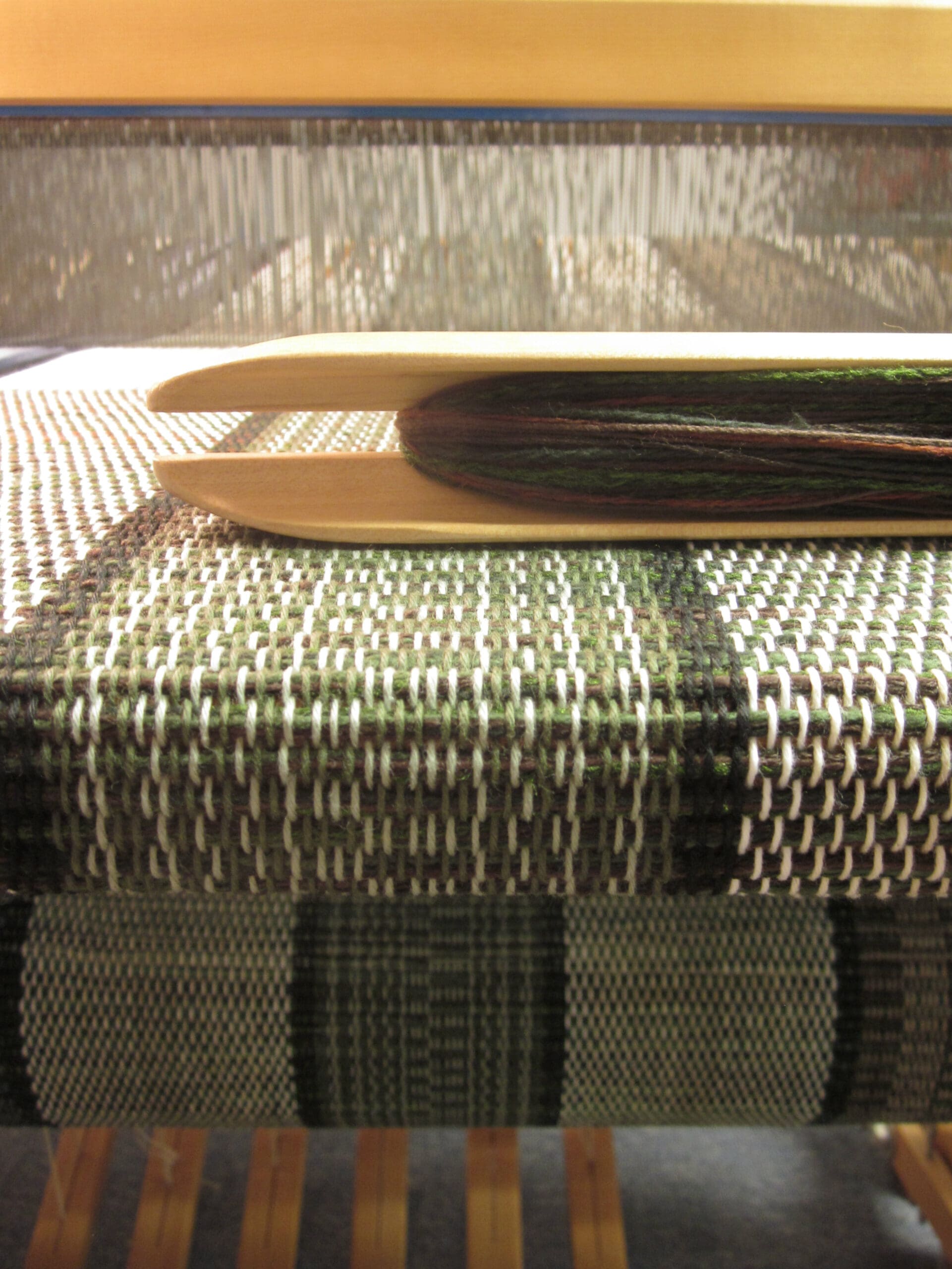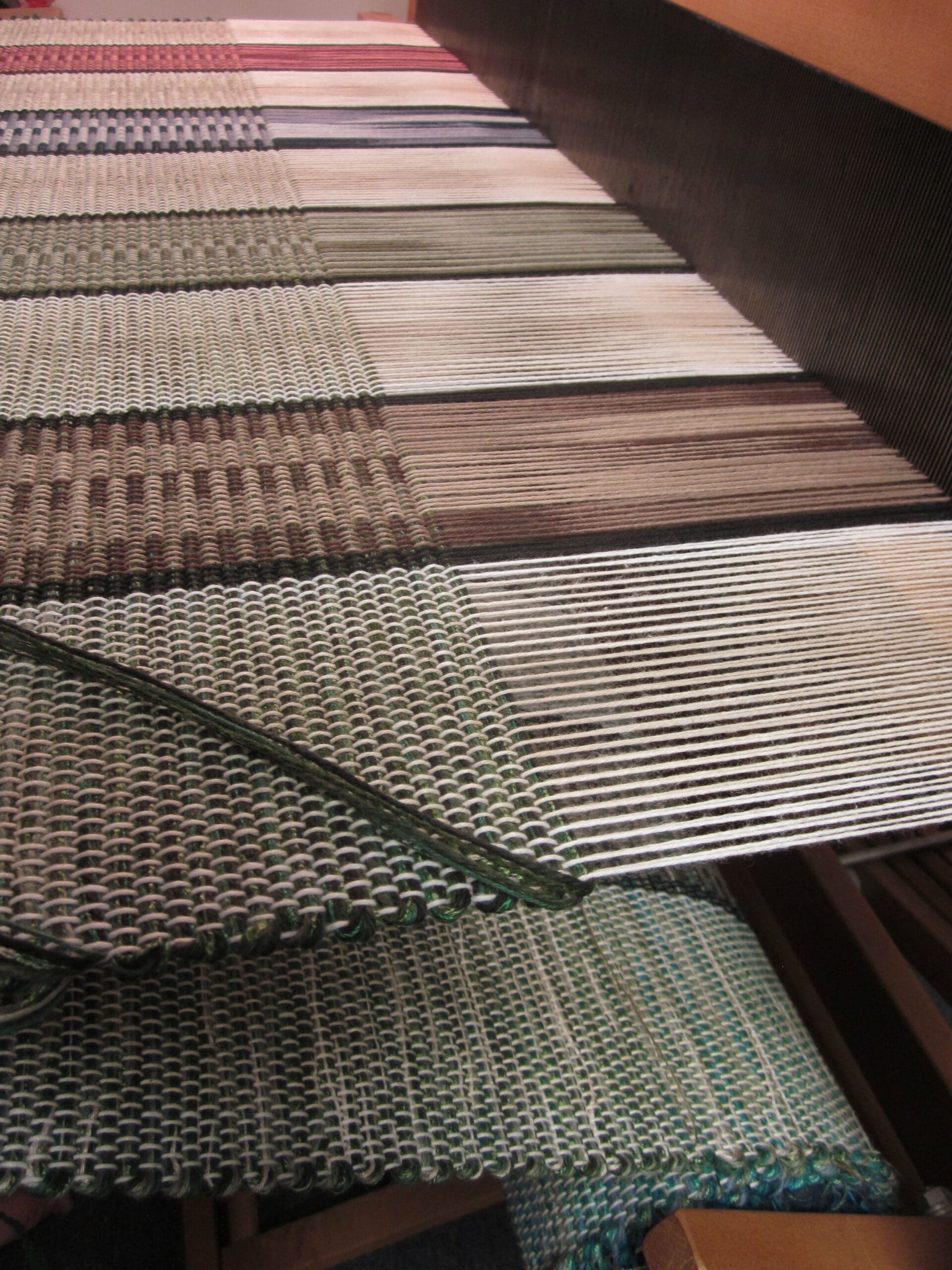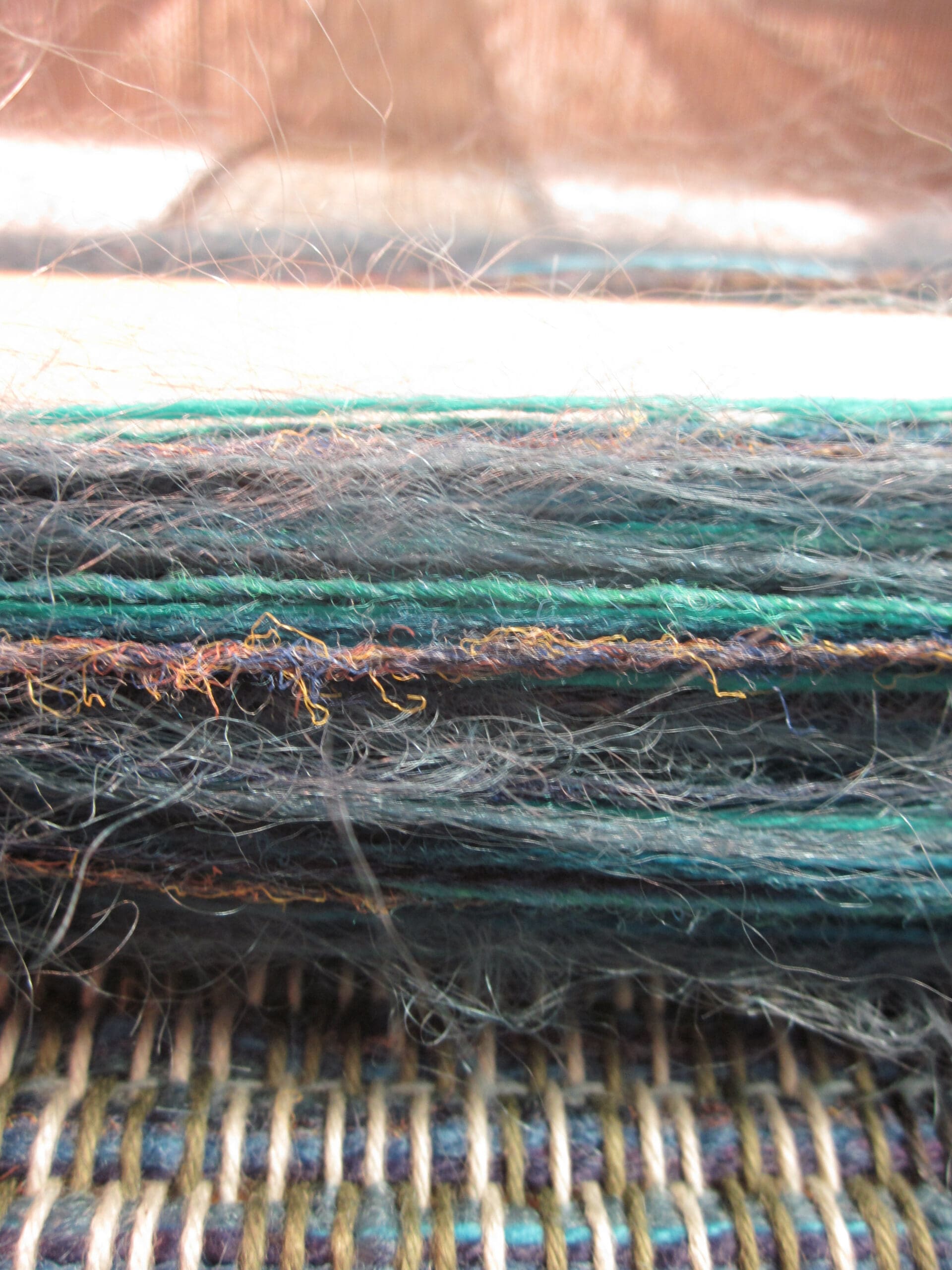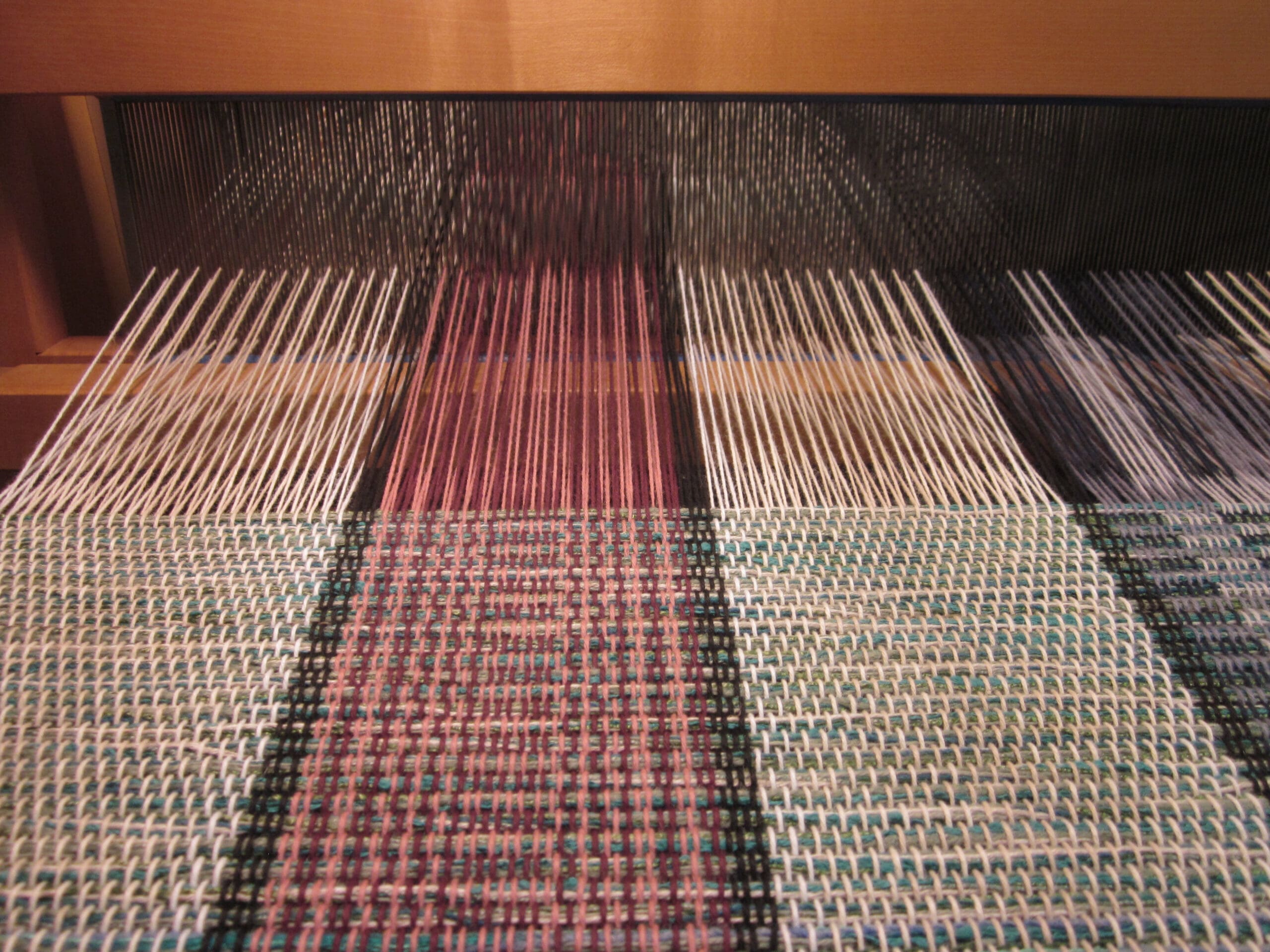 I’m always fascinated by the magic that happens when you blend the yarns in the shuttle with the yarns in the loom! Even after years of trying different combinations, I’m still happily surprised by the fabric that’s created when the two merge!