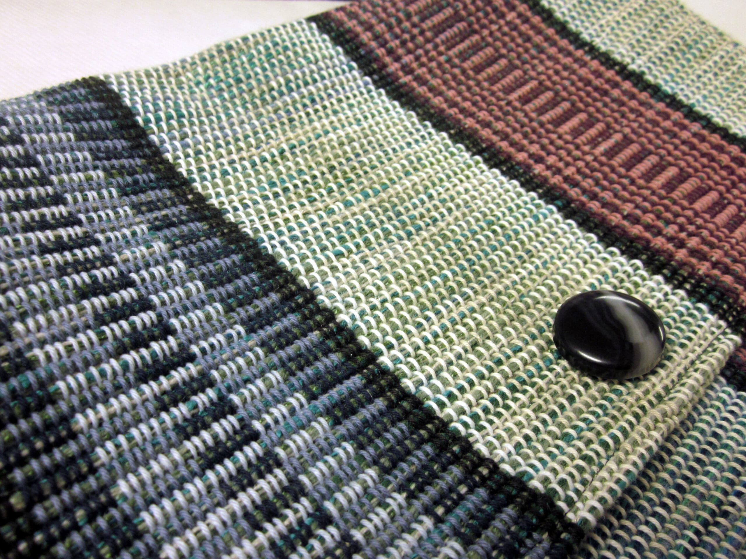 I have a wonderful contact who makes handcrafted, ceramic buttons. It’s great fun to see them paired with the handwoven fabric! Makes me so happy!
