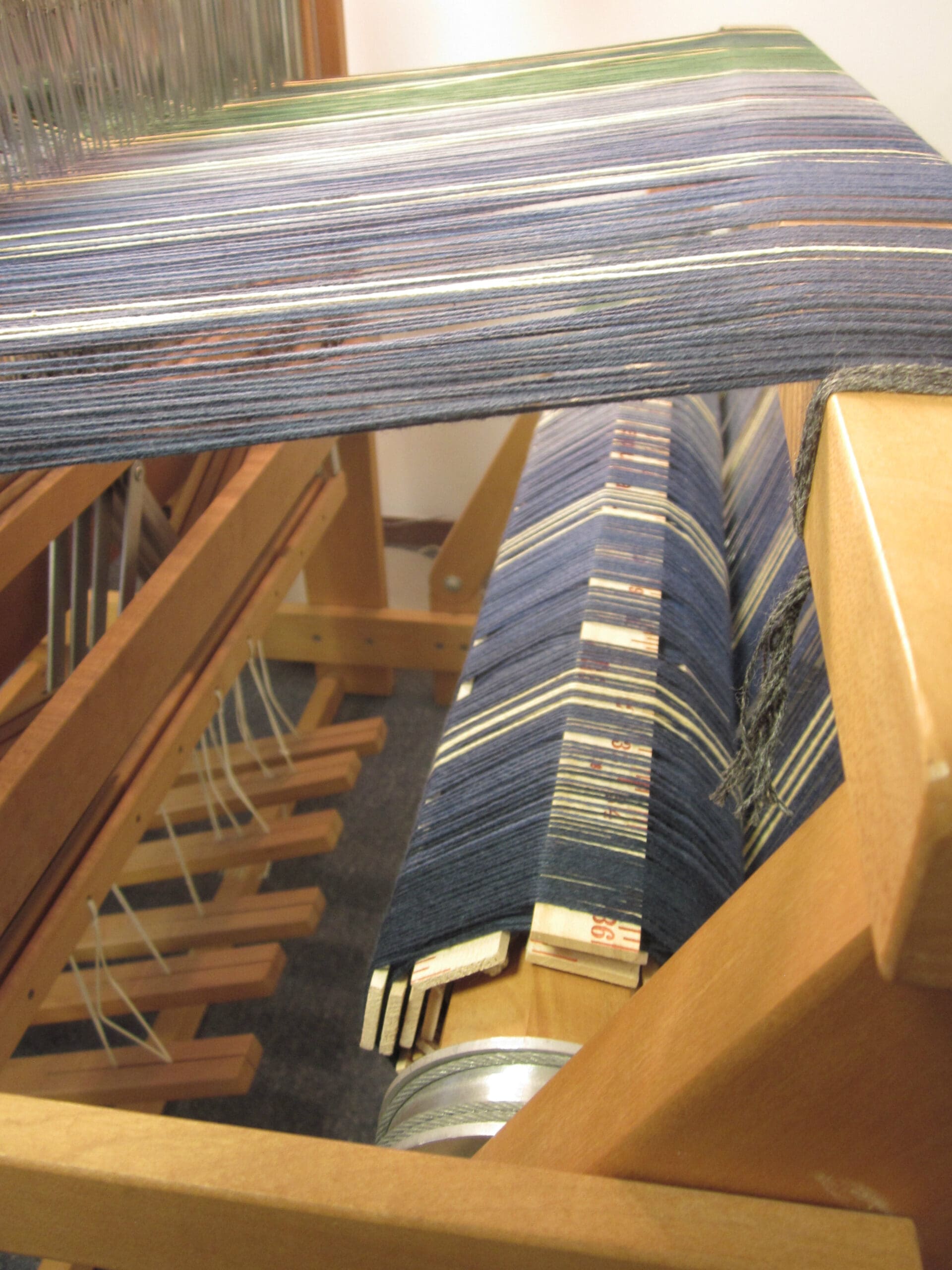Then, the rod comes over the beam and the yarns are tied to it! Now, the winding can commence!