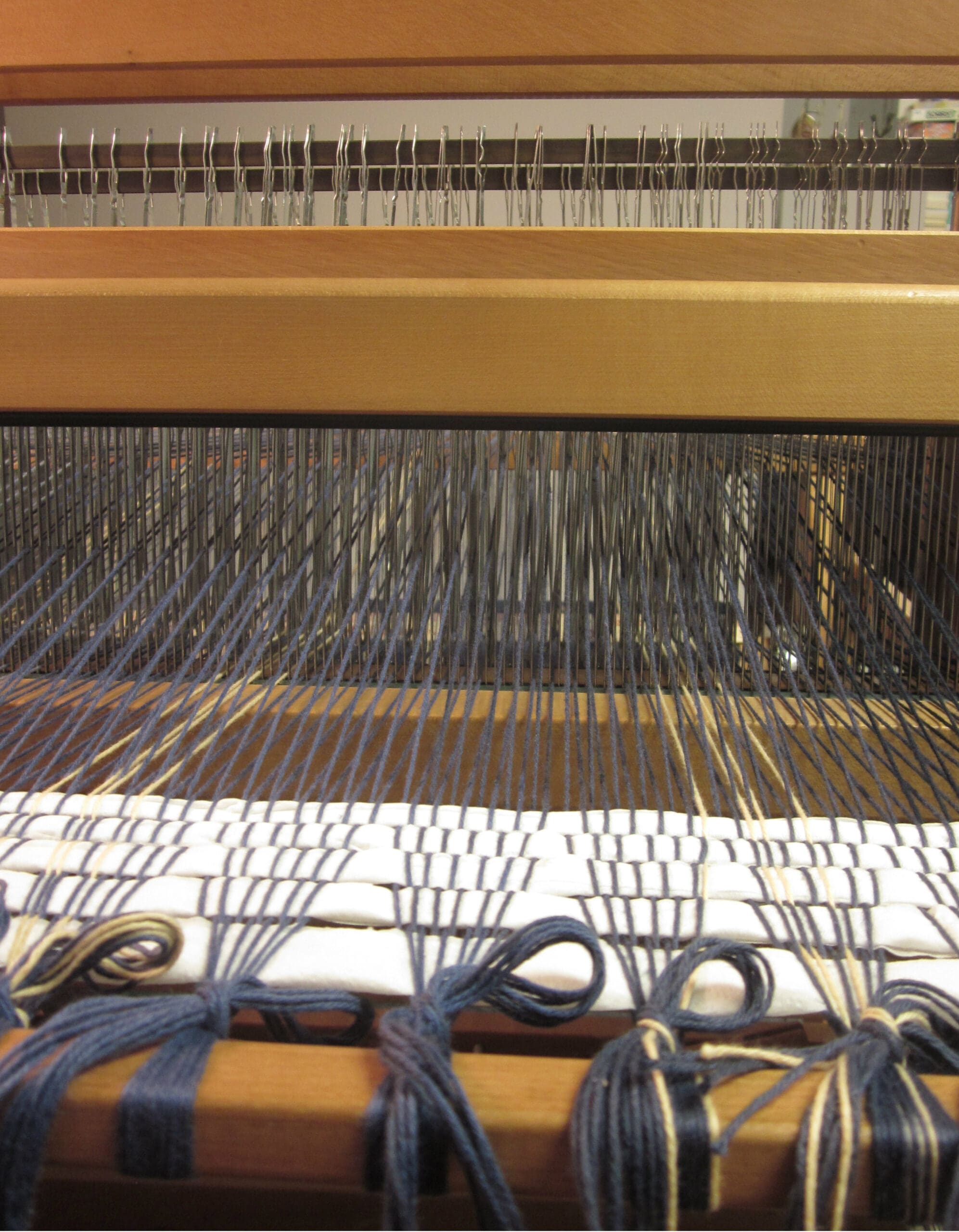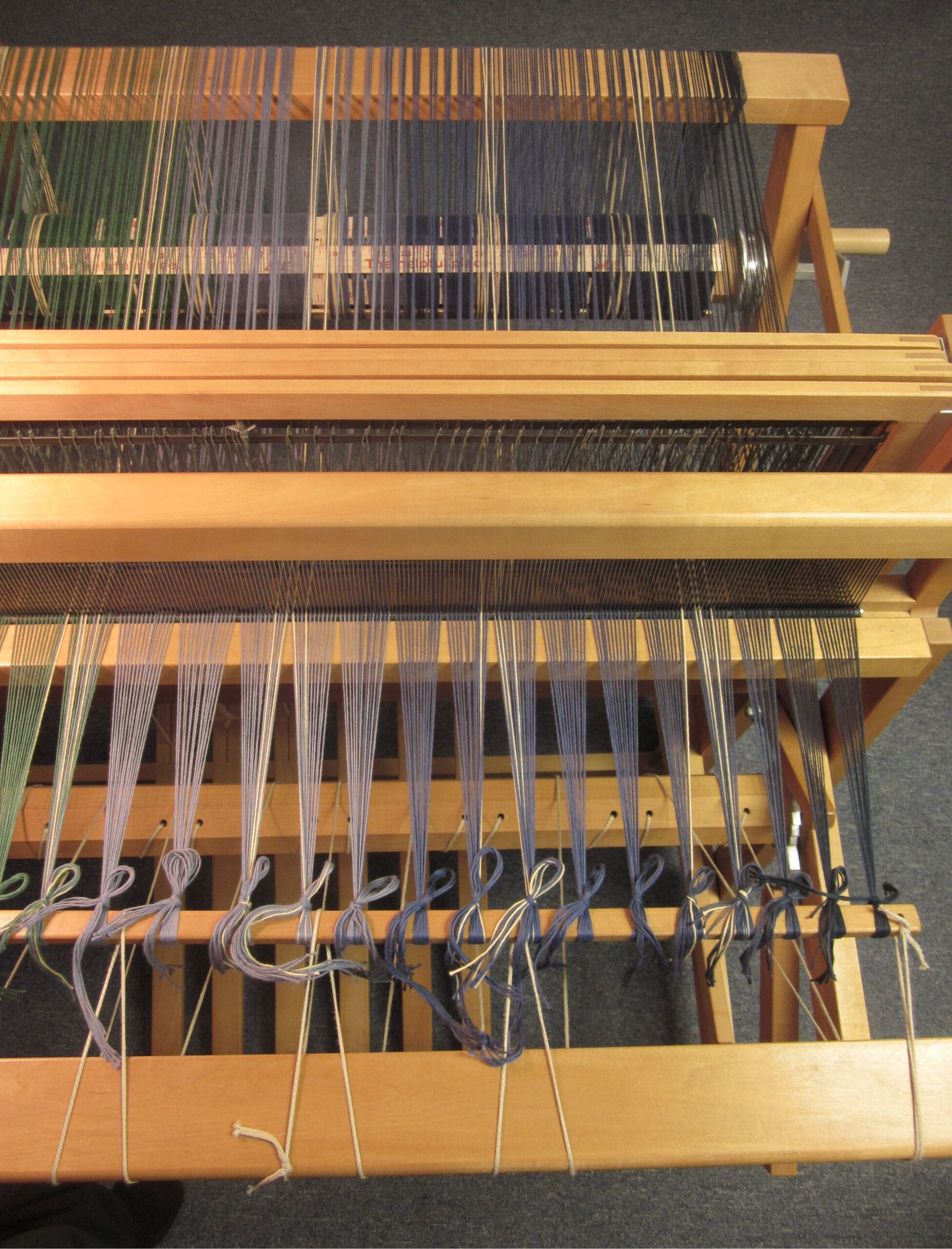When I last left you, the loom was nearly dressed! All that was left was tying a few knots! So, we are moving onward and upward to the good stuff!