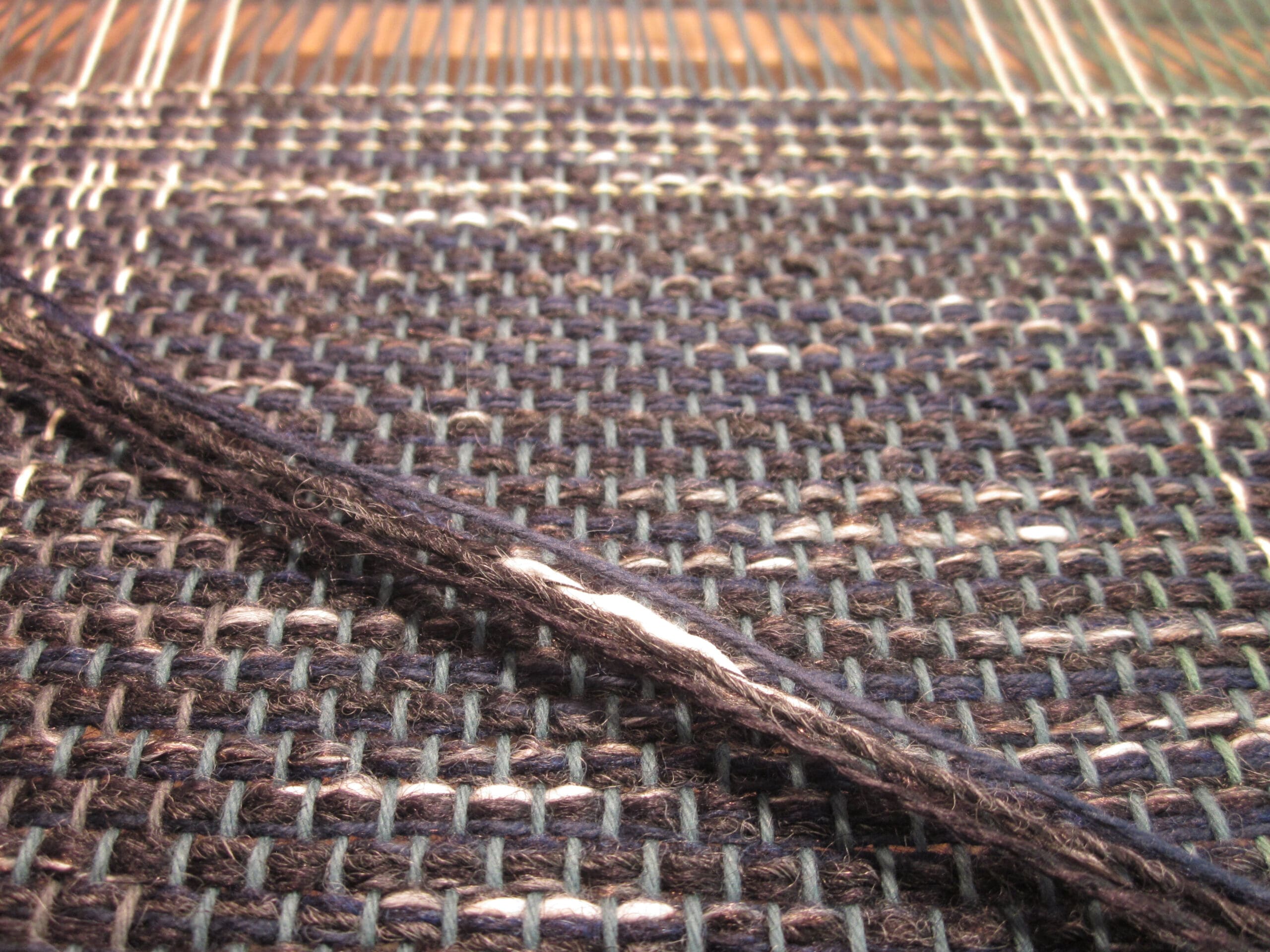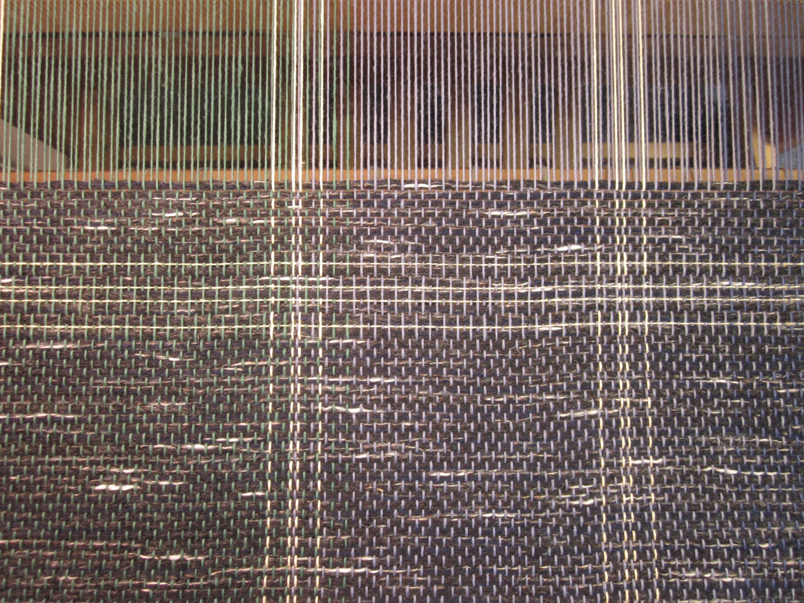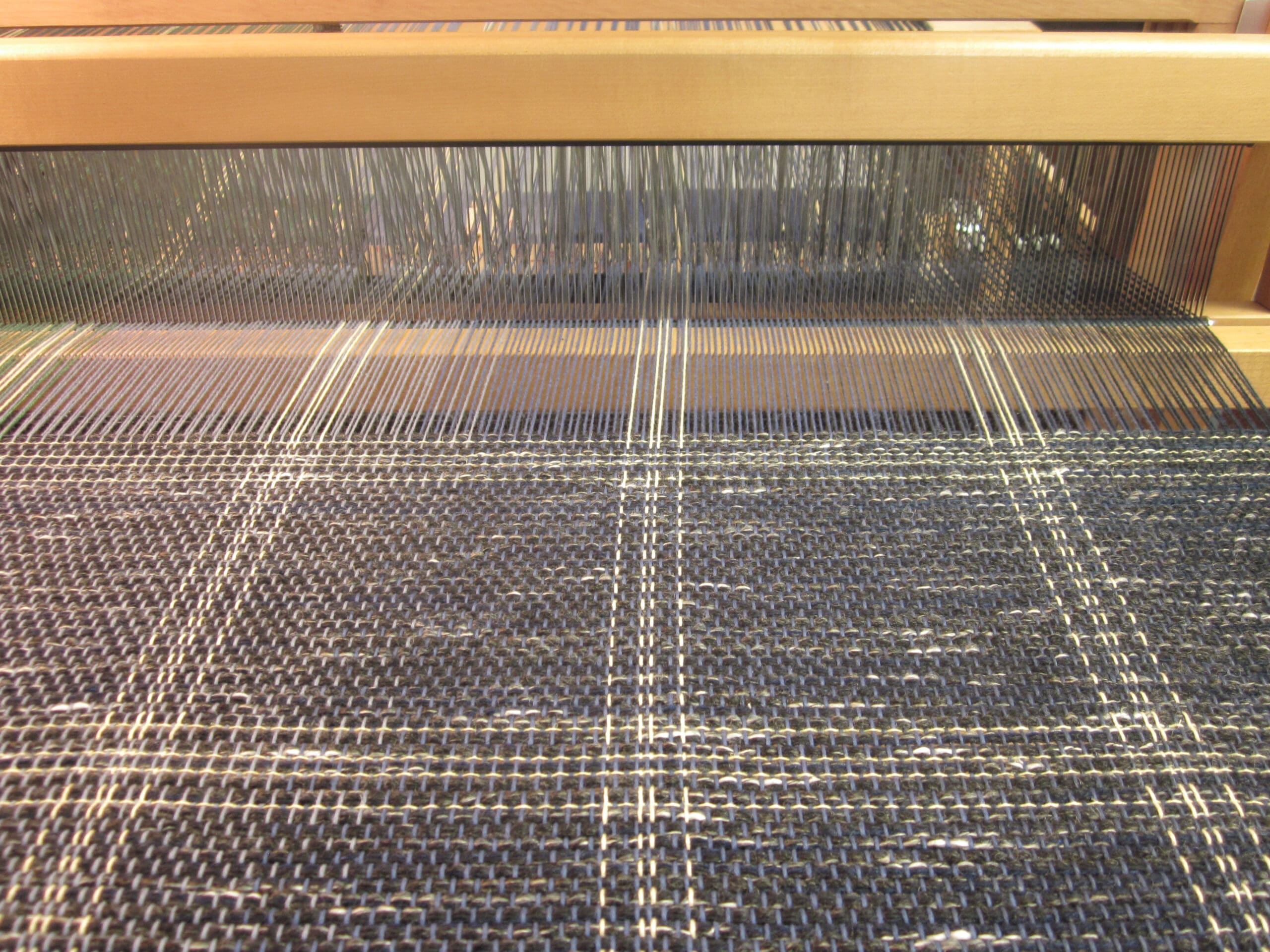 One of the design elements I want to add to the project is mimicking the spacing of the natural-colored yarns in the warp (yarns in the loom), into the fabric. So, about every 6″, I switch up my shuttles and throw a few light yarns to give it a little more character! And ultimately, it’s all about keeping me entertained. If the fabric looks great, it’s just a bonus!