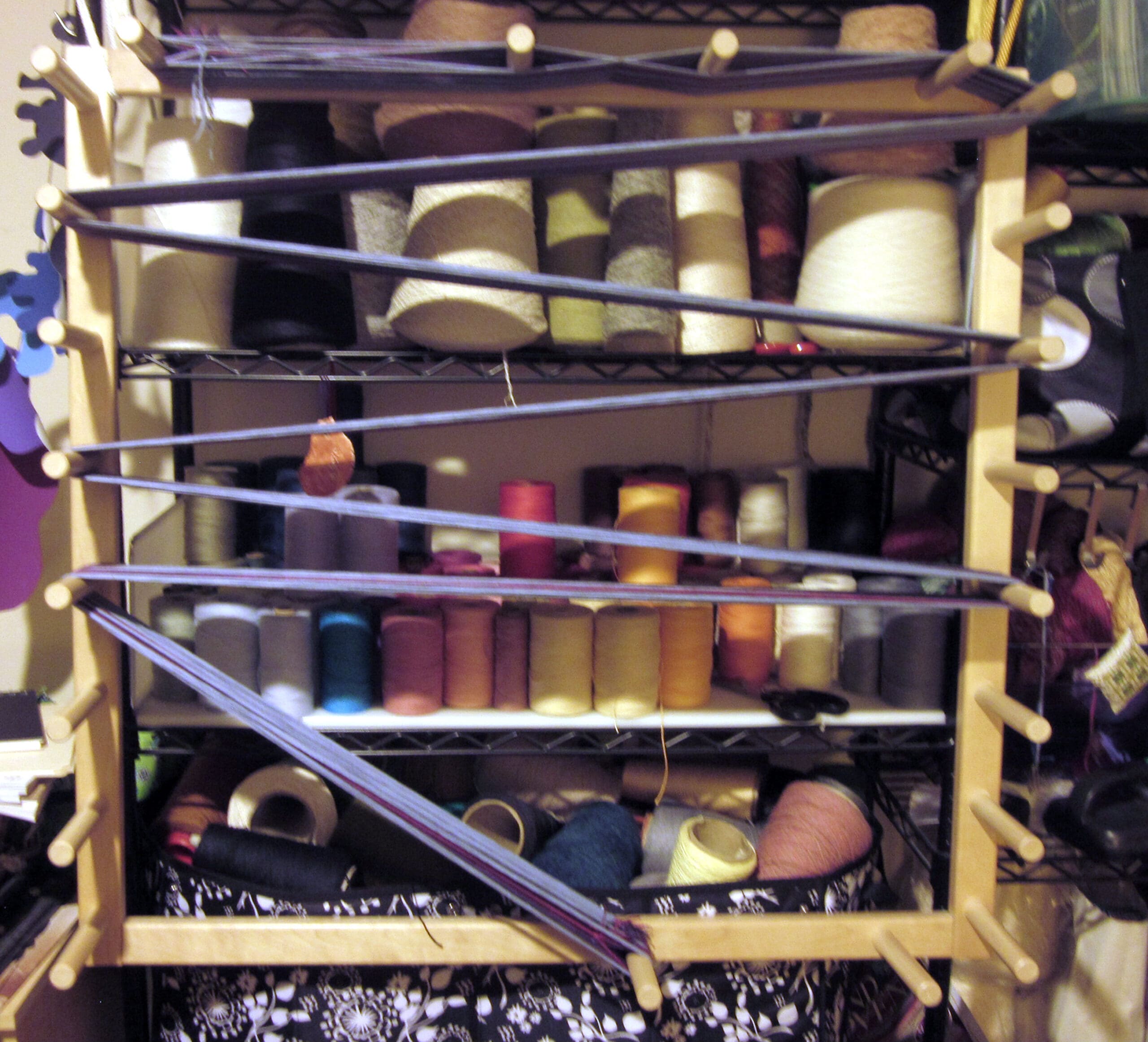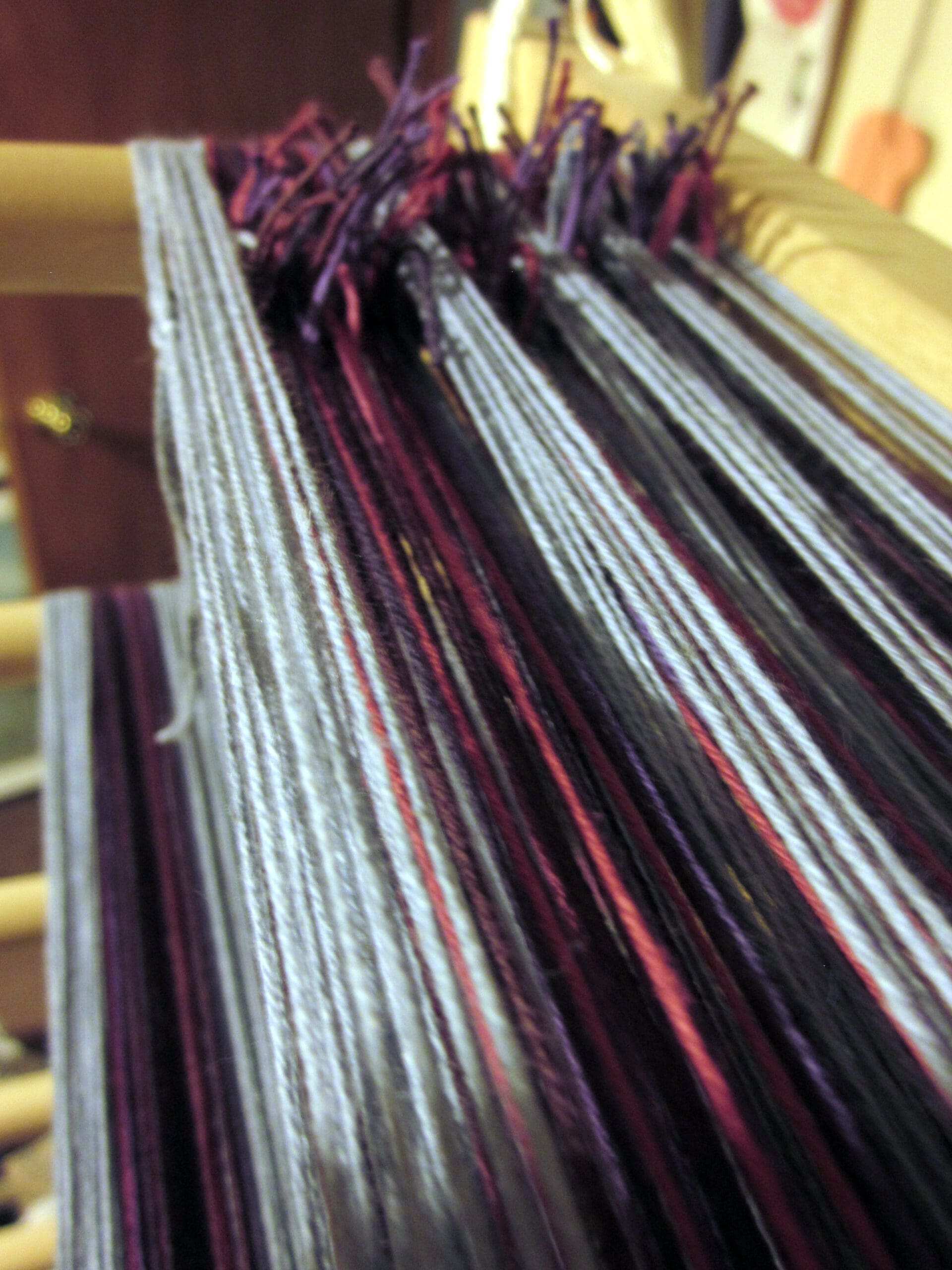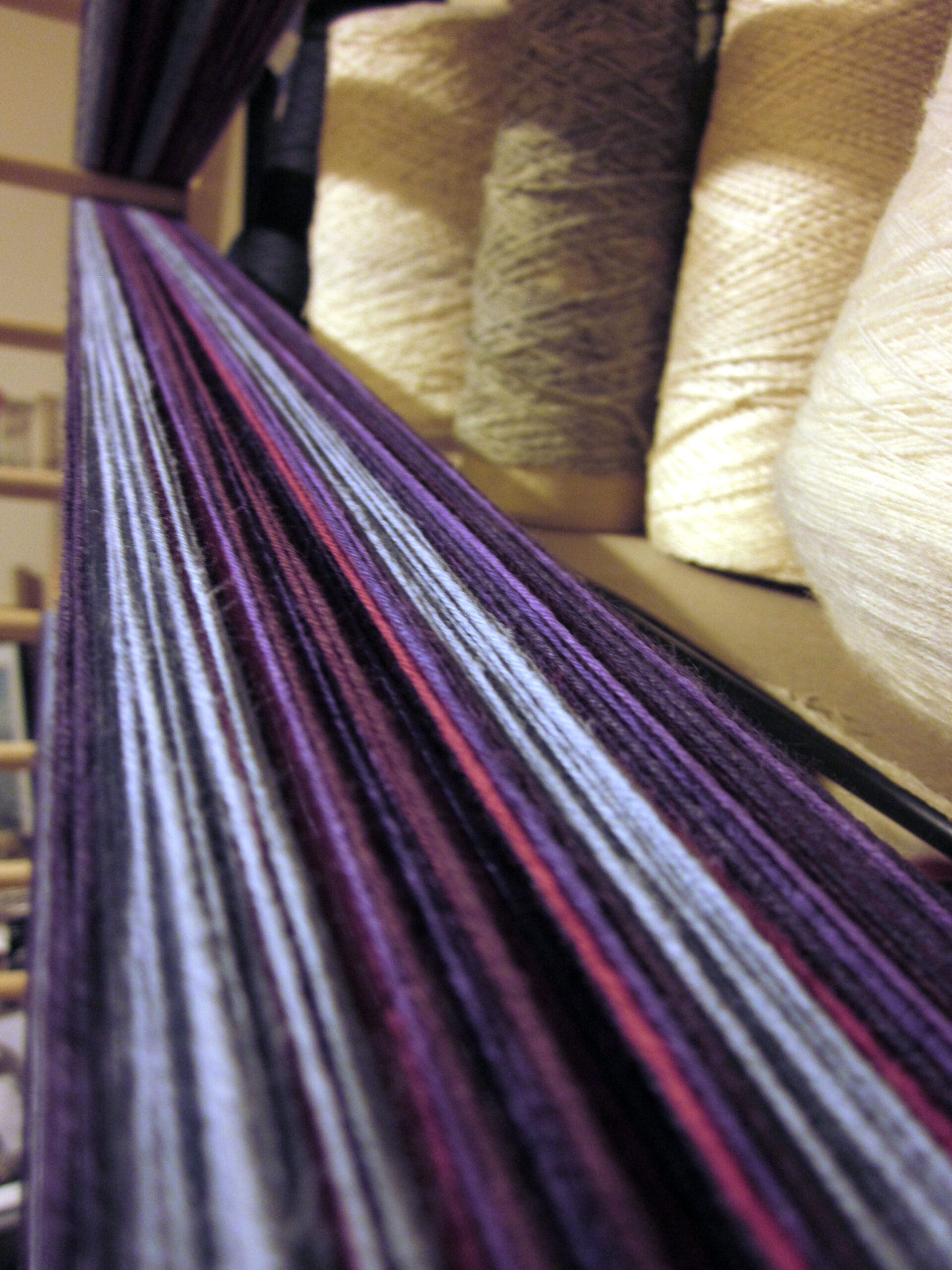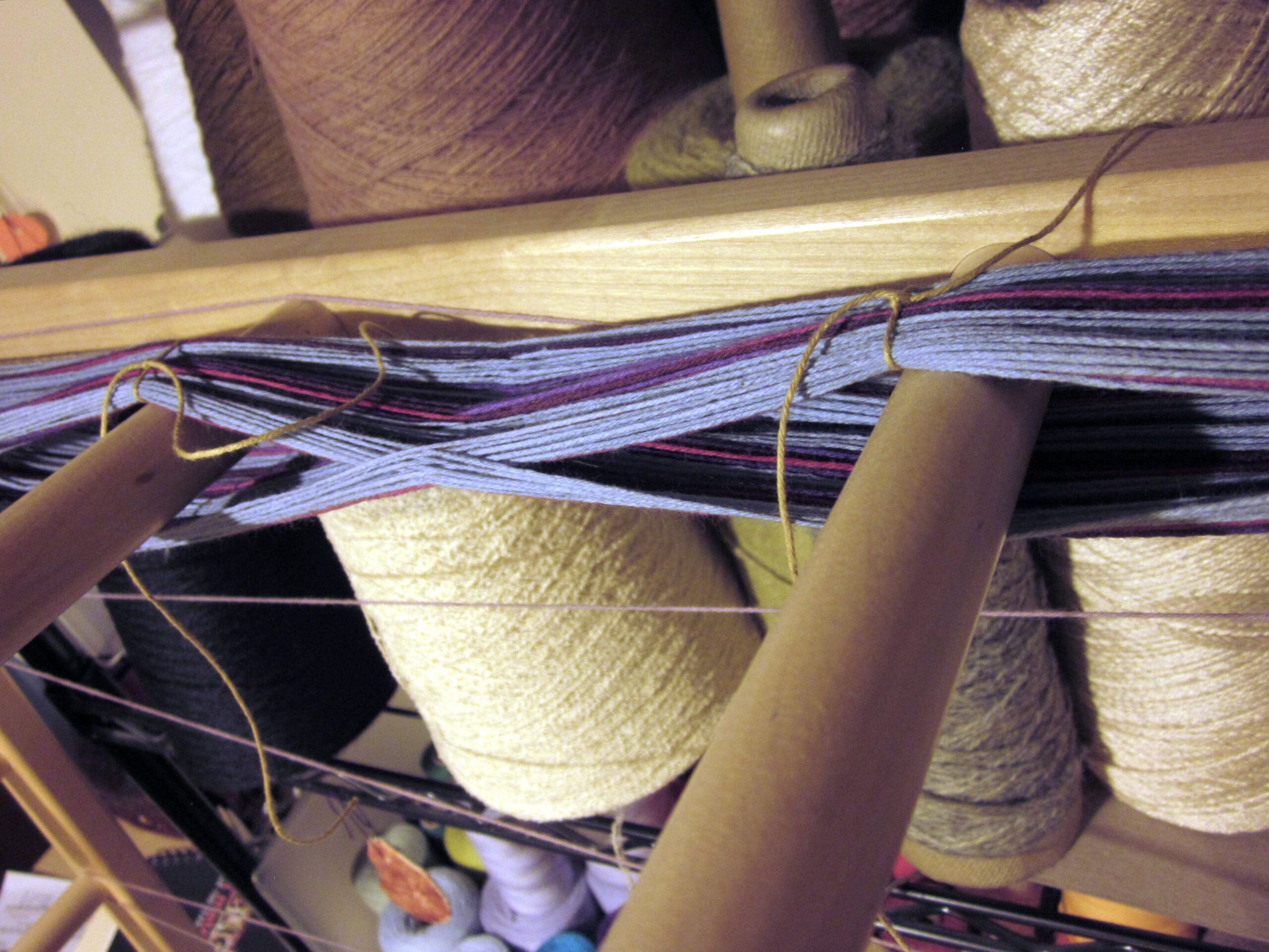 Ok, so I sort of butchered the title phrase! But, I think my version accurately applies to the next project! In the past, I’ve created fabric using traditional yarns in the shuttle, and I’ve created fabric using recycled materials – specifically men’s neckties. What if there was something in between? A hybrid, if you will! Let’s see what that might look like! First up, creating a warp!