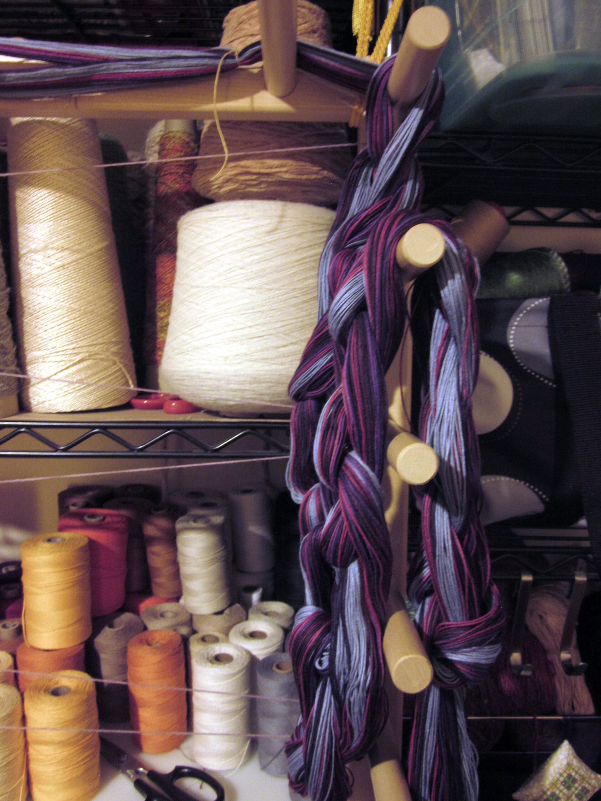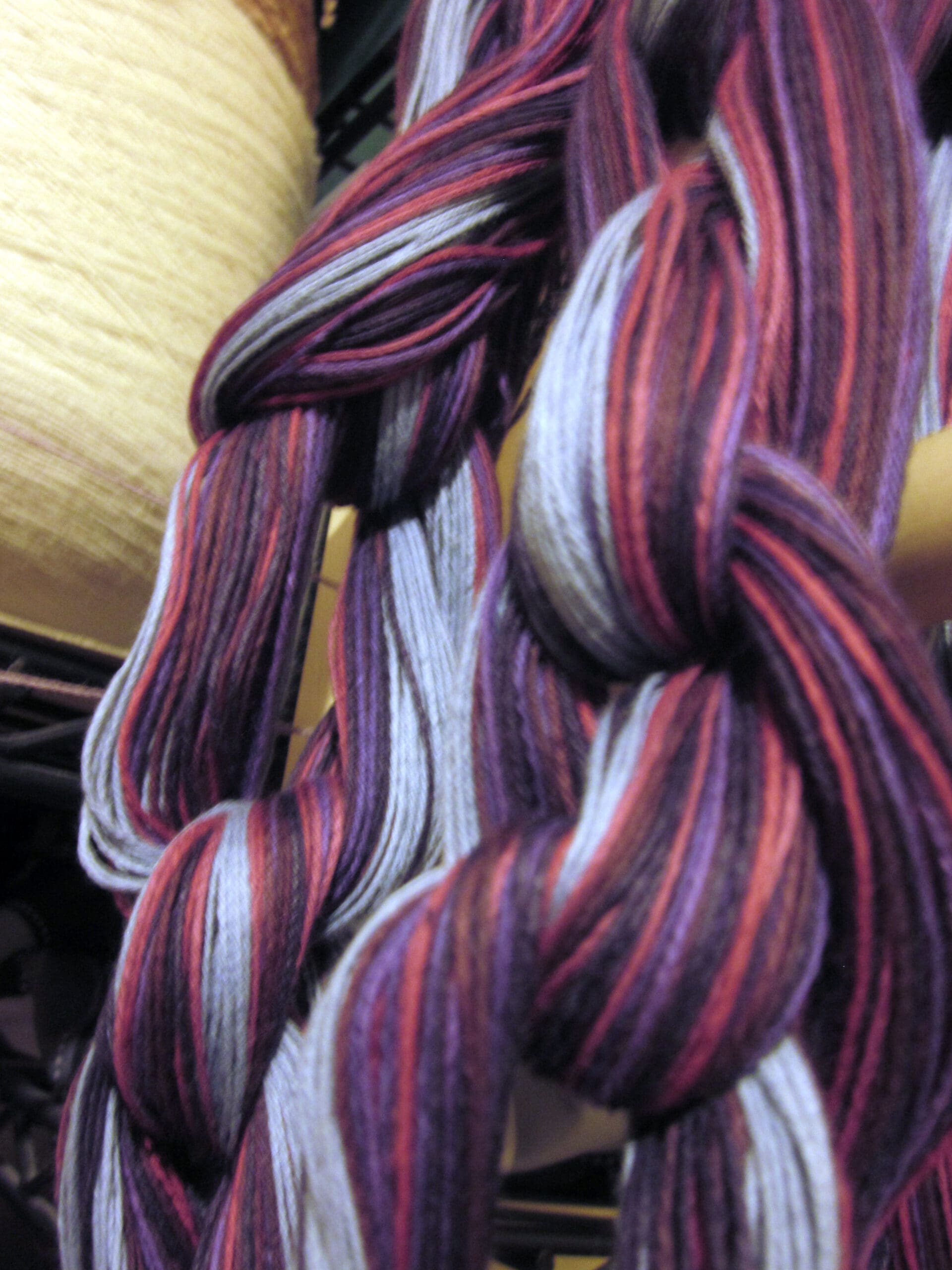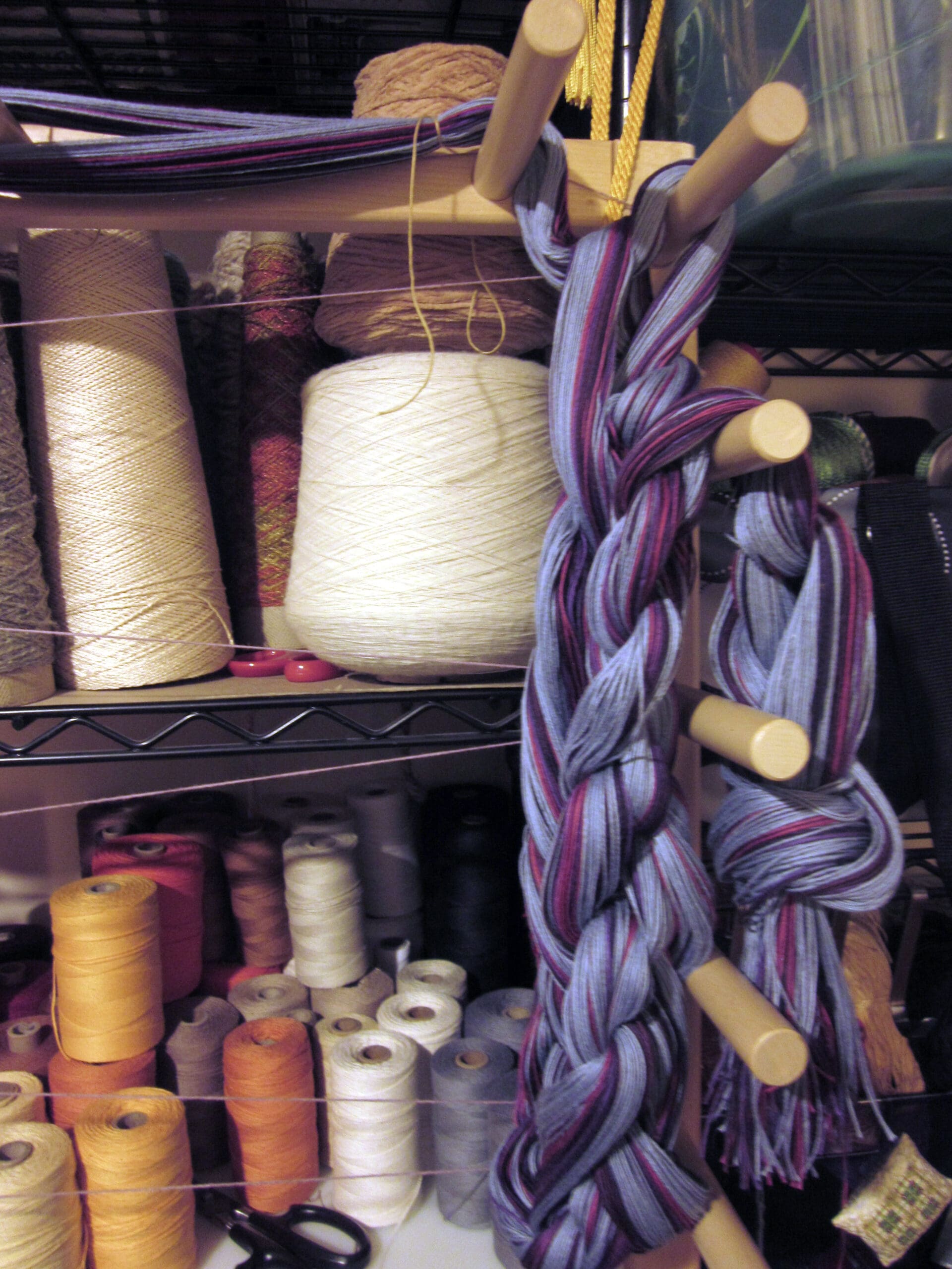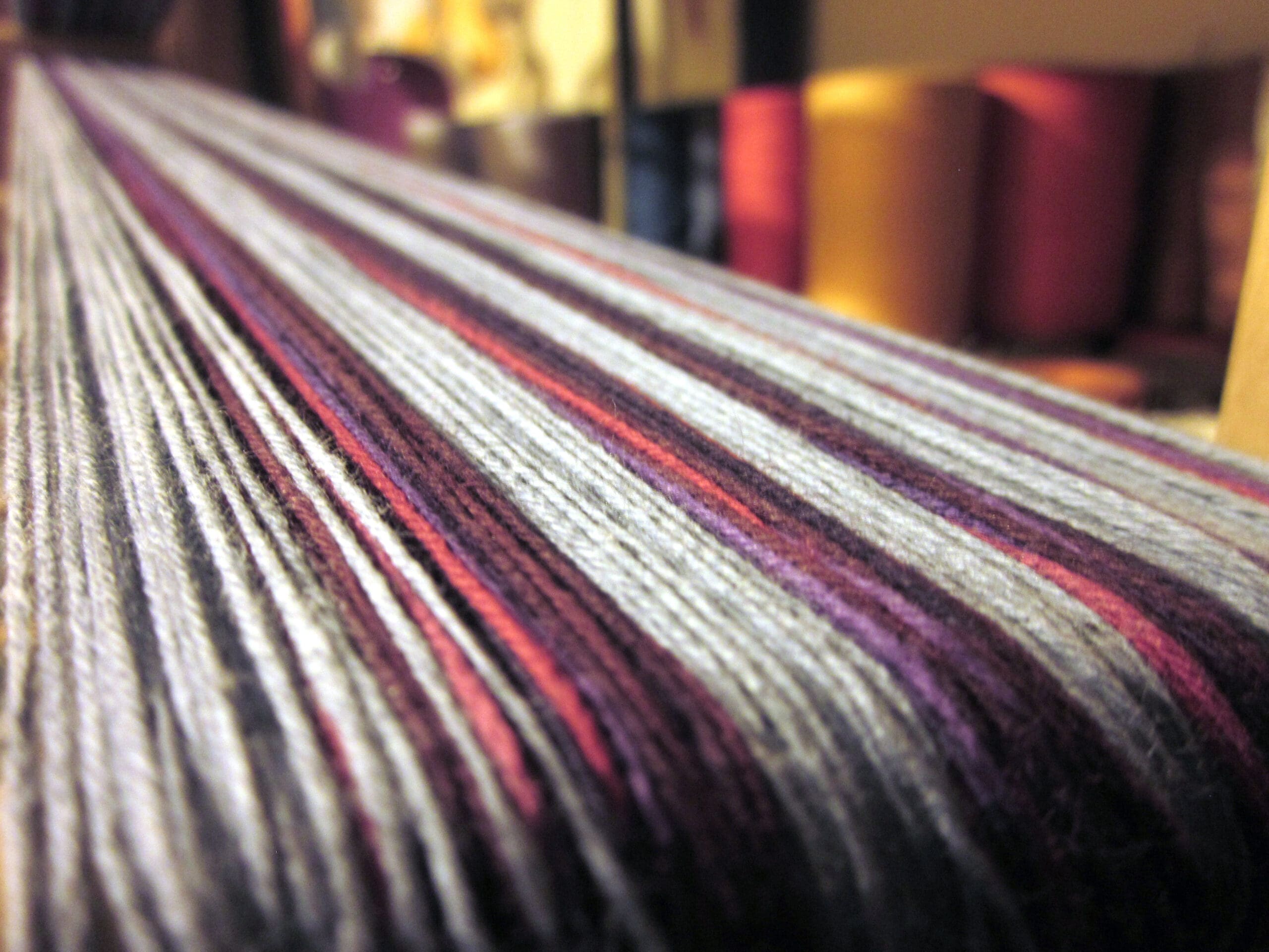 Ok, so I sort of butchered the title phrase! But, I think my version accurately applies to the next project! In the past, I’ve created fabric using traditional yarns in the shuttle, and I’ve created fabric using recycled materials – specifically men’s neckties. What if there was something in between? A hybrid, if you will! Let’s see what that might look like! First up, creating a warp!
