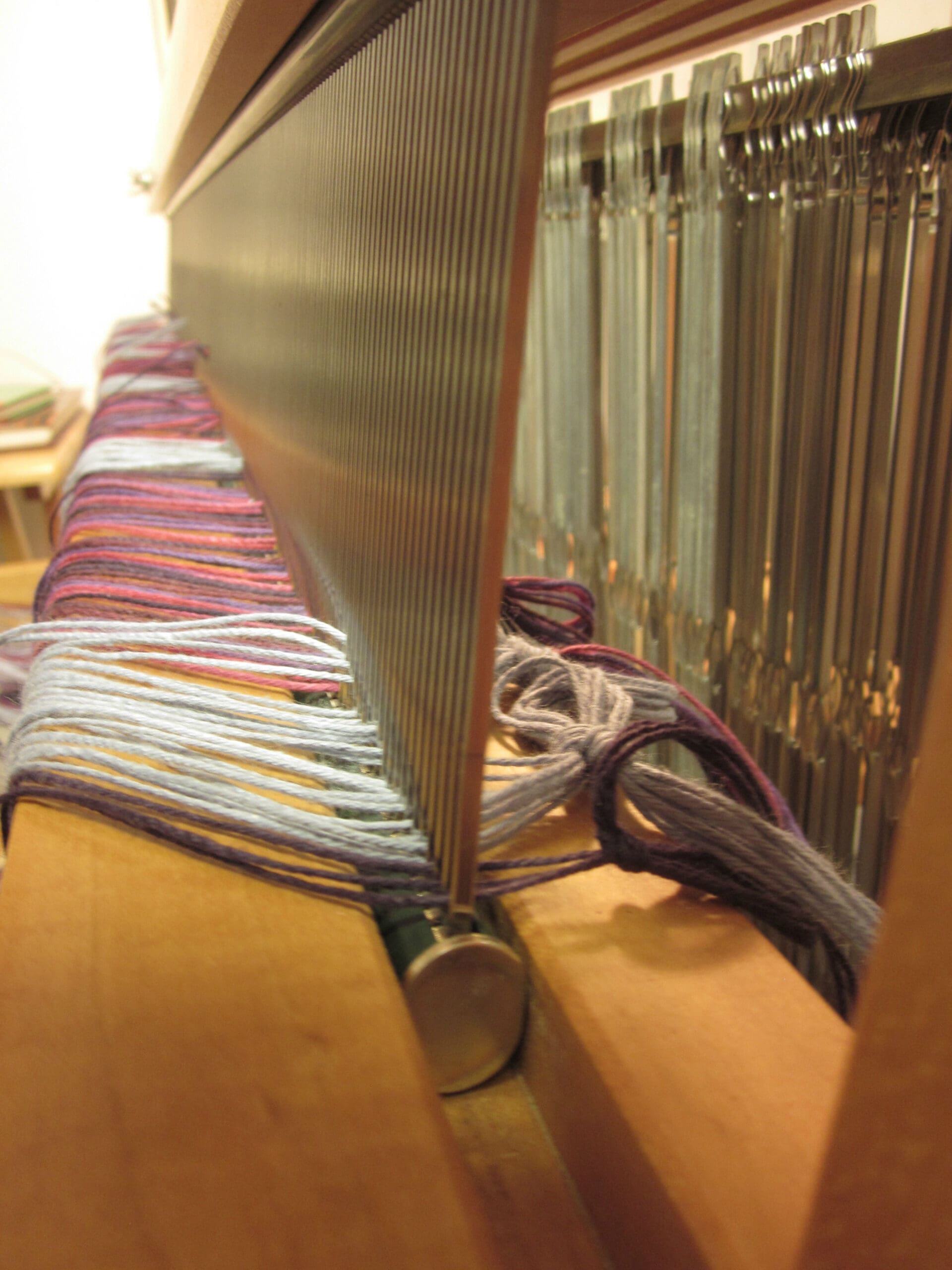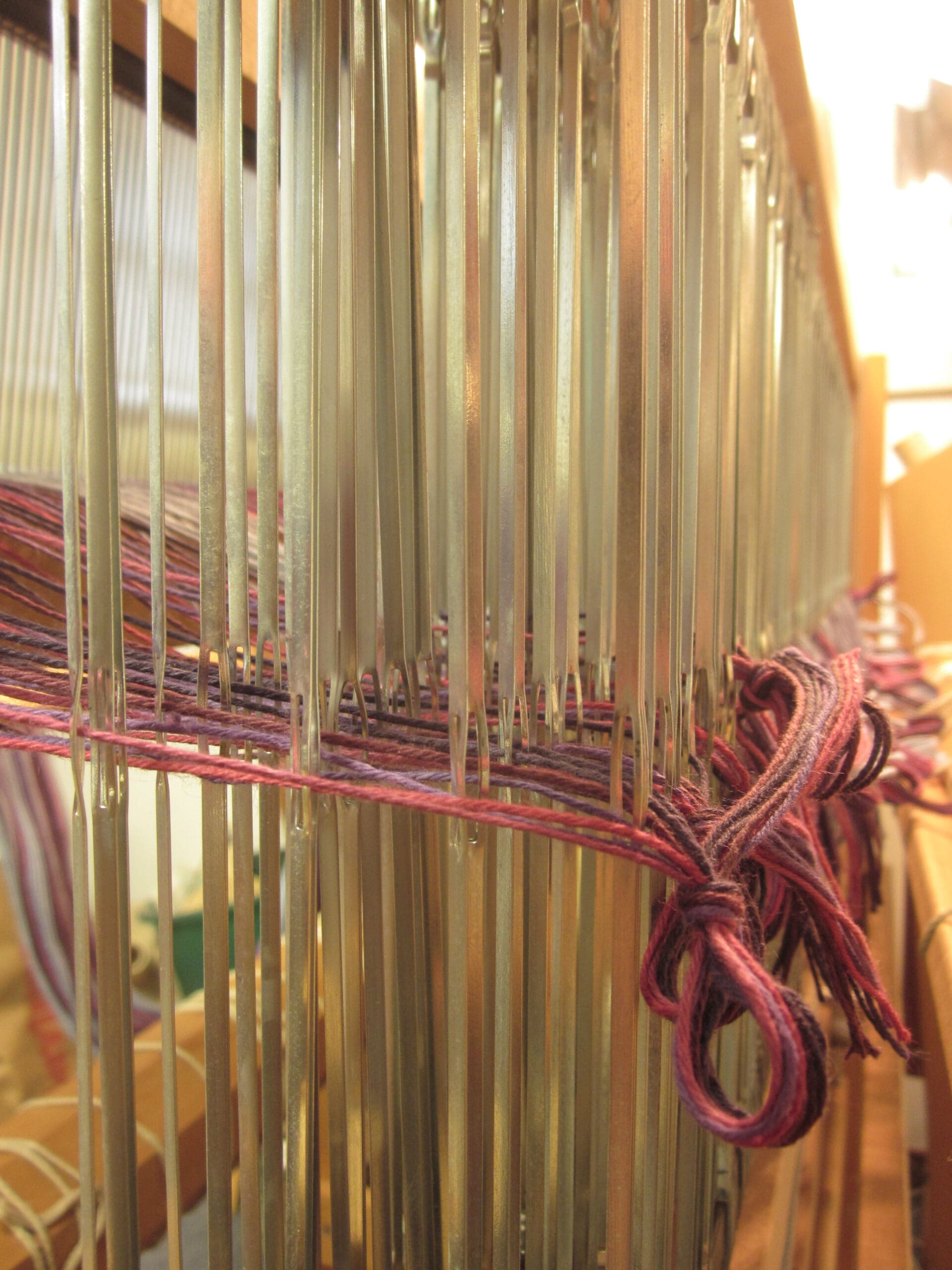 The heddles are threaded – woohoo! All that’s left is to wind the project onto the loom, and then there will be weaving! Lots and lots of weaving!!! Hang tight for all the fun to come! Talk to you soon…