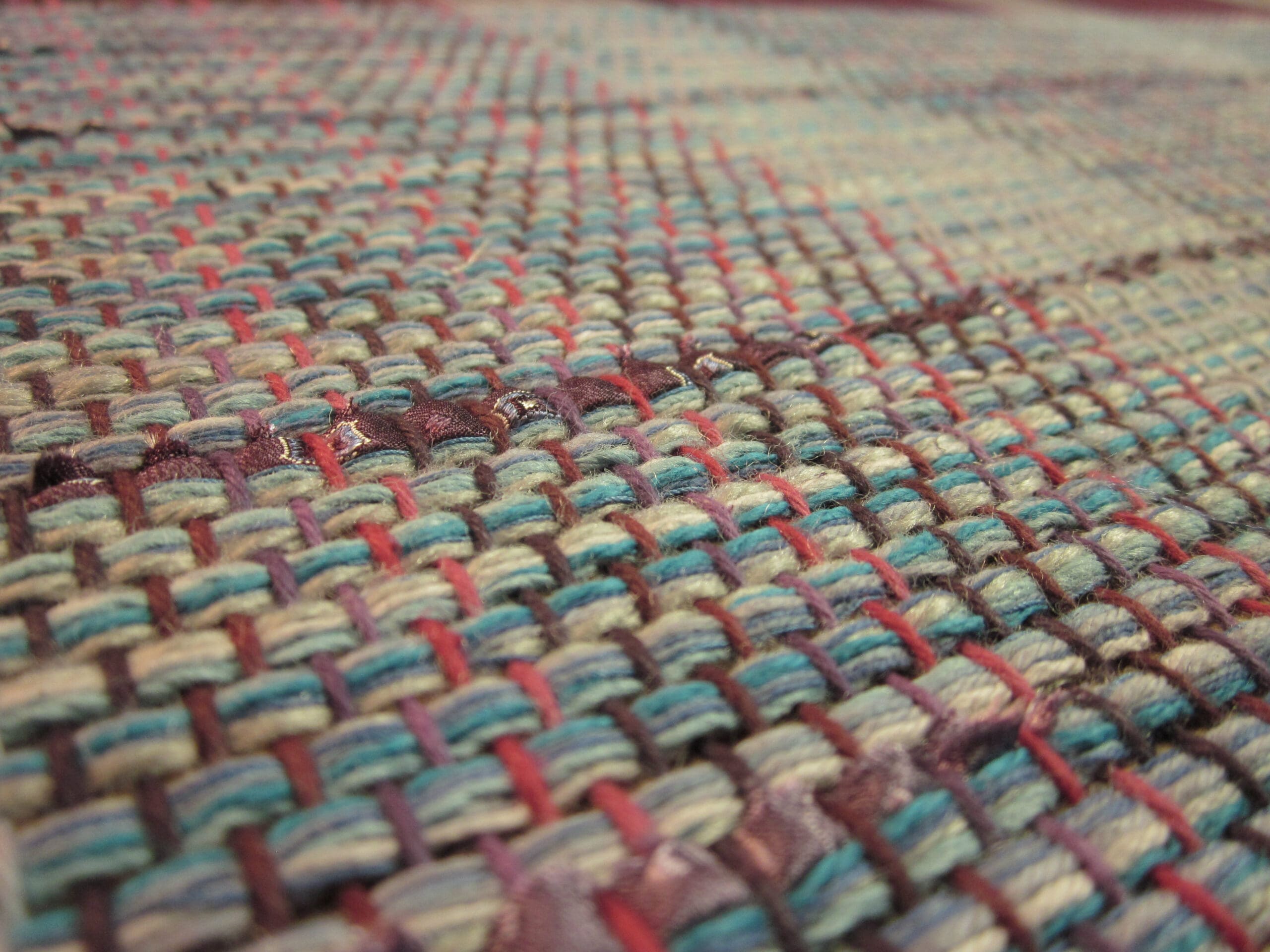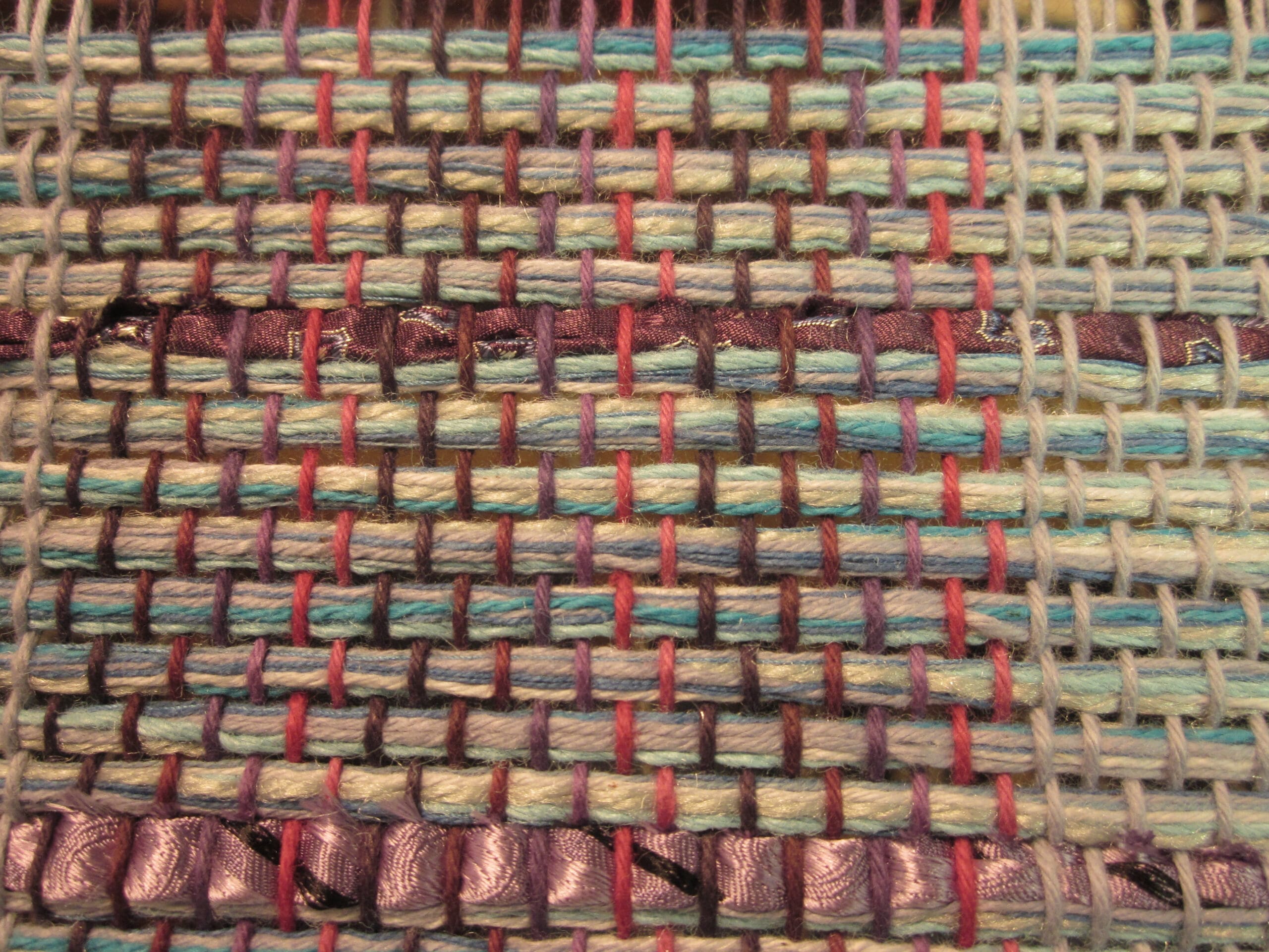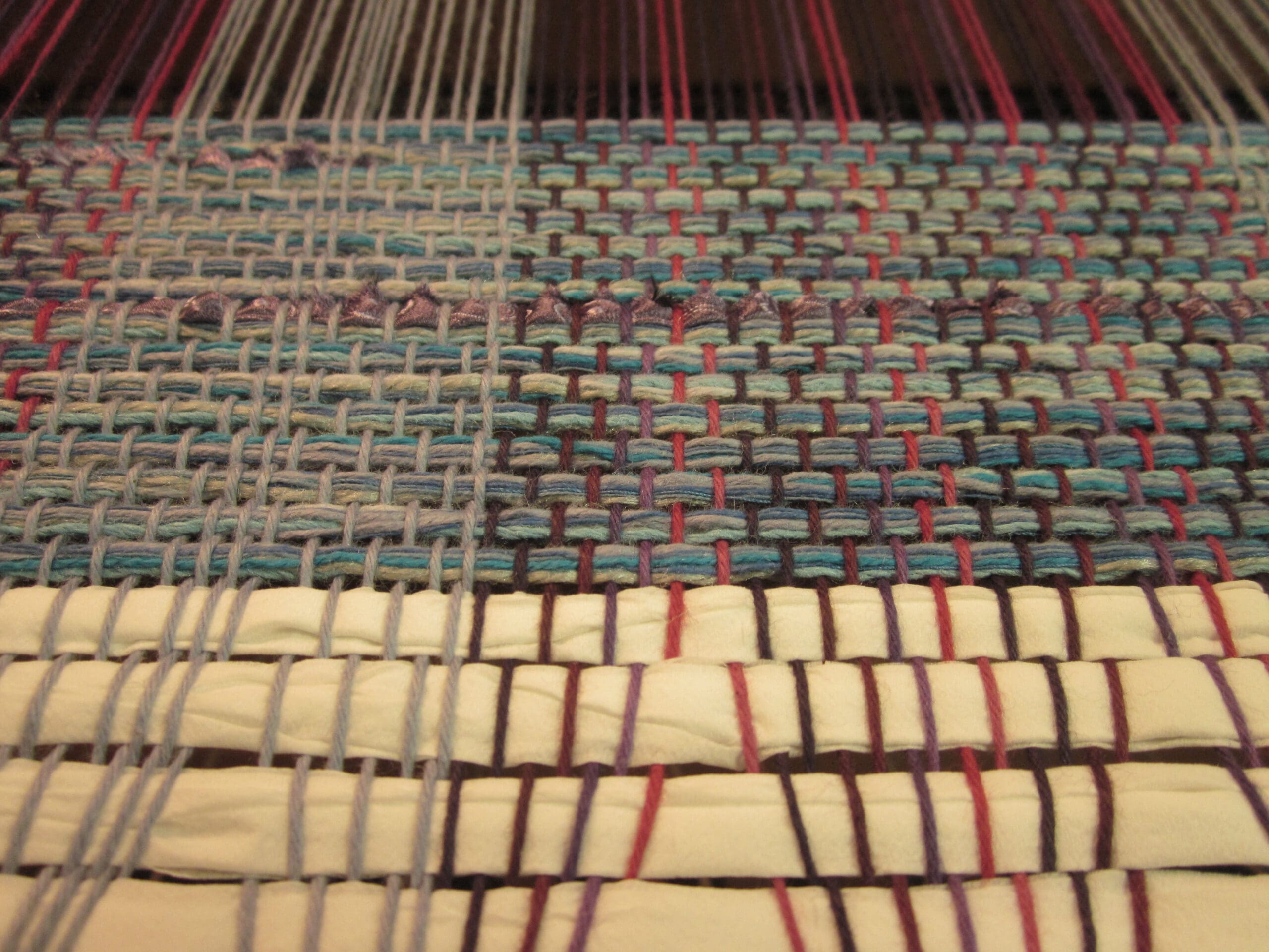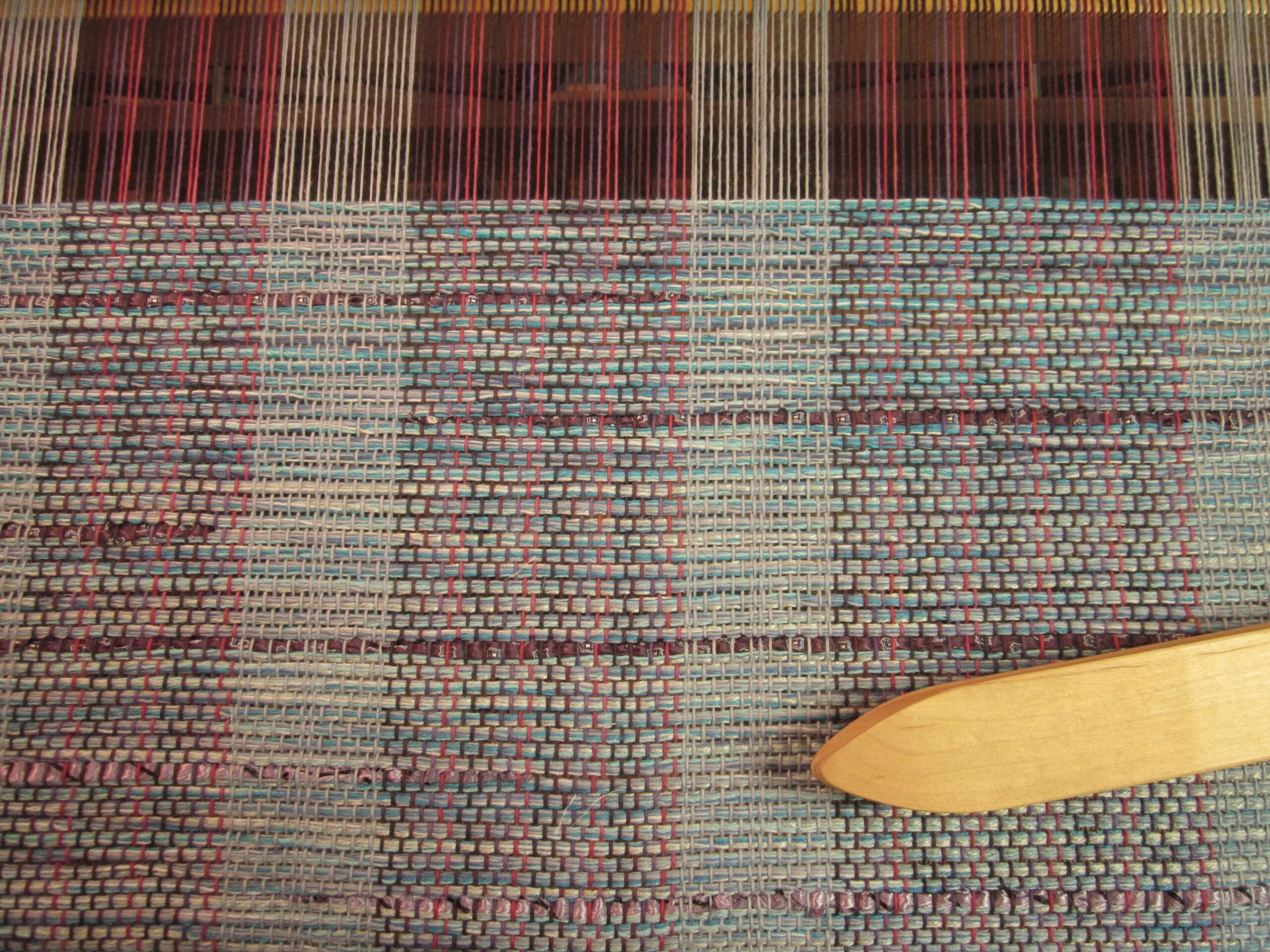 I’ve decided to use recycled neckties as a design element in the fabric – partly because I like the look, and partly because to create fabric solely using ties takes a really long time! I’ve done it, and believe me when I say it’s not quick! So, my solution is to create a hybrid. Use a traditionally woven base and sprinkle in some cool, recycled materials to add a little flair! We’ll see how it goes. Keep your fingers crossed for me…