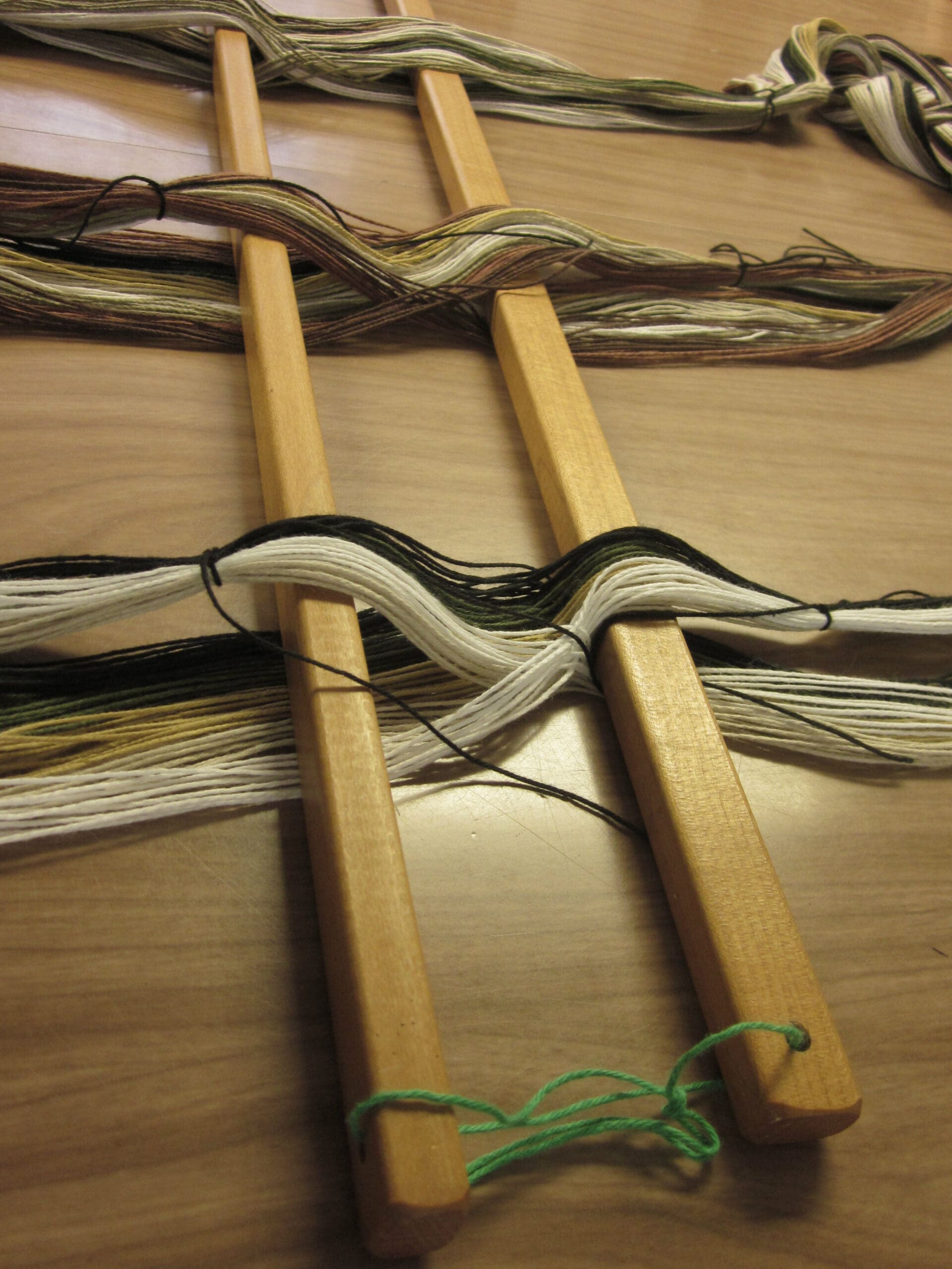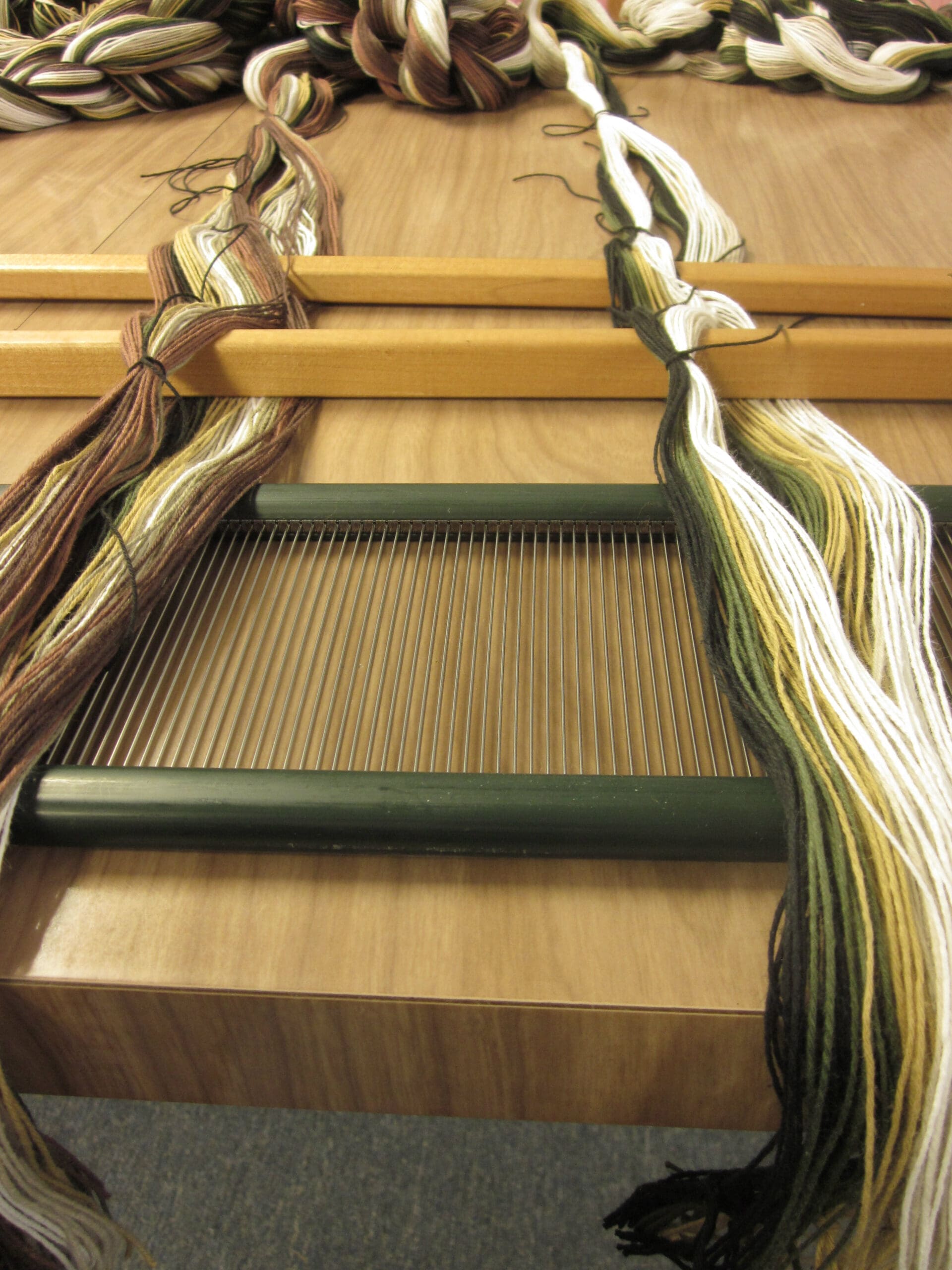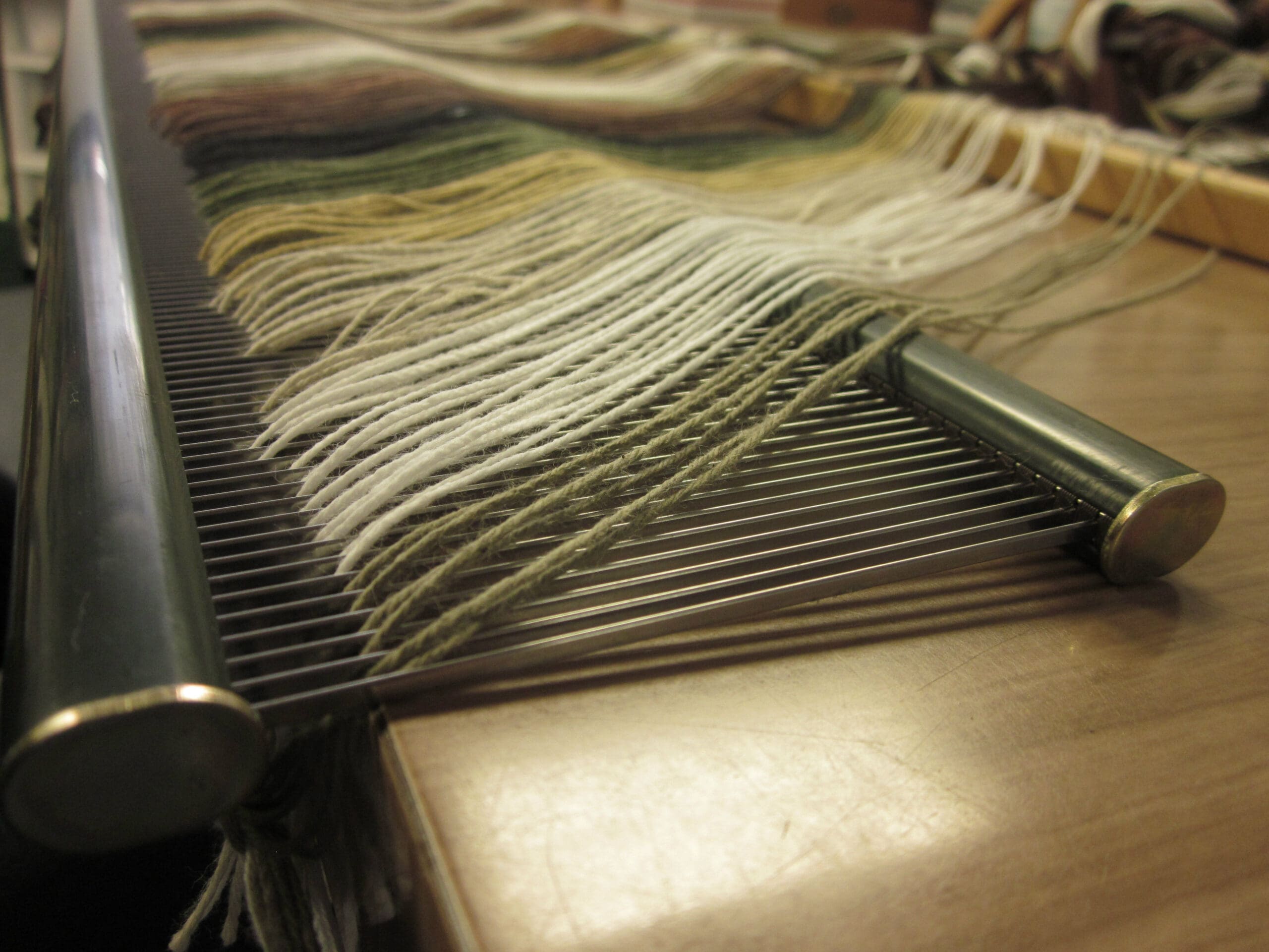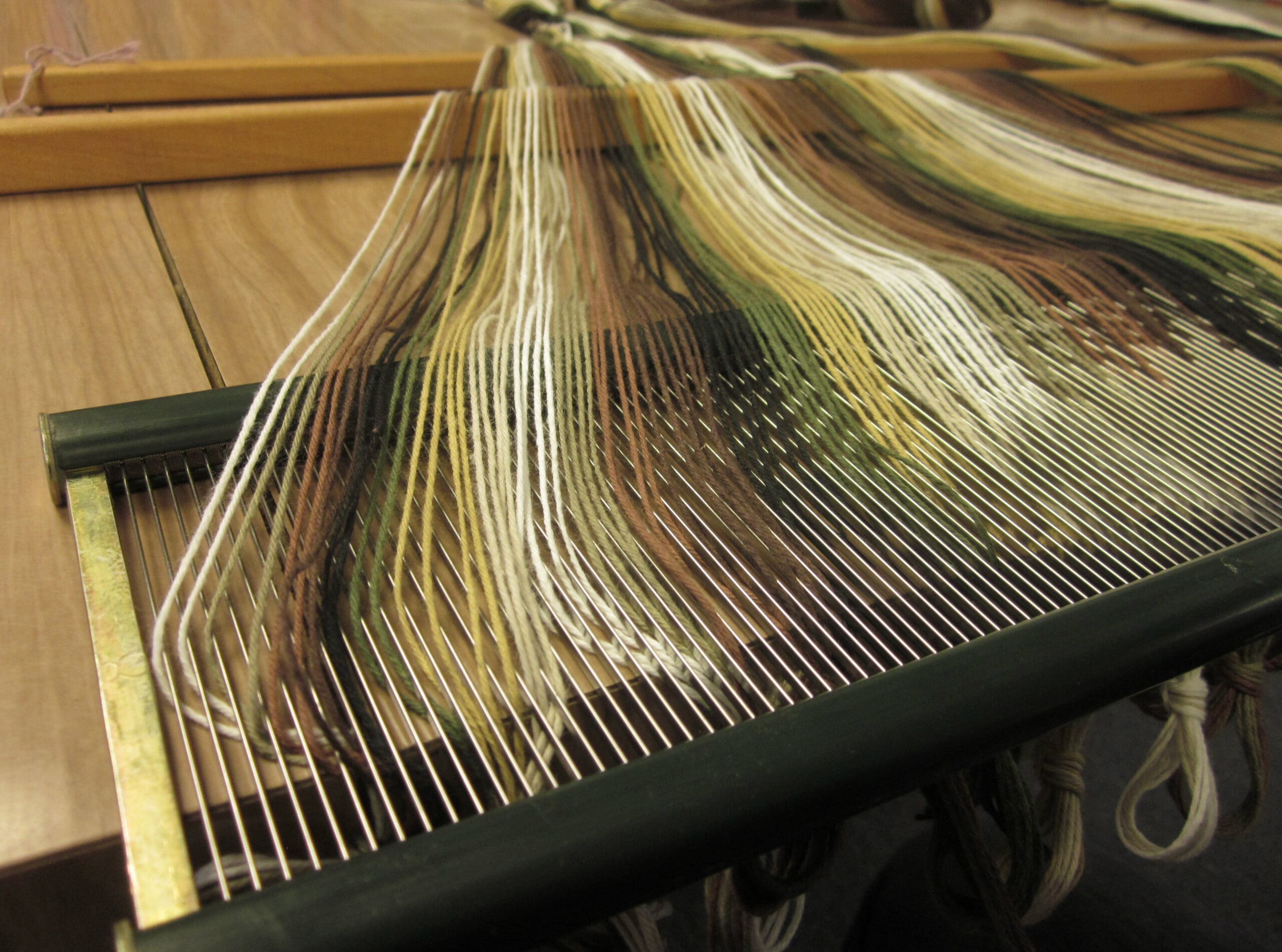 Today is sley-the-reed day!!!! Best day ever! I love this part of the process. I’m not sure exactly what makes it so appealing. All I can figure is that sitting at a table organizing hundreds of yarns just does it for me! I like to tell folks that to be a weaver, you have to be a little bit crazy… and I would guess my prior statement puts me firmly in that category! And I’m OK with that!