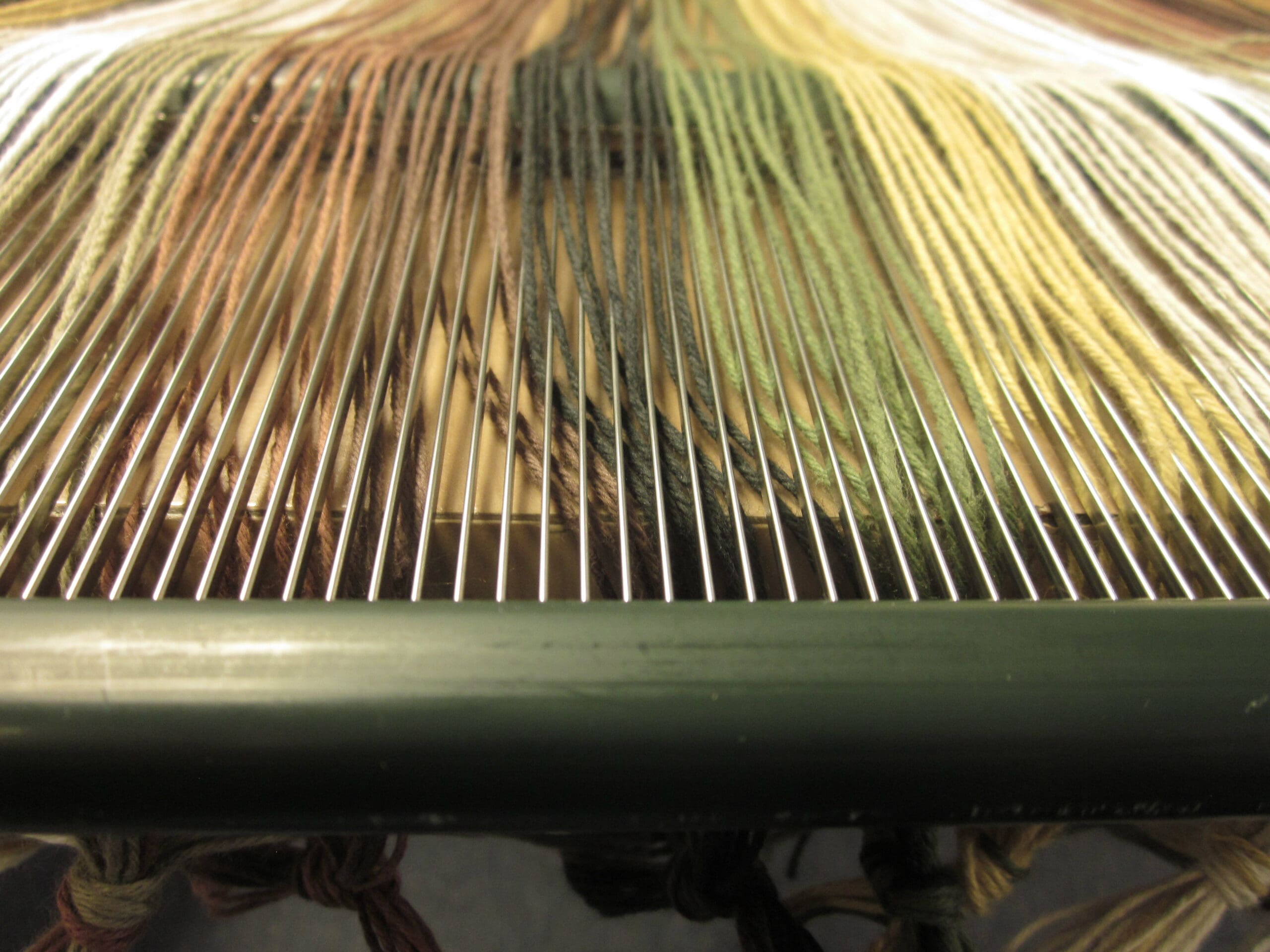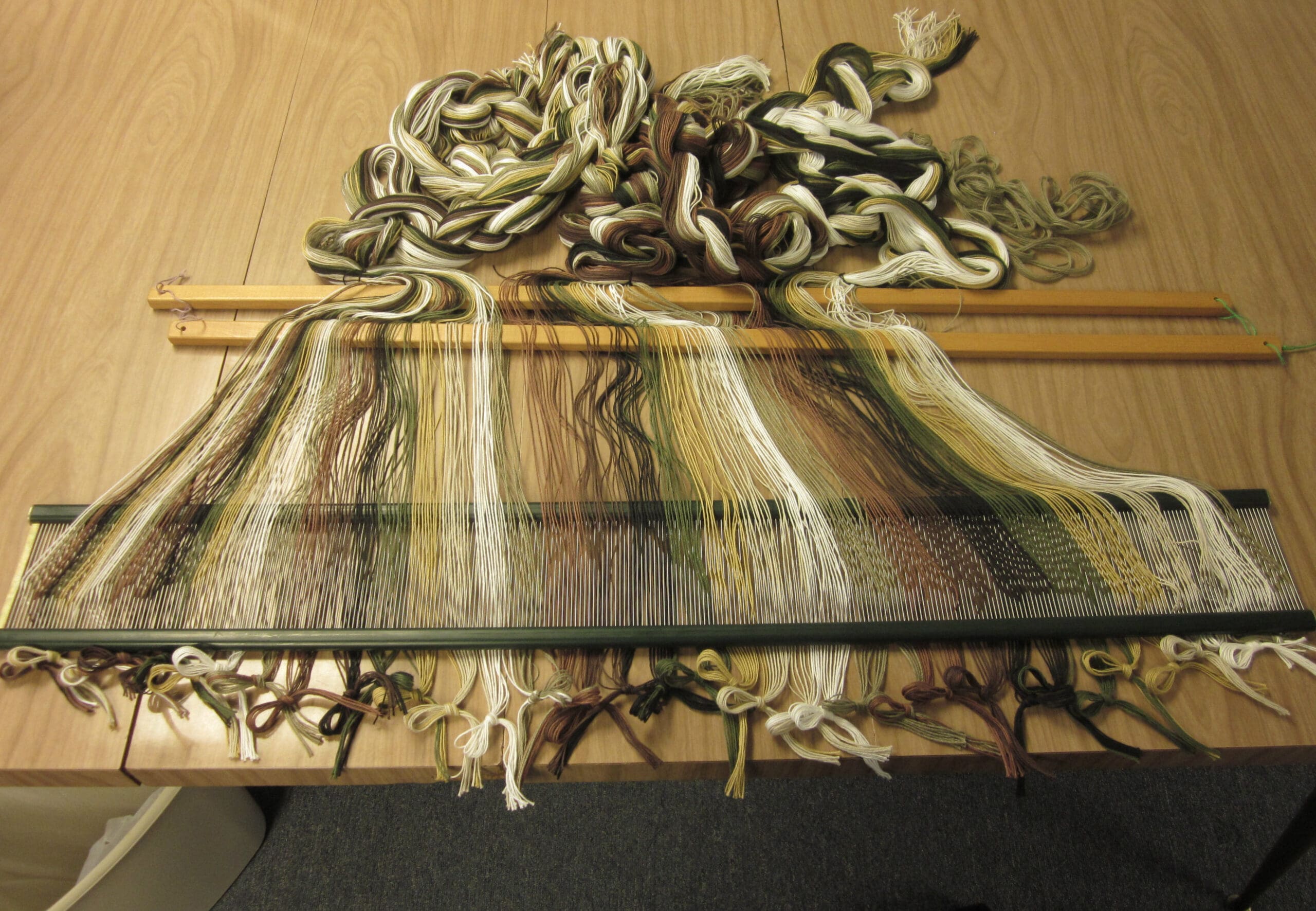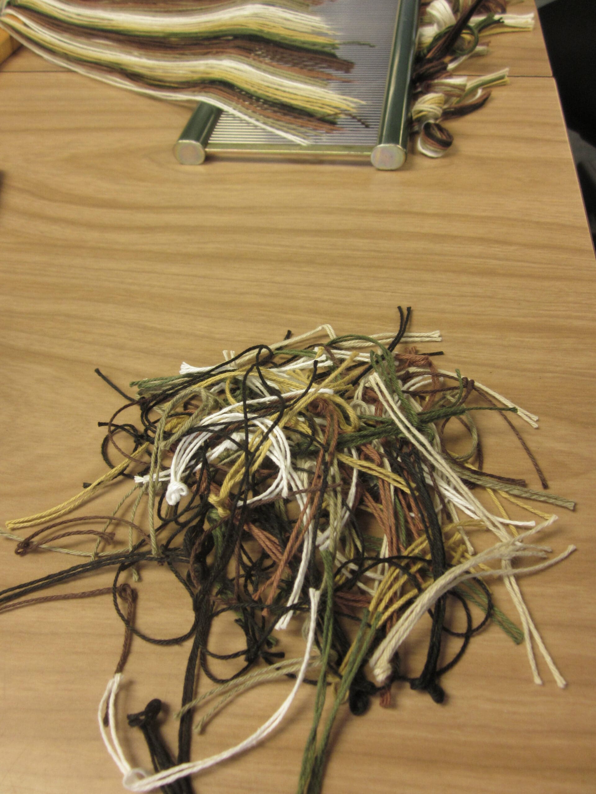 Because I had a lot of color changes at the warping board, I have a lot of little ends that typically pull right off before the yarn goes into the reed. (I thought this particular pile was very pretty! And sometimes, that’s all you need for a bit of happiness – a pretty pile!)