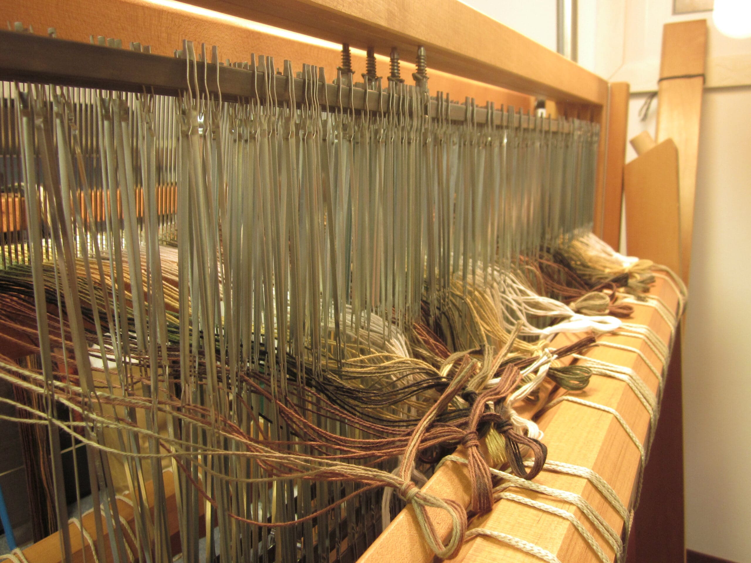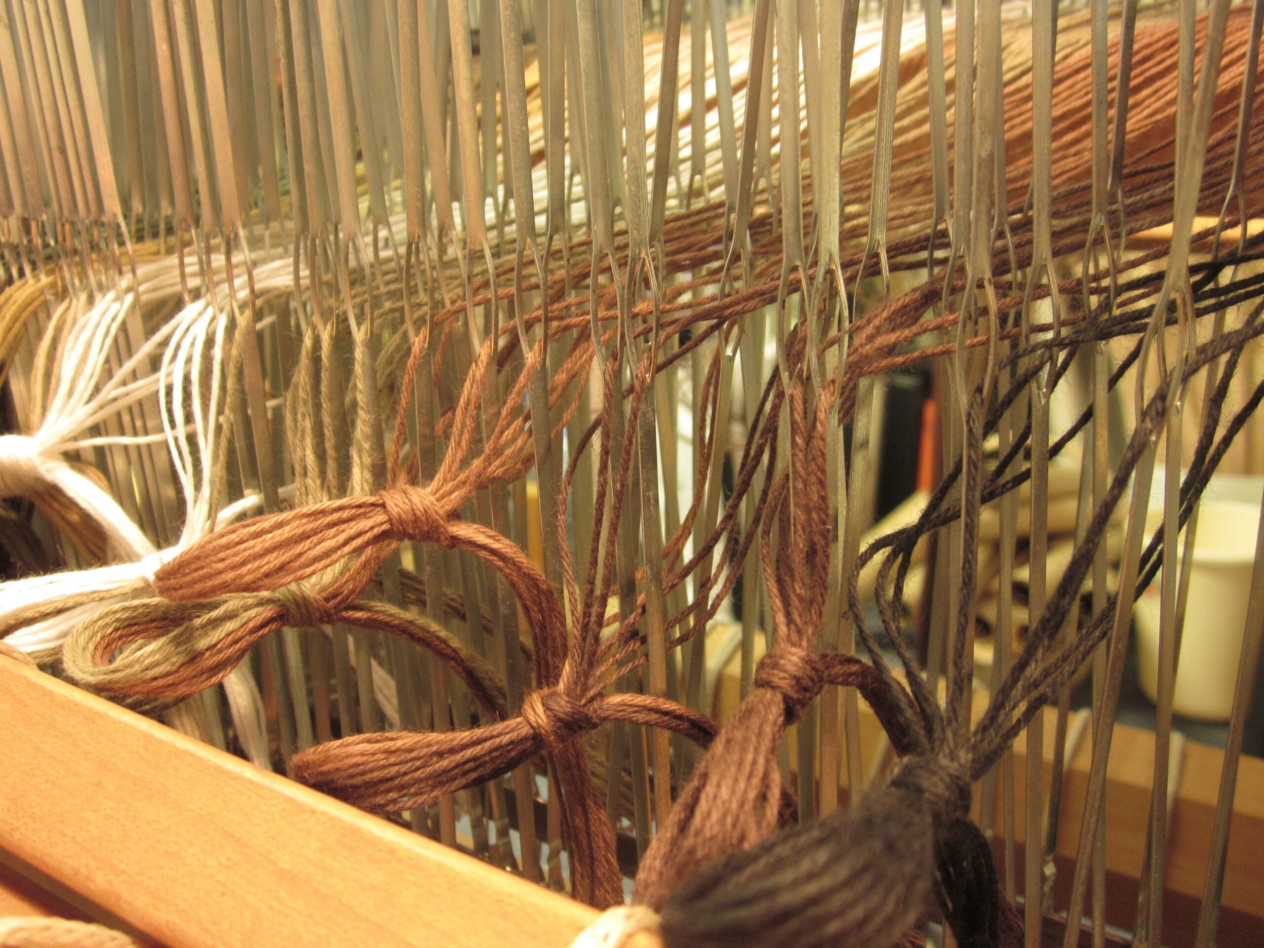 For a project this size, it’ll take me 2-3 hours to thread each yarn. If I haven’t mentioned this recently, weaving is not the sort of pastime for those that need instant gratification! It is so much fun! But in no shape or form would you ever call it quick! And so, in true weaver’s fashion, I’ll be back next week to finish up the heddles and start winding on! Talk to you soon…