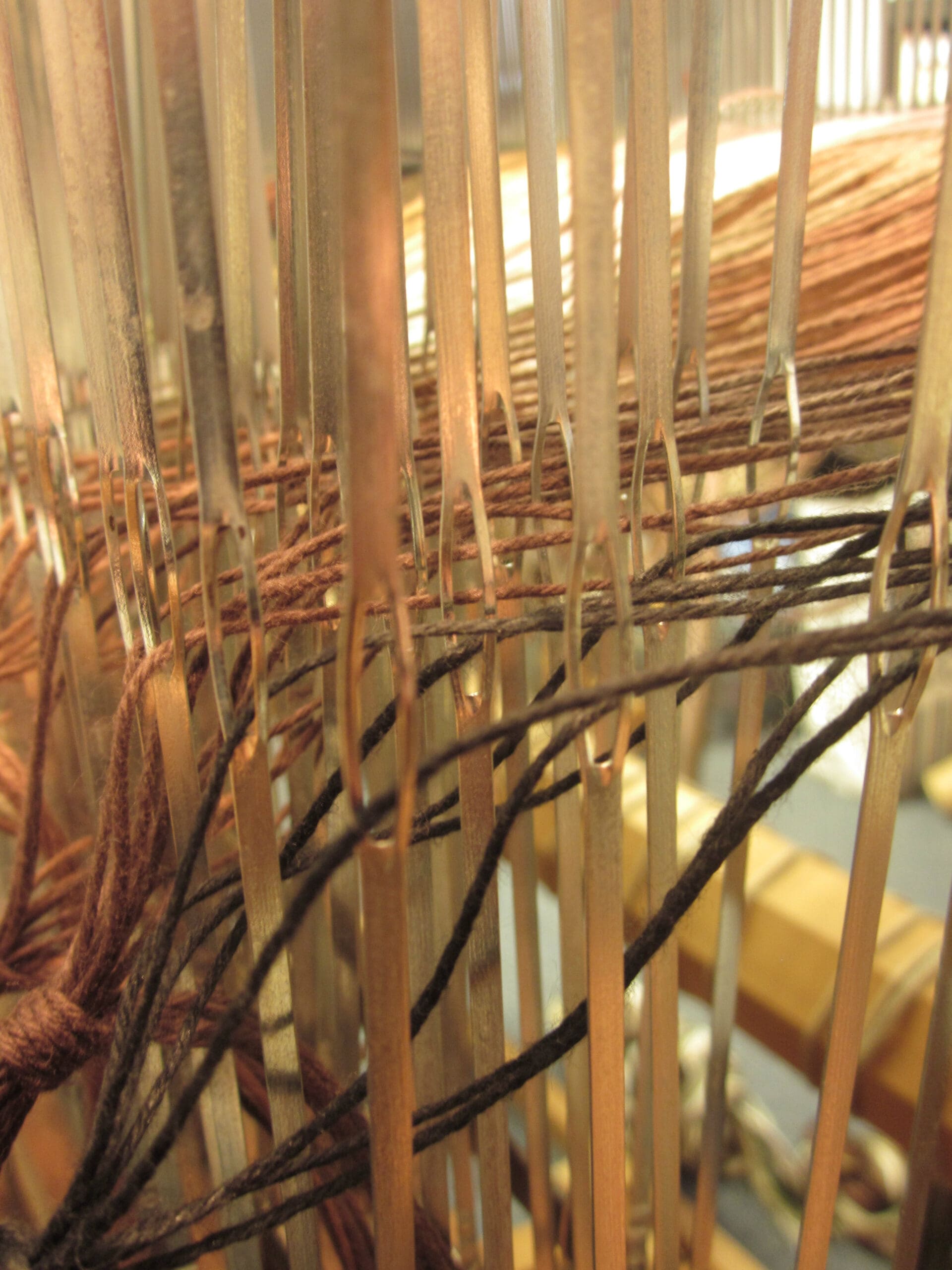 Last we chatted, I had sleyed the reed, which will keep the project at a relatively consistent width. Next up, the whole piece will move into the loom. And before I leave you today, I’ll start threading some heddles! What a line-up!